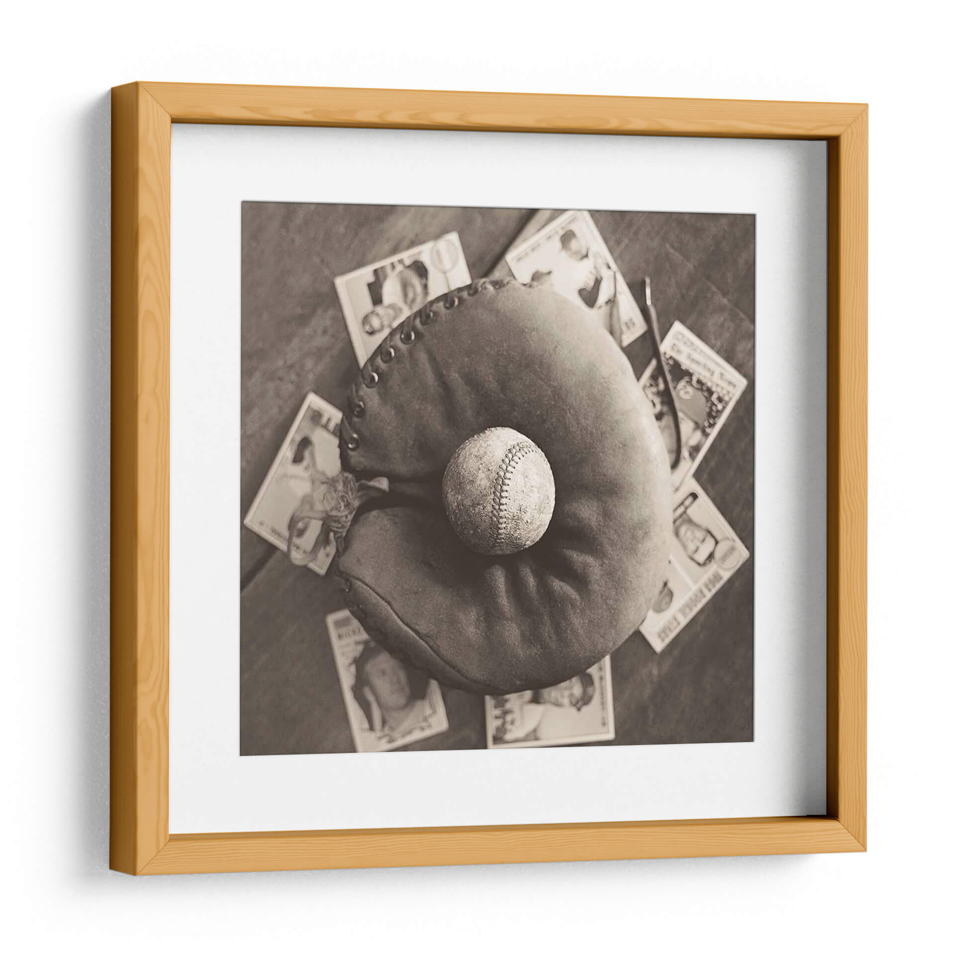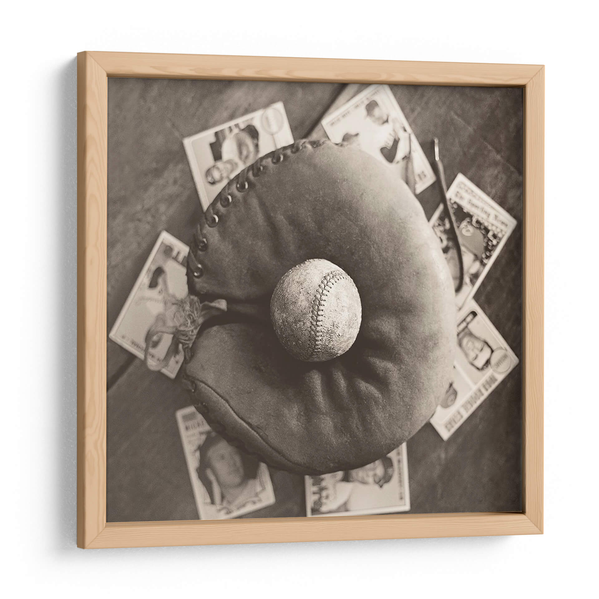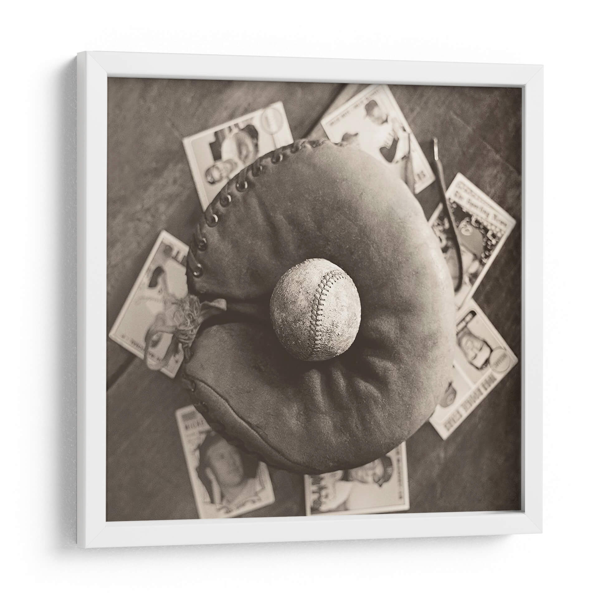 Sumérgete en la evocadora imagen de "Nostalgia De Béisbol Iii", una obra de arte que captura la esencia atemporal del pasatiempo nacional estadounidense. Esta pieza, en un cautivador tono sepia, presenta un guante de béisbol desgastado con una pelota descansando en su interior, rodeado de tarjetas de béisbol vintage. La fotografía, con su paleta monocromática, evoca un profundo sentido de nostalgia y reminiscencia, transportando al espectador a épocas pasadas. La composición, con un enfoque cercano en los elementos icónicos del béisbol, resalta la textura del cuero del guante y las costuras de la pelota, invitando a la contemplación. Ideal para los amantes del deporte, coleccionistas o cualquiera que aprecie una estética vintage, este cuadro decorativo es perfecto para añadir un toque de carácter y conversación a cualquier sala de estar, estudio u oficina. Su estilo fotográfico clásico y el tema universal del béisbol lo convierten en una adición versátil y conmovedora a tu decoración de pared, celebrando la historia y la pasión del juego.