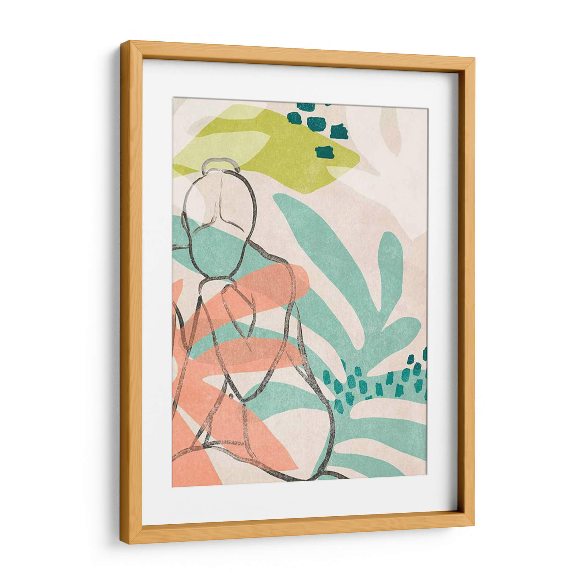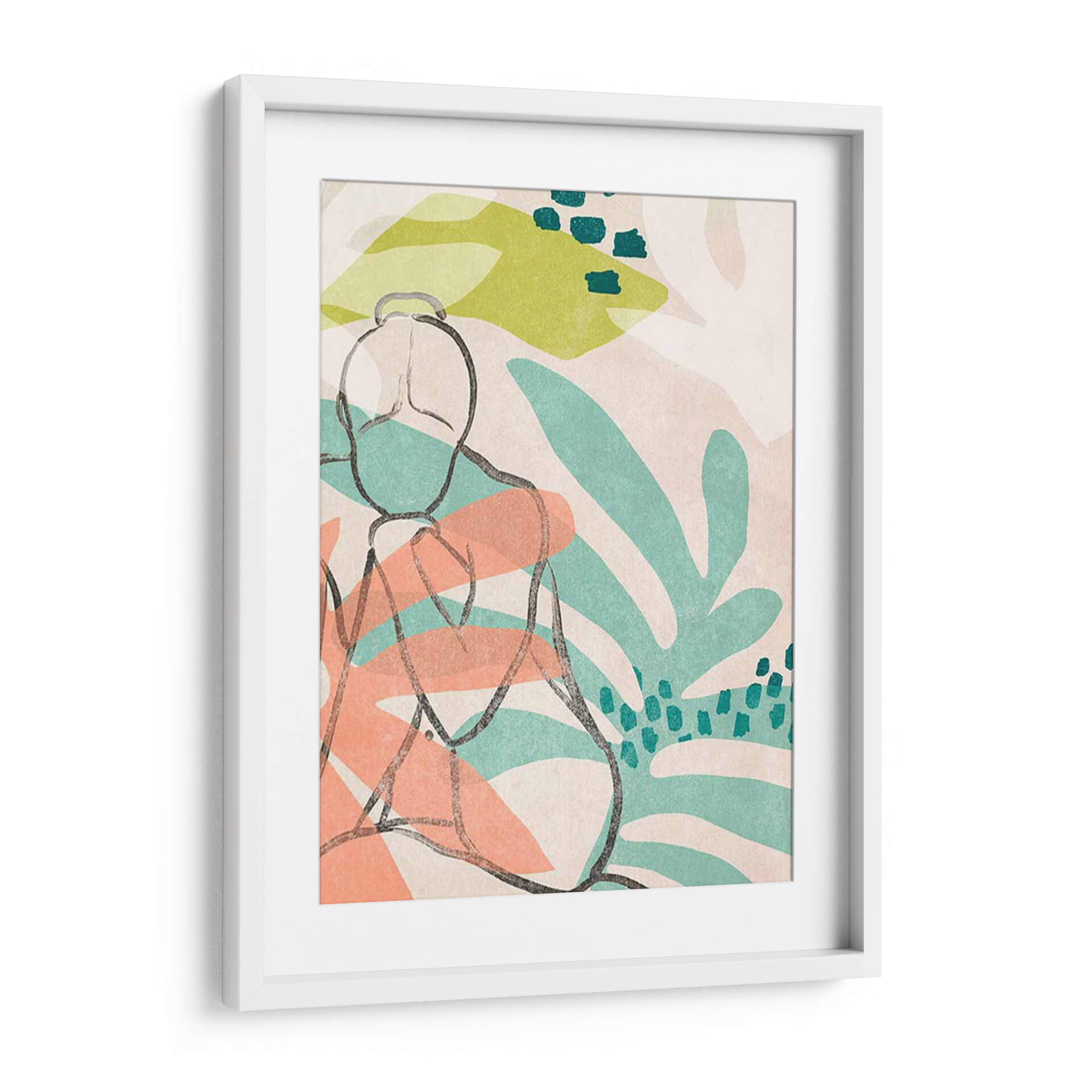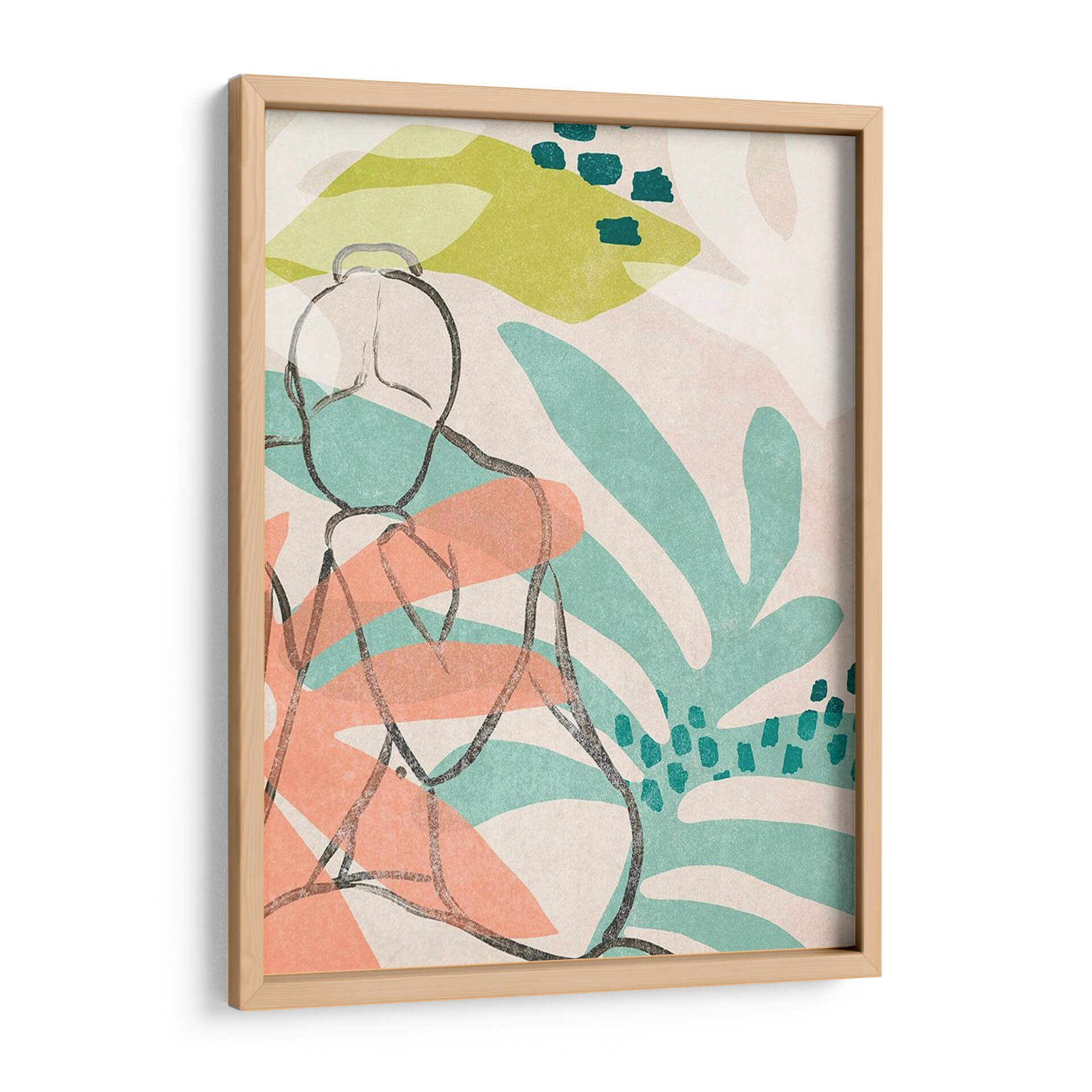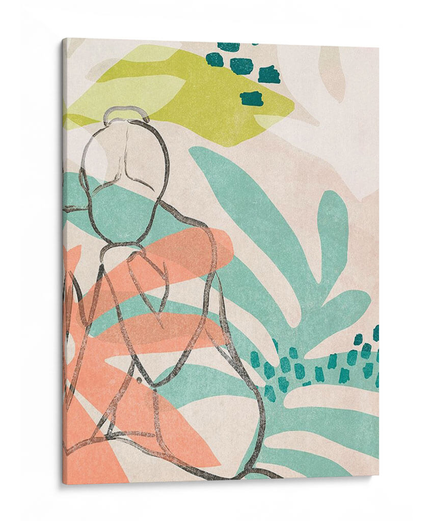 Sumérgete en la serenidad y la estética contemporánea con "Nude Tropical III", una obra de arte cautivadora de June Erica Vess. Este cuadro decorativo presenta una figura femenina estilizada, delineada con trazos orgánicos y seguros, que evoca una sensación de introspección y calma. El fondo se despliega en un vibrante tapiz de formas abstractas y elementos botánicos, inspirados en la exuberancia tropical, con hojas de color verde menta y toques cálidos de coral que contrastan suavemente sobre un lienzo de tonos neutros y texturizados. La paleta de colores, cuidadosamente seleccionada, crea una atmósfera relajante y a la vez enérgica, perfecta para infundir vida y estilo en cualquier espacio. La composición minimalista y la técnica de línea audaz se combinan para ofrecer una pieza moderna que dialoga con el espectador, invitándole a la contemplación. Ideal para salones, dormitorios o estudios que buscan un toque de sofisticación artística y una conexión con la naturaleza. "Nude Tropical III" no es solo una decoración, es una invitación a la pausa y al disfrute del arte en tu día a día, aportando un aire fresco y contemporáneo a tu hogar u oficina.