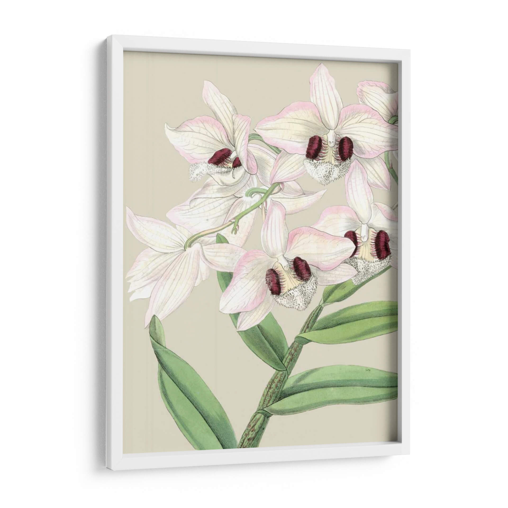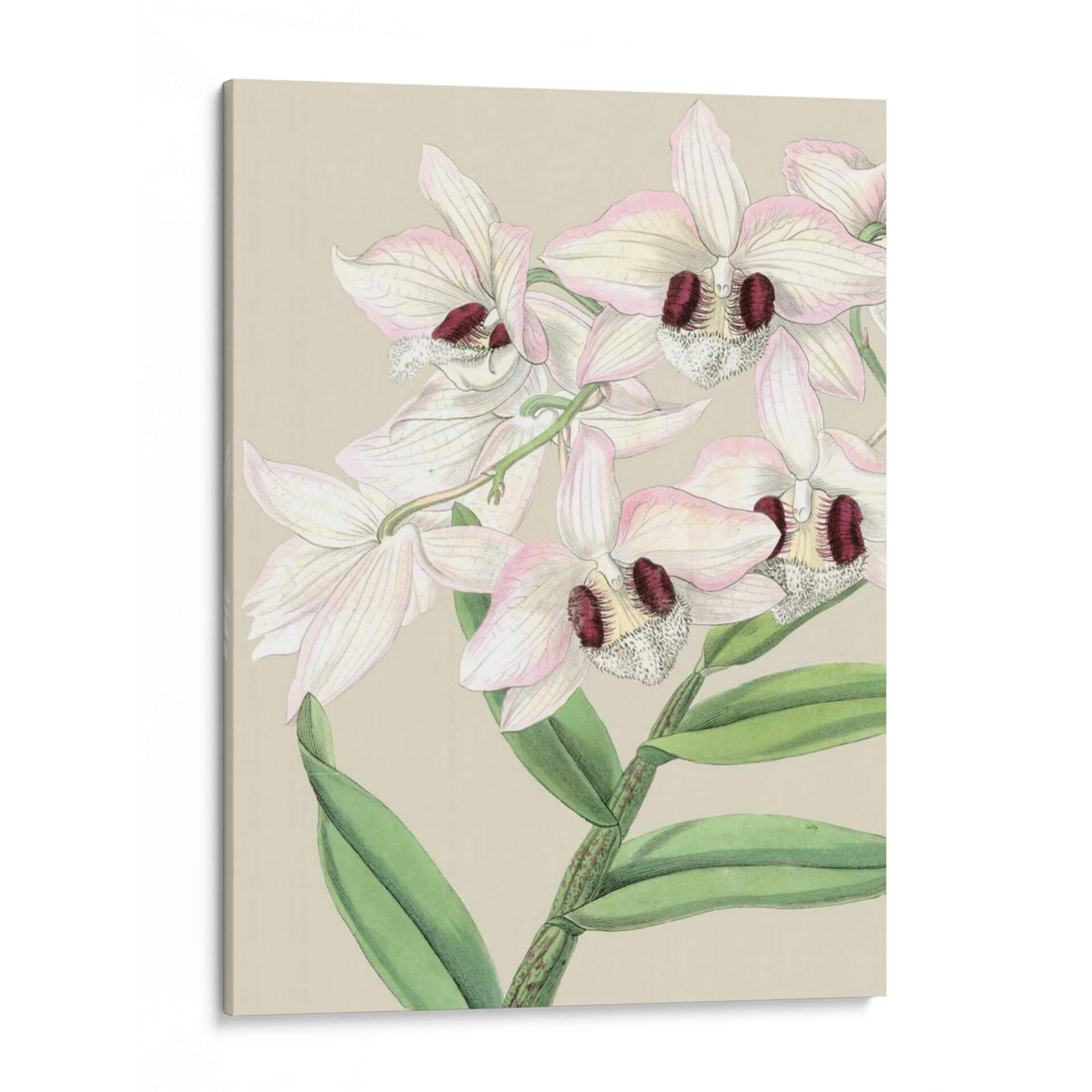 Sumérgete en la delicadeza botánica con "Orchid Blooms II" de Vision Studio. Esta exquisita obra de arte captura la etérea belleza de las orquídeas en plena floración, presentando pétalos blancos con sutiles toques rosados y centros de un profundo burdeos. La composición se despliega con gracia sobre un fondo de tono neutro y cálido, permitiendo que la elegancia intrínseca de las flores sea la protagonista indiscutible. Las hojas verdes vibrantes añaden un contraste natural y terrenal, anclando la pieza con una sensación de vitalidad. El estilo detallado, reminiscentes de las ilustraciones botánicas clásicas, aporta un aire de sofisticación atemporal. Este cuadro decorativo es una invitación a la serenidad y la apreciación de la naturaleza en su máxima expresión. "Orchid Blooms II" es ideal para añadir un toque de calma y refinamiento a cualquier espacio, ya sea un dormitorio acogedor, un estudio tranquilo o una sala de estar que busque un acento de belleza natural y elegante. Permite que la serenidad de estas orquídeas transforme tu hogar en un santuario de paz y estilo.