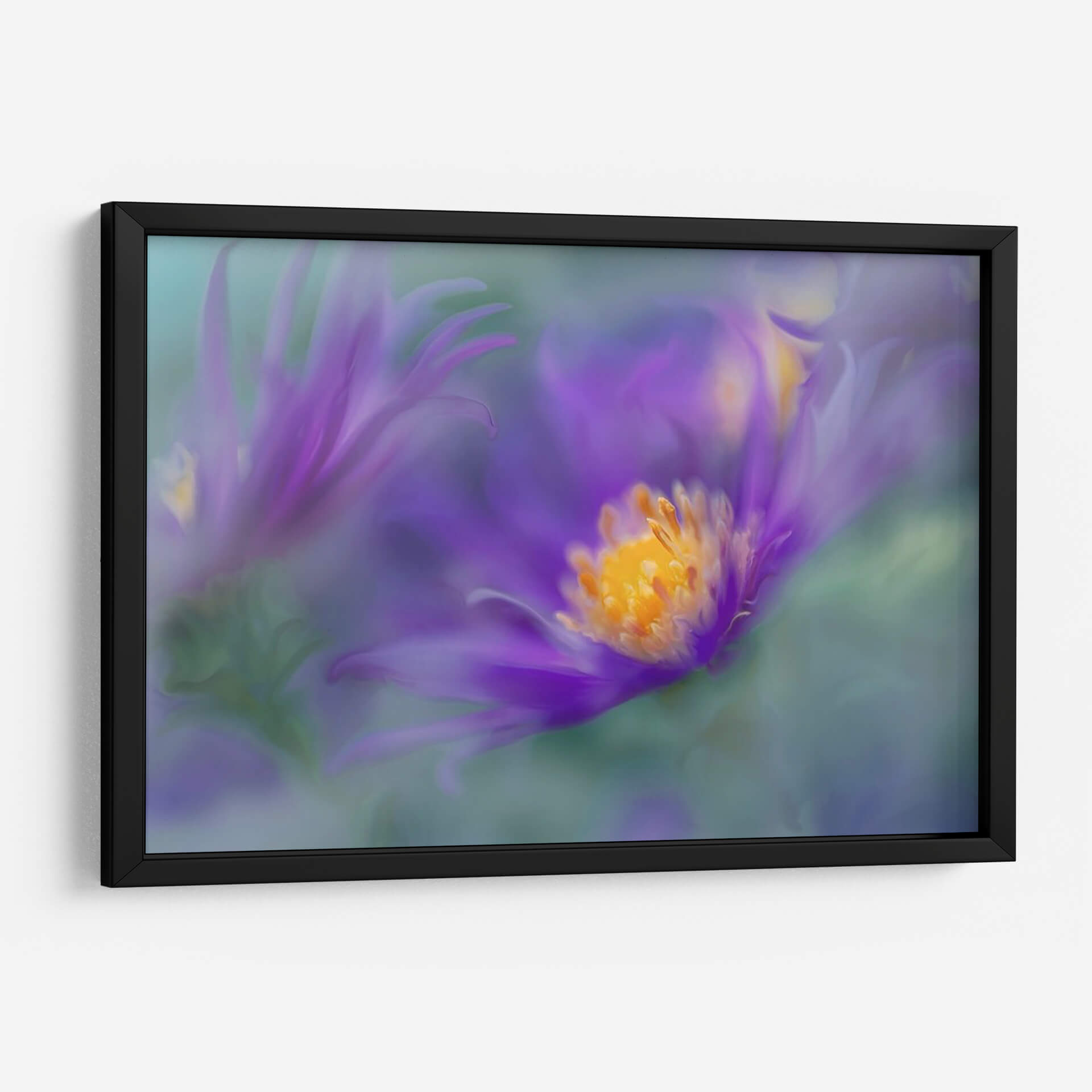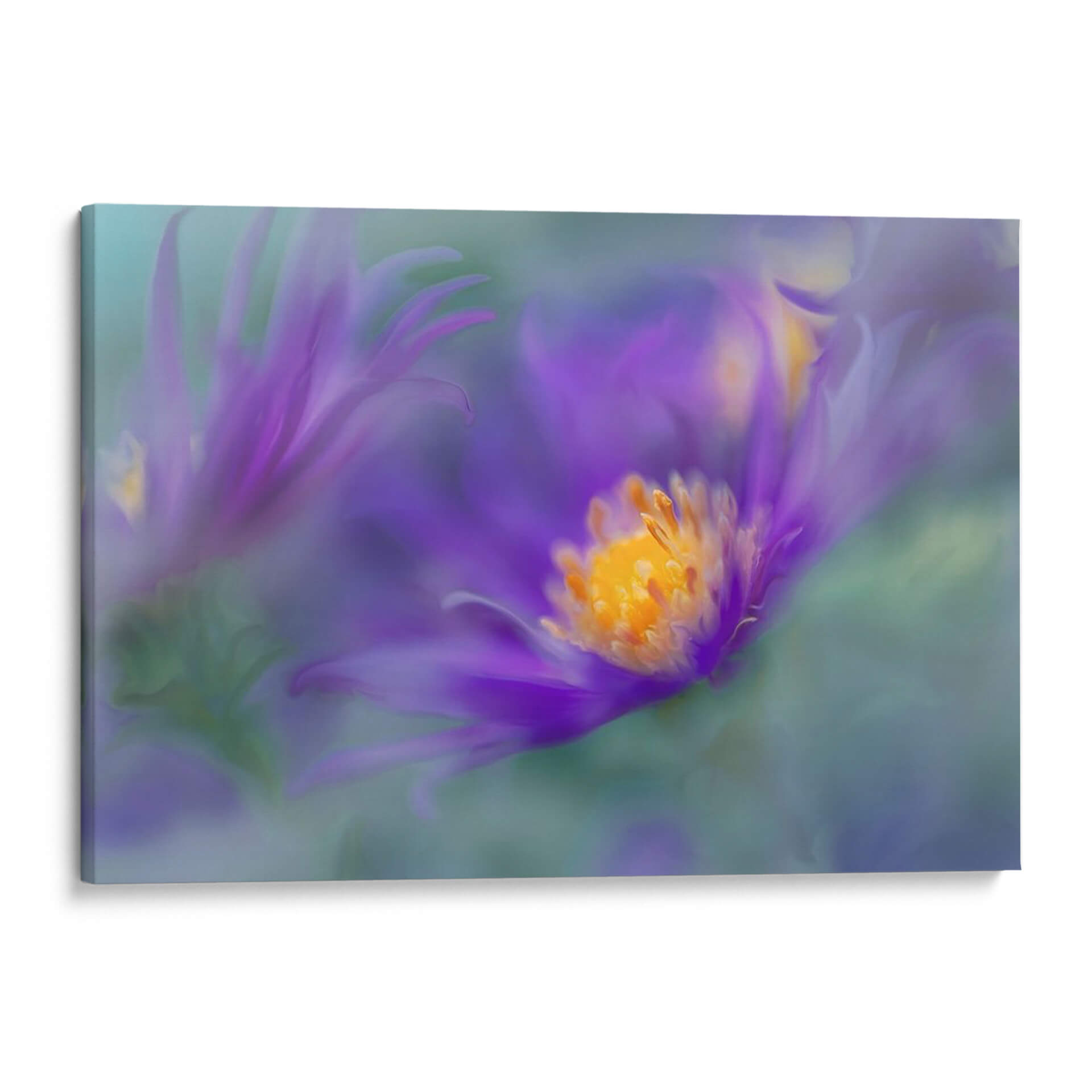 Sumérgete en la serenidad de "Oro Y Púrpura En La Niebla Ii", una obra de arte evocadora que captura la delicadeza de la naturaleza con un toque etéreo. La pieza presenta un primer plano abstracto de flores en tonos vibrantes de púrpura y toques dorados, difuminados suavemente en un fondo que evoca una atmósfera brumosa y soñadora. La pincelada suave y la paleta de colores cuidadosamente seleccionada, que combina profundos púrpuras con cálidos dorados y un fondo suavemente verdoso o azulado, crean una sensación de paz y tranquilidad. Este cuadro decorativo es ideal para quienes buscan infundir calma y sofisticación en sus espacios, ya sea en un dormitorio, un salón de estar o una oficina. Su estilo abstracto y la composición centrada en la flor principal invitan a la contemplación, añadiendo un punto focal elegante y lleno de misterio. "Oro Y Púrpura En La Niebla Ii" es más que una simple decoración; es una invitación a la introspección y a la apreciación de la belleza sutil del mundo natural, transformando cualquier ambiente en un oasis de calma y estilo contemporáneo. Perfecta para añadir un toque de color y elegancia a la decoración de interiores.