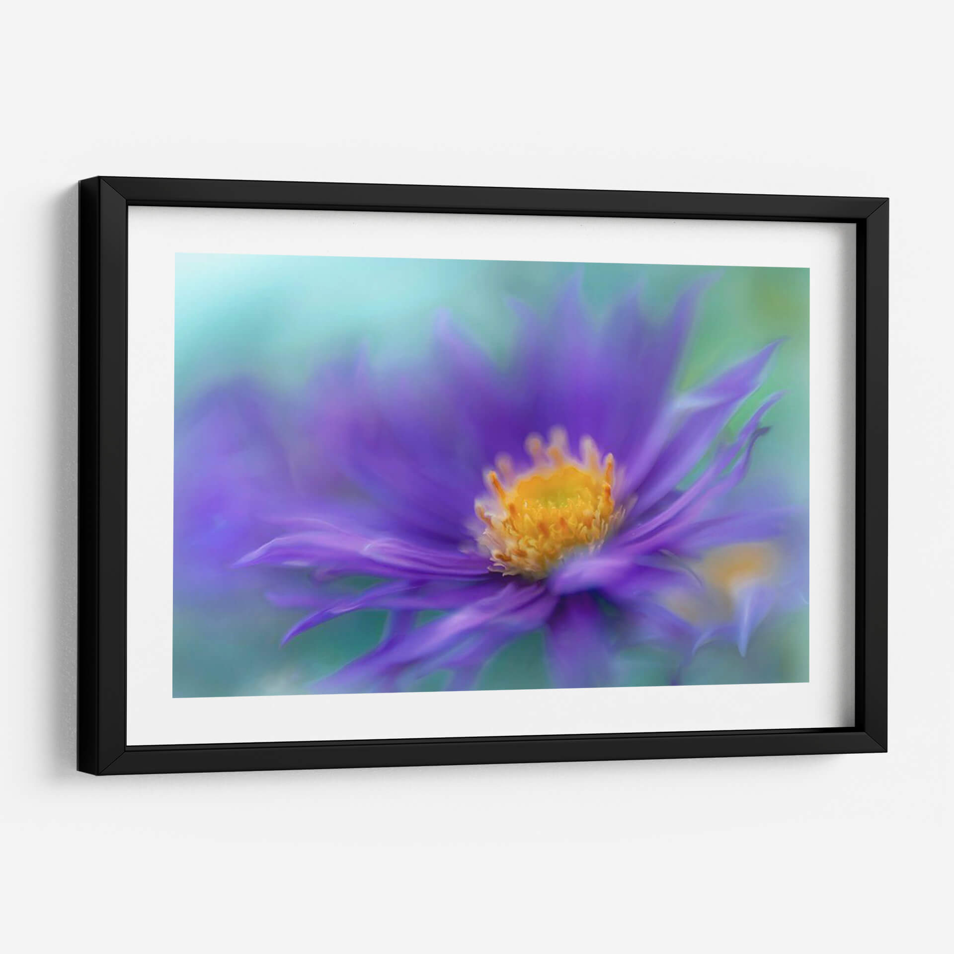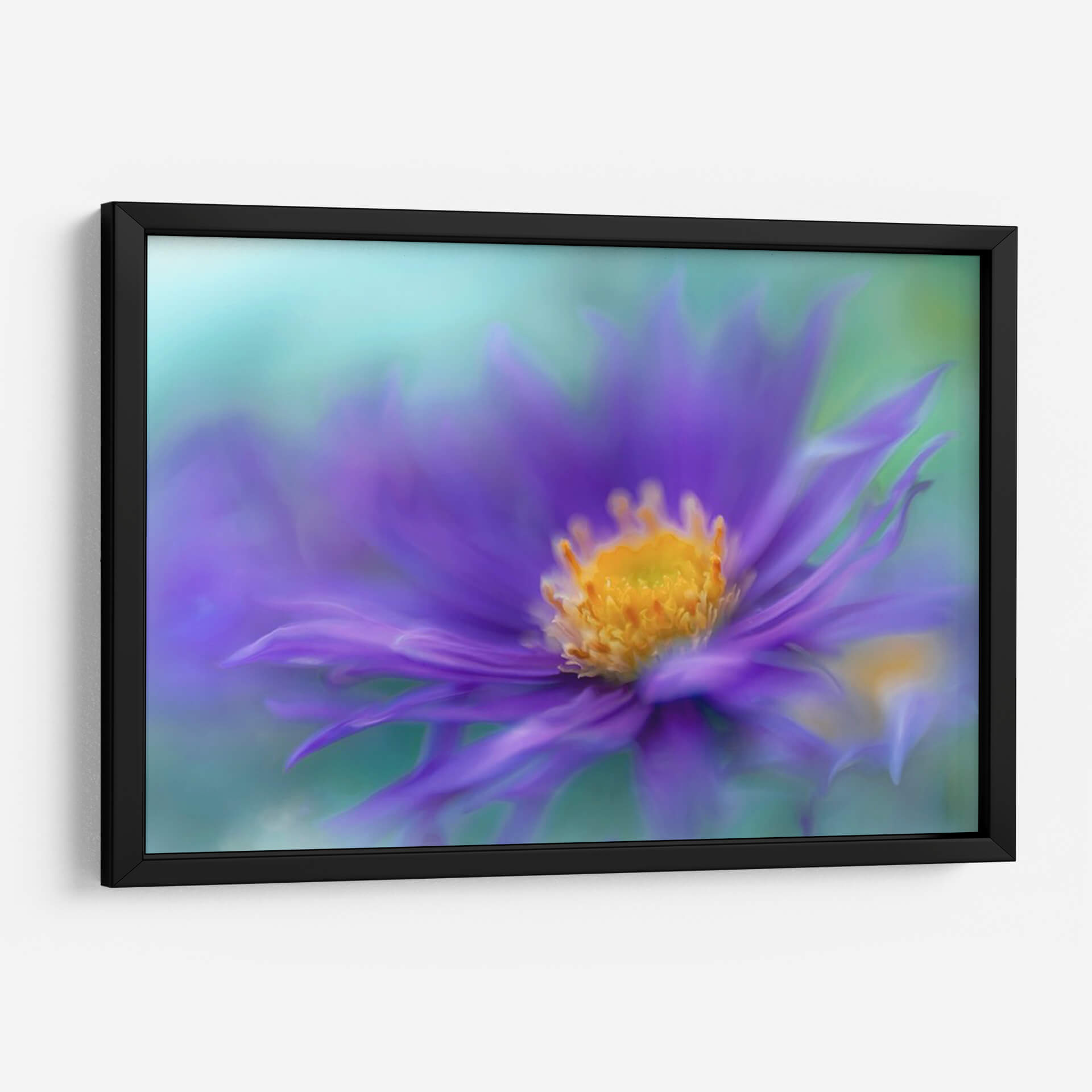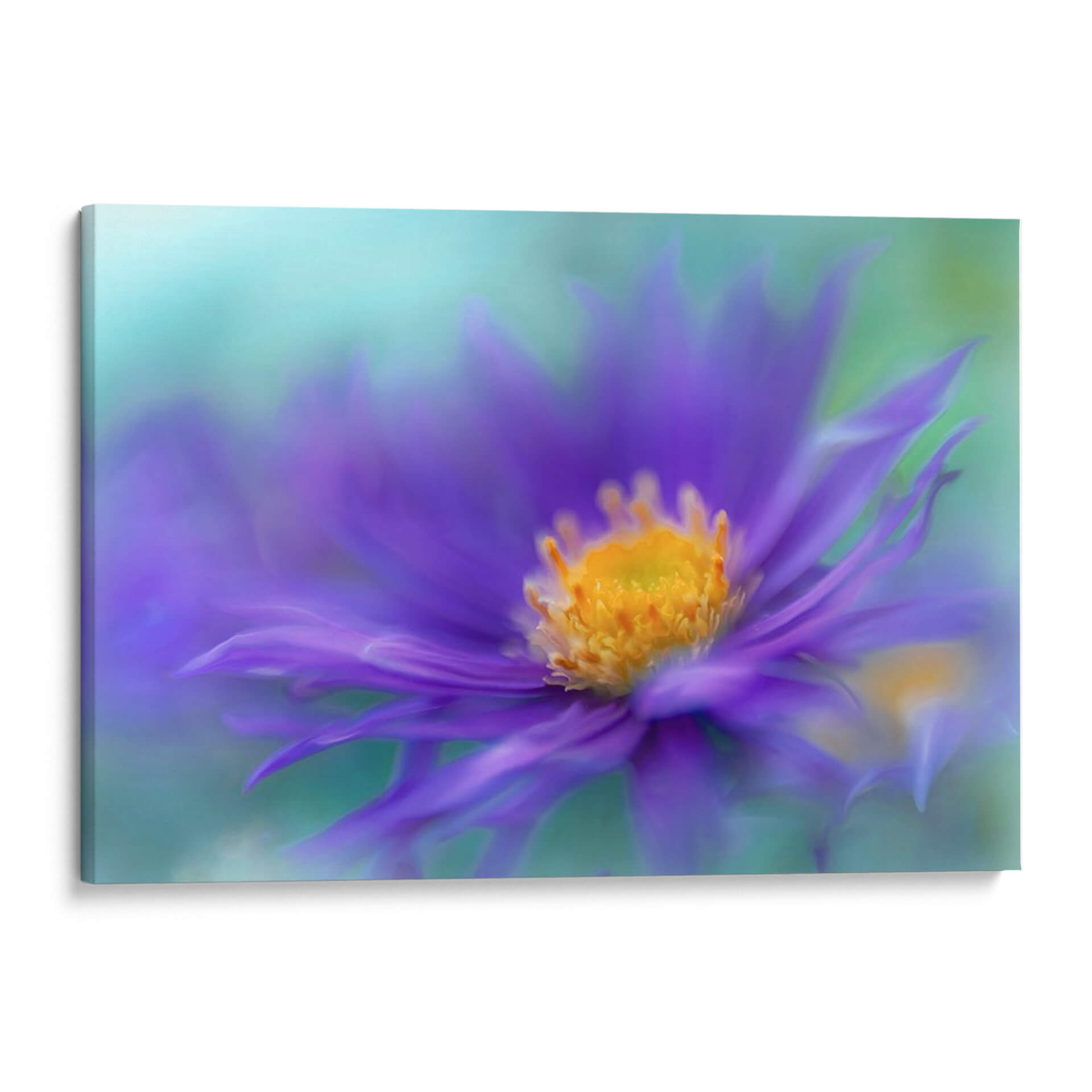 Sumérgete en la serena belleza de "Oro Y Púrpura En La Niebla V", una obra de arte cautivadora de Gillian Hunt. Este cuadro decorativo captura la esencia etérea de una flor púrpura vibrante, con sus delicados pétalos extendiéndose como volutas de humo suave en un fondo etéreo de tonos turquesa y verde agua. El centro de la flor irradia un cálido resplandor dorado, creando un contraste hipnotizante que atrae la mirada. La técnica de Gillian Hunt, con su enfoque suave y difuminado, evoca una sensación de misterio y tranquilidad, como si la escena estuviera envuelta en una neblina dorada y púrpura. Esta pieza abstracta es perfecta para añadir un toque de color sofisticado y una atmósfera de calma a cualquier espacio. Imagina este cuadro decorativo transformando tu sala de estar en un oasis de paz o aportando una vibrante elegancia a tu dormitorio. Su composición centrada y la rica paleta de colores lo convierten en un punto focal ideal para ambientes modernos o contemporáneos, invitando a la contemplación y la admiración. Añade una pincelada de naturaleza abstracta y serenidad a tu hogar con esta impresionante obra.