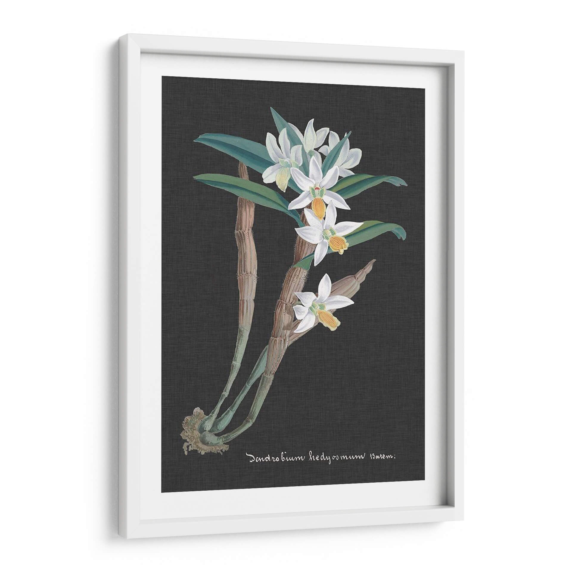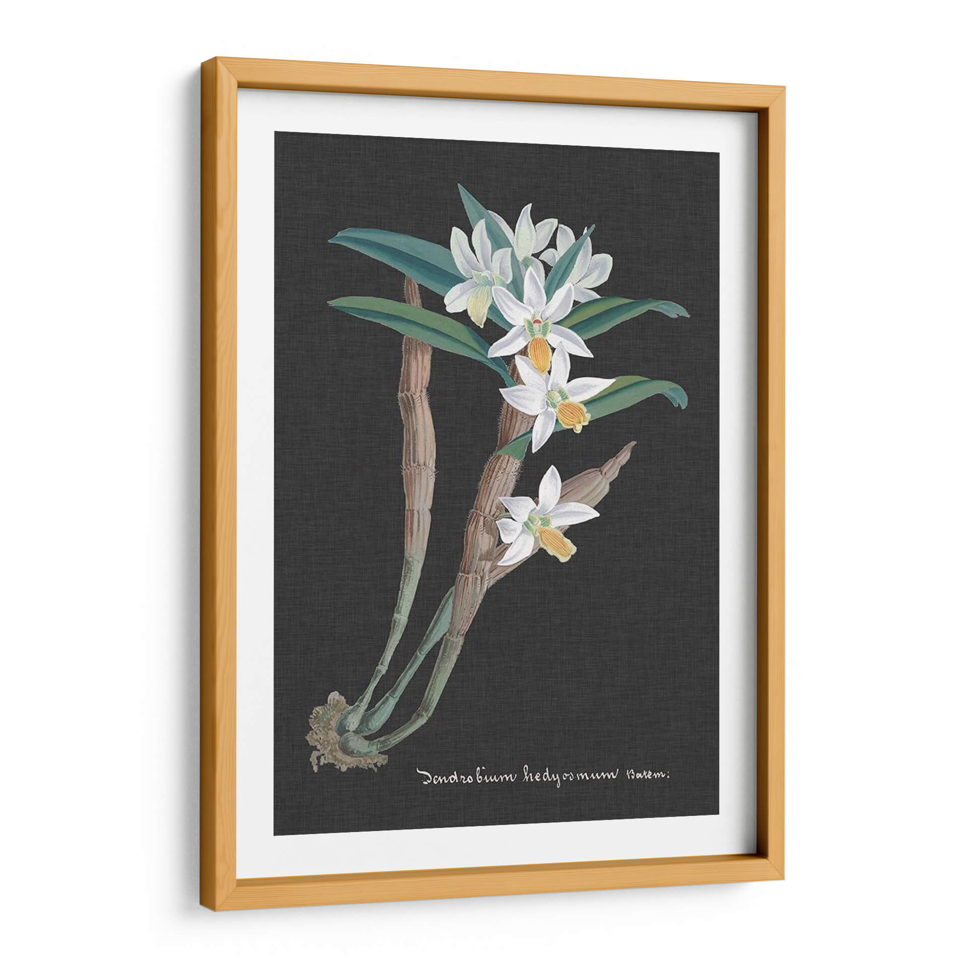 Sumérgete en la delicadeza botánica con este cautivador cuadro decorativo de orquídeas. La obra "Orquídea En La Pizarra I" de Vision Studio presenta una representación exquisita de orquídeas blancas y amarillas, detalladamente ilustradas sobre un fondo oscuro que evoca la elegancia de una pizarra. Los tallos verdes y robustos se entrelazan con las delicadas flores, creando una composición armoniosa que atrae la mirada. La paleta de colores, dominada por blancos puros, amarillos sutiles y verdes profundos contrastando con el carbón del fondo, aporta una sensación de calma y sofisticación. Este estilo, que recuerda a las ilustraciones botánicas clásicas con un toque contemporáneo, es perfecto para añadir un punto focal natural y sereno a cualquier espacio. Ideal para salones, dormitorios o estudios que busquen un toque de elegancia orgánica y un recordatorio de la belleza intrínseca de la naturaleza. Este cuadro decorativo es una pieza que invita a la contemplación y aporta un aire de tranquilidad refinada a tu hogar u oficina, fusionando arte y botánica con maestría.