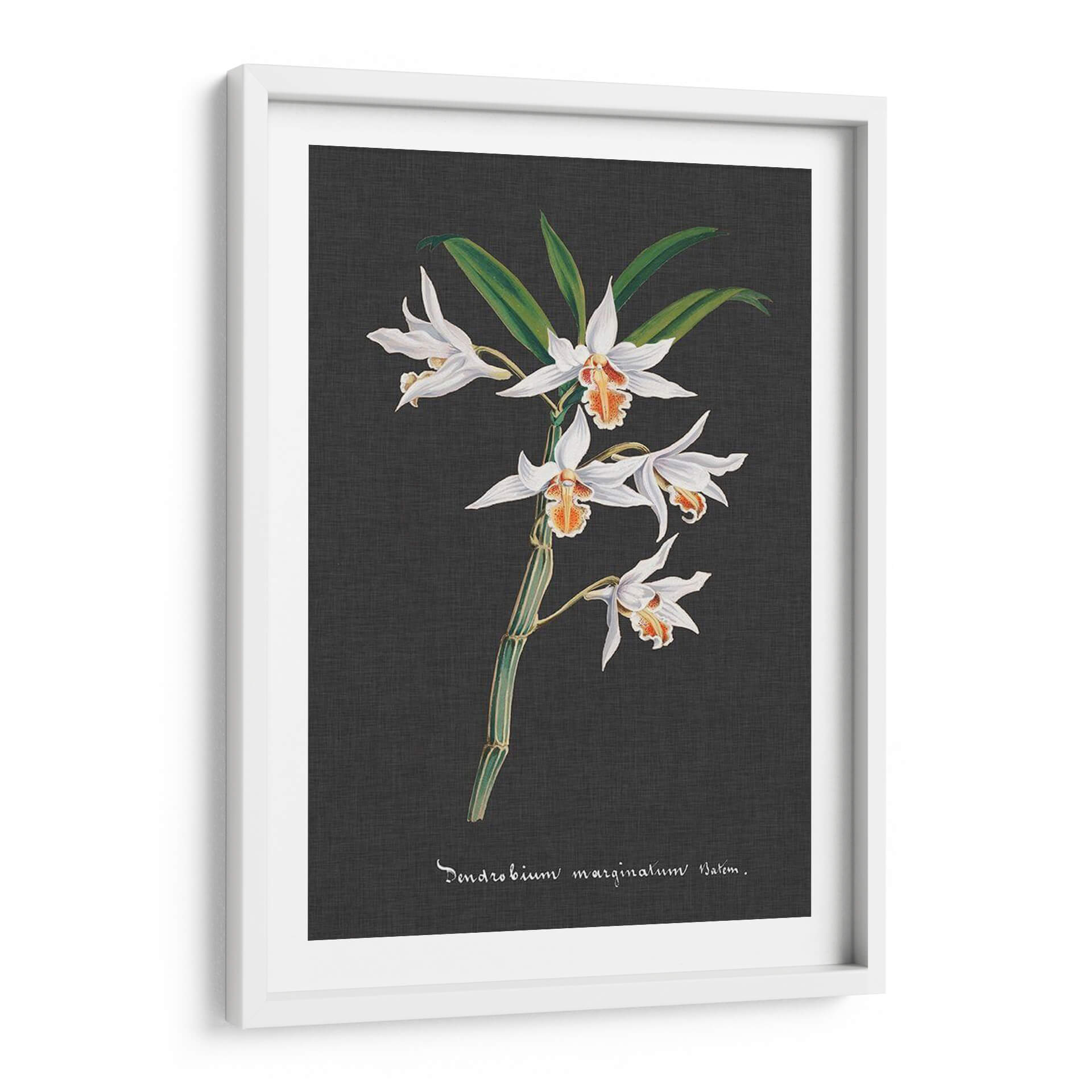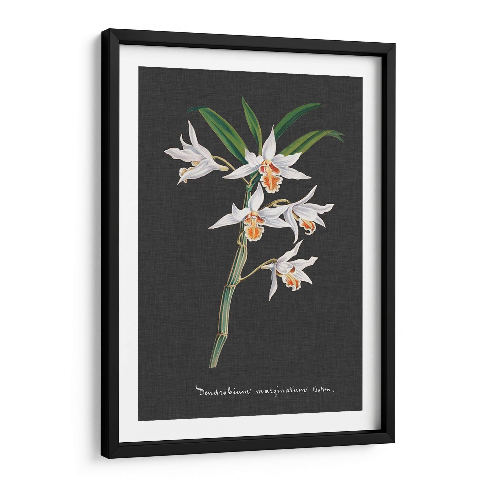 Embárcate en un viaje botánico con "Orquídea en la Pizarra IV", una exquisita obra de arte que captura la delicada belleza de la naturaleza. Este cuadro decorativo presenta un detallado estudio de una orquídea blanca con vibrantes toques de naranja y amarillo en su centro, anidada sobre un fondo oscuro y texturizado. La intrincada ilustración, reminiscentes de las láminas botánicas clásicas, resalta la elegancia y la fragilidad de la flor, mientras que su tallo verde y frondosas hojas añaden profundidad y contraste. La composición centralizada atrae la mirada, invitando a la contemplación de cada pétalo y estambre. Ideal para añadir un toque de sofisticación y serenidad a cualquier espacio, desde salones modernos hasta estudios o dormitorios. Transforma tu hogar u oficina en una galería personal con esta pieza que evoca la calma y la apreciación por el mundo natural. La sutileza de sus colores y la precisión de su trazo la convierten en una adición versátil y atemporal a tu decoración.
