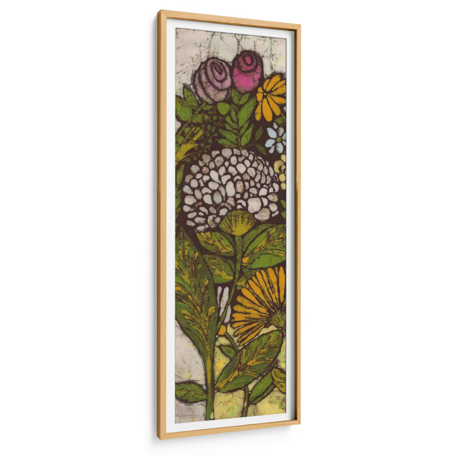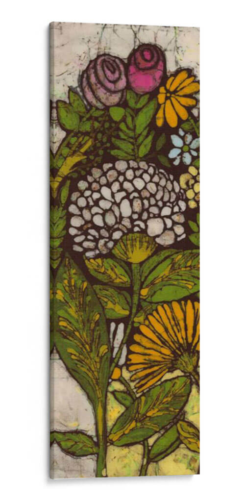Transforma tu espacio con el cautivador cuadro decorativo 'Panel De Flores Batik I' de Andrea Davis. Esta obra de arte contemporáneo, inspirada en la técnica batik, presenta un vibrante despliegue de flores en tonos verdes, amarillos y toques de rosa y púrpura. La composición vertical y exuberante evoca la belleza de un jardín en plena floración, con texturas ricas y un juego de luces que aporta profundidad y dinamismo. Ideal para añadir un toque de naturaleza y color a salones modernos, dormitorios acogedores u oficinas que buscan un ambiente inspirador. Su estilo distintivo y la paleta de colores terrosos y vivos la convierten en una pieza única, perfecta para quienes aprecian el arte con alma y carácter. Imagina la serenidad y la vitalidad que este cuadro aportará a tu hogar, creando un punto focal que atraerá todas las miradas y conversaciones. Es más que una decoración; es una ventana a la creatividad de Andrea Davis, diseñada para resonar con tu estilo y embellecer tu día a día. Añade esta obra maestra floral a tu colección y siente la frescura y el arte en cada rincón.