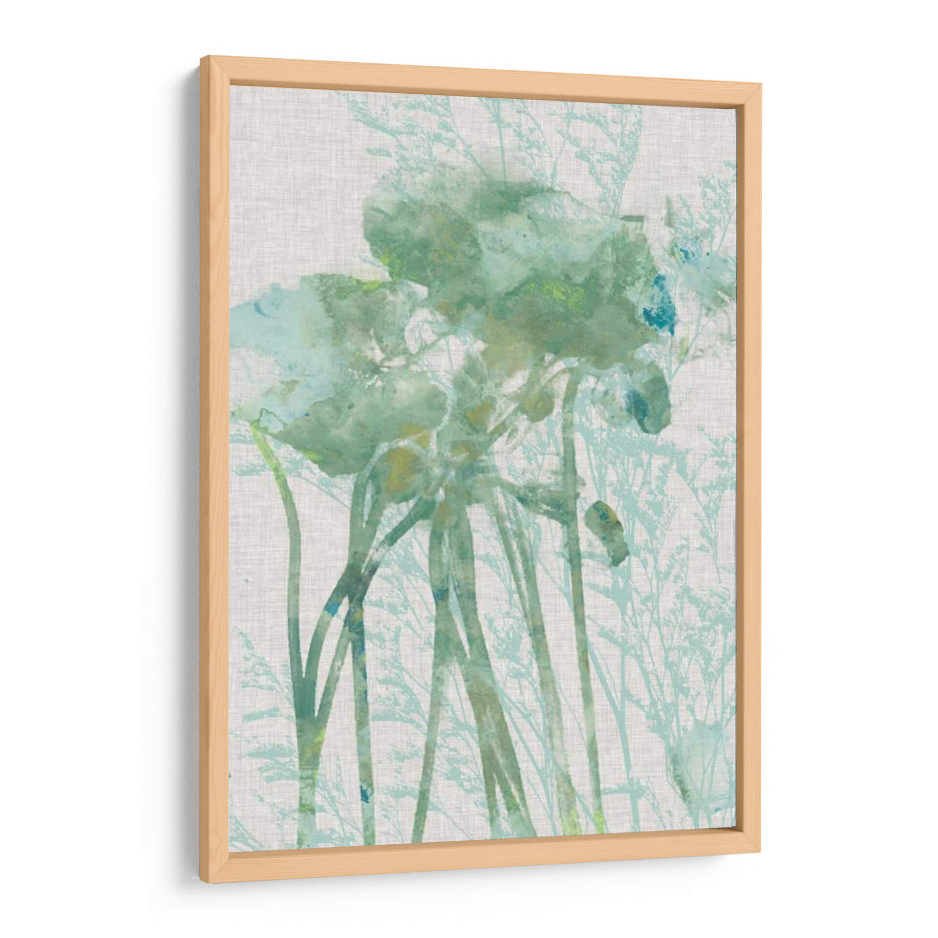 Sumérgete en la serenidad de "Panel De Flores De Acuarela I", una obra de arte contemporáneo que captura la delicadeza de la naturaleza con un toque etéreo. Este cuadro decorativo presenta una composición floral abstracta, donde las formas suaves y translúcidas de las flores se entrelazan con sutiles elementos botánicos. La paleta de colores, dominada por tonos verde agua, menta y toques sutiles de azul y amarillo pálido, evoca una atmósfera de calma y frescura, ideal para transformar cualquier espacio en un oasis de tranquilidad. El estilo artístico, que recuerda a la técnica de acuarela, aporta una sensación de ligereza y fluidez, haciendo que cada pétalo y hoja parezca danzar suavemente. Perfecto para salas de estar, dormitorios o espacios de meditación, este cuadro decorativo añade un toque de sofisticación natural y serenidad. Su diseño versátil lo convierte en una pieza central que complementa tanto decoraciones modernas como rústicas, invitando a la contemplación y al disfrute de la belleza efímera de las flores. Una elección excepcional para quienes buscan infundir paz y elegancia en su hogar u oficina.