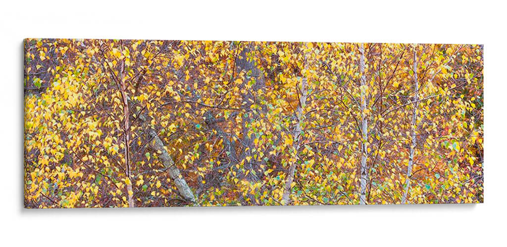 Sumérgete en la calidez y la vitalidad del otoño con "Panorama De Árbol III" de James McLoughlin. Esta cautivadora obra de arte para pared captura la esencia de la temporada con un vibrante tapiz de hojas doradas y ocres, salpicadas por tonos de verde y marrón que evocan la rica textura de un bosque otoñal. Los troncos de los abedules, con sus características cortezas claras, emergen con elegancia entre la densa hojarasca, creando un juego de luces y sombras que añade profundidad y dinamismo a la composición. El estilo fotográfico y la perspectiva panorámica transportan al espectador al corazón de la naturaleza, invitándolo a sentir la brisa fresca y el crujir de las hojas bajo sus pies. "Panorama De Árbol III" es más que un simple cuadro decorativo; es una ventana a la belleza efímera del cambio de estación, ideal para infundir una sensación de renovación y conexión con el entorno natural en cualquier espacio. Perfecta para salones, comedores o estudios que buscan un toque de color y serenidad natural, esta pieza contemporánea se integra a la perfección en decoraciones modernas o rústicas, añadiendo un elemento de sofisticación orgánico. Los ricos tonos dorados y terrosos la convierten en una adición acogedora y luminosa a tu hogar u oficina.