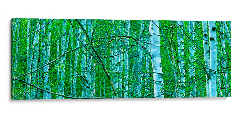 Sumérgete en la vitalidad de la naturaleza con "Panorama De Árbol V", una obra de arte que captura la esencia de un bosque frondoso con un toque vibrante y contemporáneo. Los troncos de abedul, de un blanco azulado distintivo, se alzan majestuosamente entre un mar de hojas verdes intensas, creando un contraste visual impactante. La composición, con sus ramas entrelazadas y la profundidad sugerida, invita a perderse en la atmósfera exuberante y serena del bosque. Los tonos verdes dominantes, realzados por sutiles toques de azul y la textura intrínseca de la corteza de los árboles, confieren a la pieza una sensación de frescura y renovación. Ideal para aquellos que buscan infundir sus espacios con la energía revitalizante de la naturaleza, este cuadro decorativo es perfecto para salas de estar modernas, oficinas o cualquier ambiente que aspire a una conexión con el exterior. Transforma tu hogar en un oasis de tranquilidad y estilo con esta pieza única que celebra la belleza salvaje y la serenidad del paisaje boscoso. Añade un toque de vida y color a tus paredes.