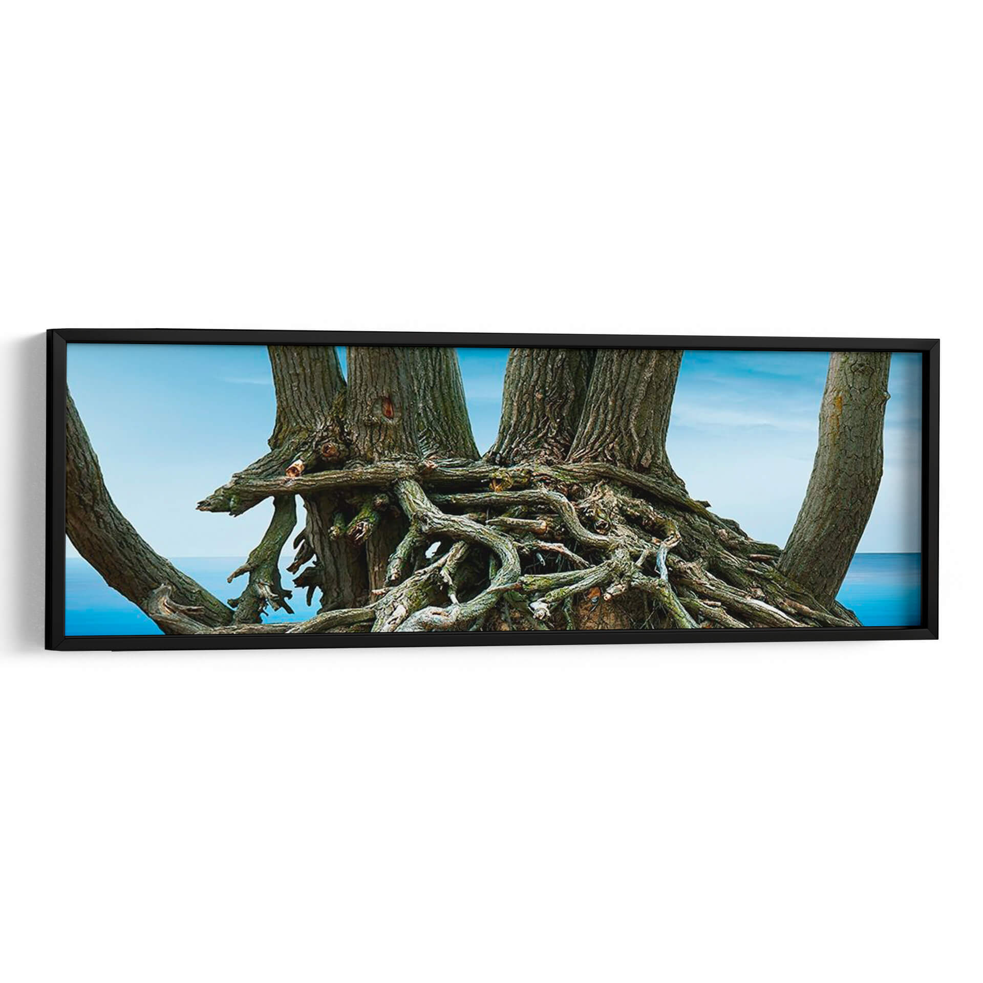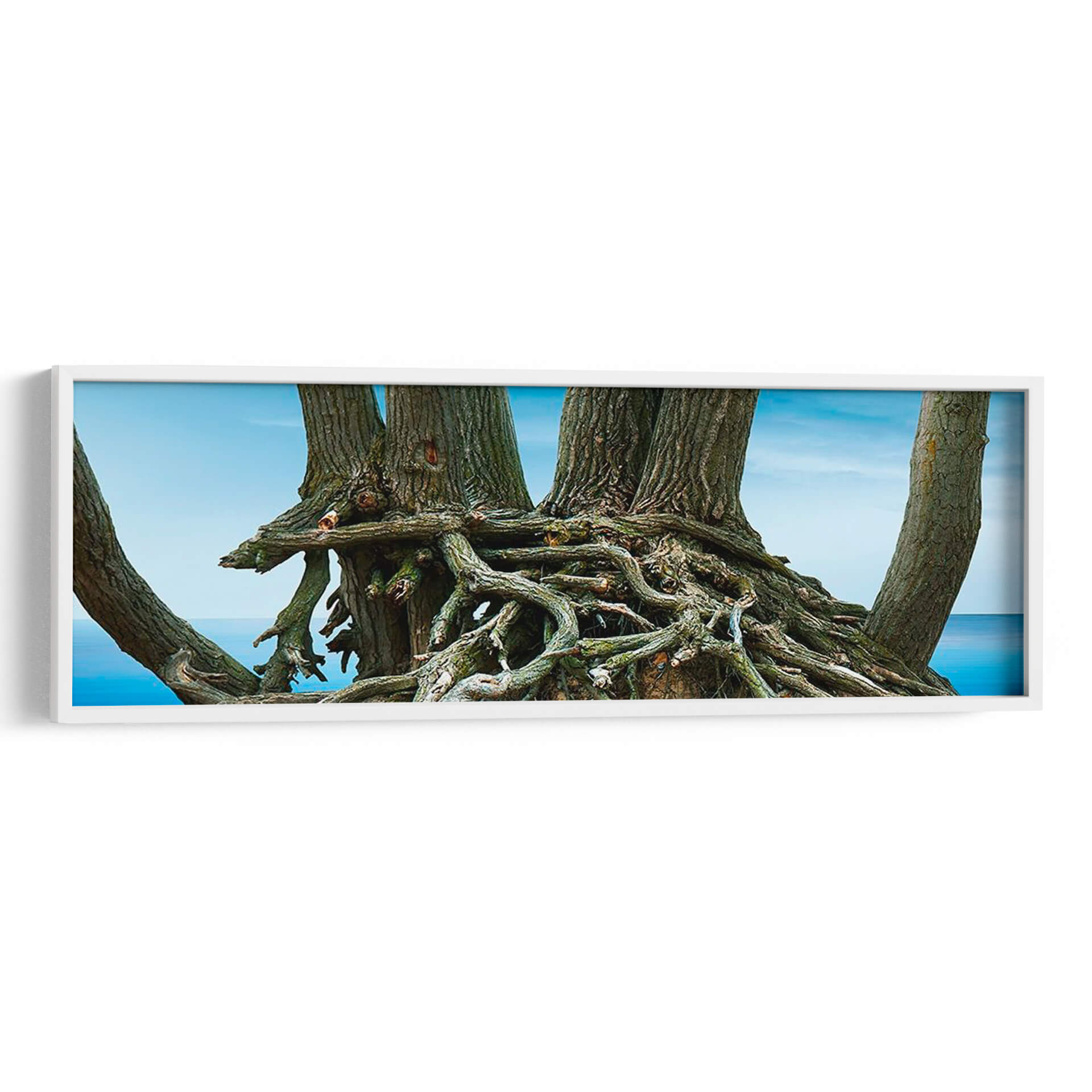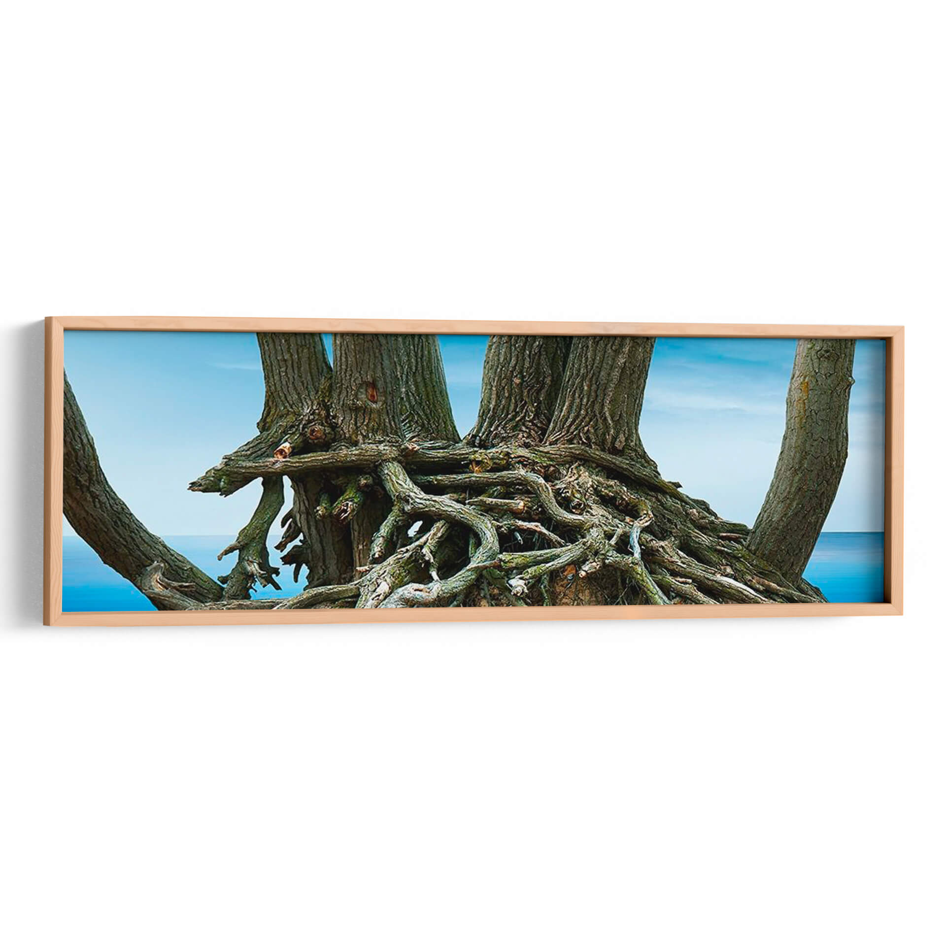 Sumérgete en la fuerza y la conexión de la naturaleza con "Panorama De Árbol VII", una obra de arte impactante del artista James McLoughlin. Esta pieza captura la esencia de un árbol majestuoso, con sus raíces expuestas formando un intrincado tapiz que se aferra a la tierra. El contraste entre la corteza texturizada y las raíces retorcidas, junto con el vibrante cielo azul y el sereno mar de fondo, crea una composición visual cautivadora. Los tonos terrosos de la madera se mezclan armoniosamente con los azules profundos del agua y el cielo, evocando una sensación de calma y estabilidad. "Panorama De Árbol VII" es más que un simple cuadro decorativo; es una representación simbólica de la resiliencia, el crecimiento y la profunda conexión entre la vida y su entorno. Su formato panorámico y su temática naturalista lo convierten en el punto focal perfecto para cualquier sala de estar, estudio u oficina que busque añadir un toque de serenidad y fuerza natural. Transforma tu espacio con este cuadro de árbol, una ventana a la belleza indómita del mundo natural, ideal para quienes aprecian el arte contemporáneo con un mensaje profundo y una estética evocadora. La detallada representación de las raíces y los troncos invita a la contemplación, aportando paz y un sentido de arraigo a tu decoración.
