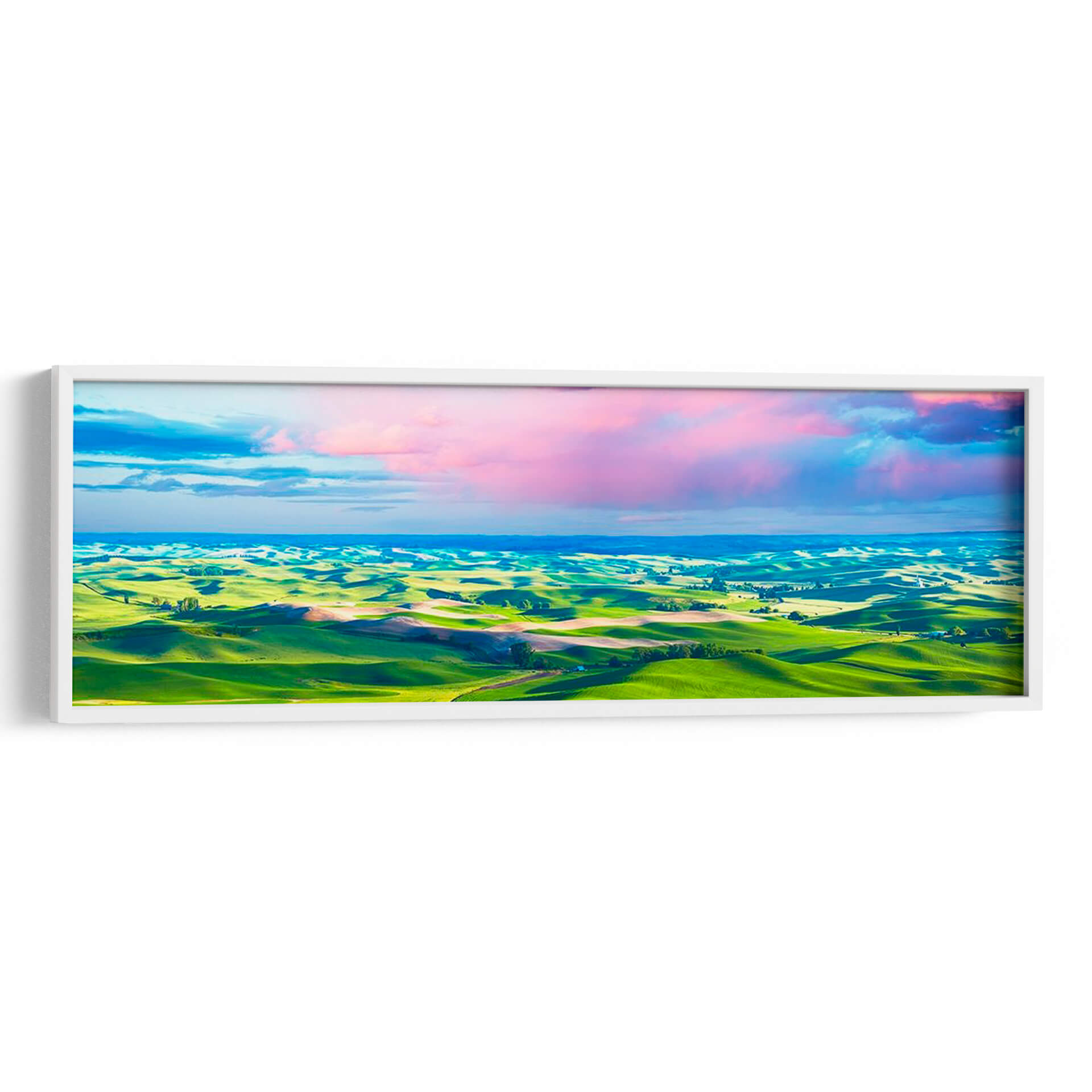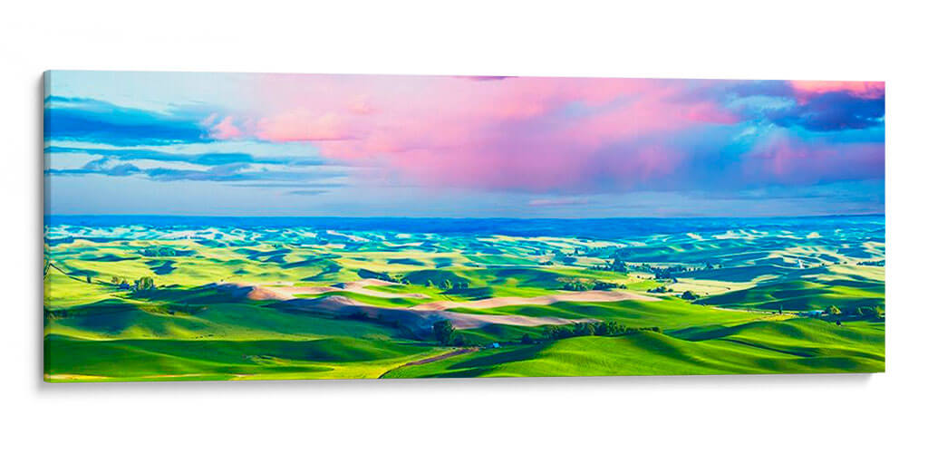 Sumérgete en la serena belleza de "Panorama De La Granja II" de James McLoughlin, un cuadro decorativo que captura la esencia de un paisaje rural vibrante bajo un cielo etéreo. Esta obra maestra evoca una sensación de paz y asombro, con sus ondulantes colinas de un verde esmeralda que se extienden hasta el horizonte. La paleta de colores, dominada por intensos verdes y complementada por un cielo teñido de rosas y azules celestes, crea una atmósfera soñadora y tranquilizadora. La composición panorámica invita a la contemplación, guiando la mirada a través de la profundidad del paisaje, donde pequeños detalles como árboles dispersos y caminos sinuosos añaden un toque de vida y escala. "Panorama De La Granja II" es la pieza ideal para infundir calma y vitalidad en cualquier espacio, ya sea una sala de estar moderna, un sereno dormitorio o un acogedor comedor. Este cuadro decorativo no solo embellece tus paredes, sino que también transporta a quien lo observa a un rincón de tranquilidad natural, transformando tu hogar en un refugio de paz y belleza inspirada en la naturaleza, aportando una perspectiva expansiva y una dosis de color que renueva cualquier ambiente.