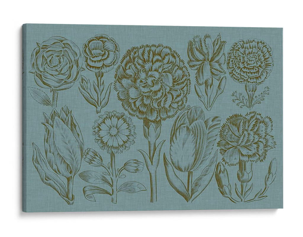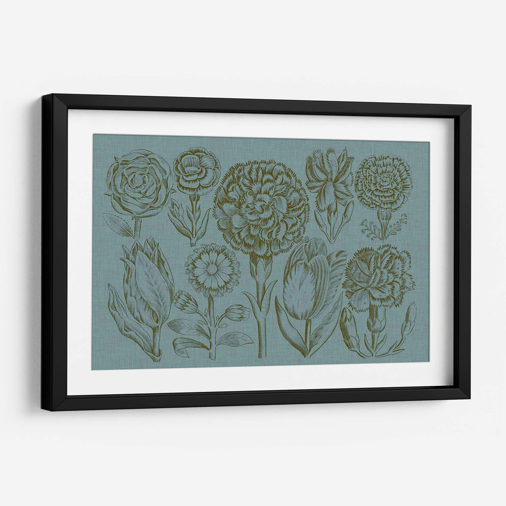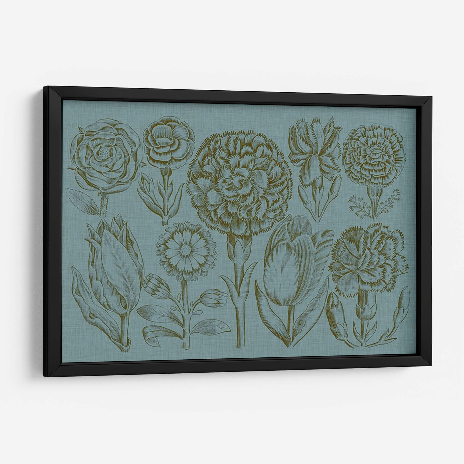 Sumérgete en la delicadeza botánica con 'Pantalla de Flores I', una obra de arte que captura la esencia de diversas flores en un estilo grabado detallado. Los tonos dorados de los pétalos y hojas contrastan sutilmente con un fondo sereno de color azul verdoso, creando una atmósfera de calma y elegancia atemporal. Esta pieza, inspirada en ilustraciones botánicas clásicas, presenta una composición cuidadosa de flores en diferentes etapas de floración, evocando la belleza efímera de la naturaleza. Es ideal para añadir un toque de sofisticación y un aire de jardín secreto a cualquier espacio, desde una sala de estar moderna hasta un tranquilo dormitorio o una oficina inspiradora. El detalle intrincado de cada flor, desde la rosa hasta el tulipán, invita a la contemplación, convirtiendo este cuadro decorativo en un punto focal de conversación y serenidad. Su estilo versátil se adapta a decoraciones clásicas y contemporáneas, aportando un toque de arte refinado y un recordatorio constante de la belleza natural.