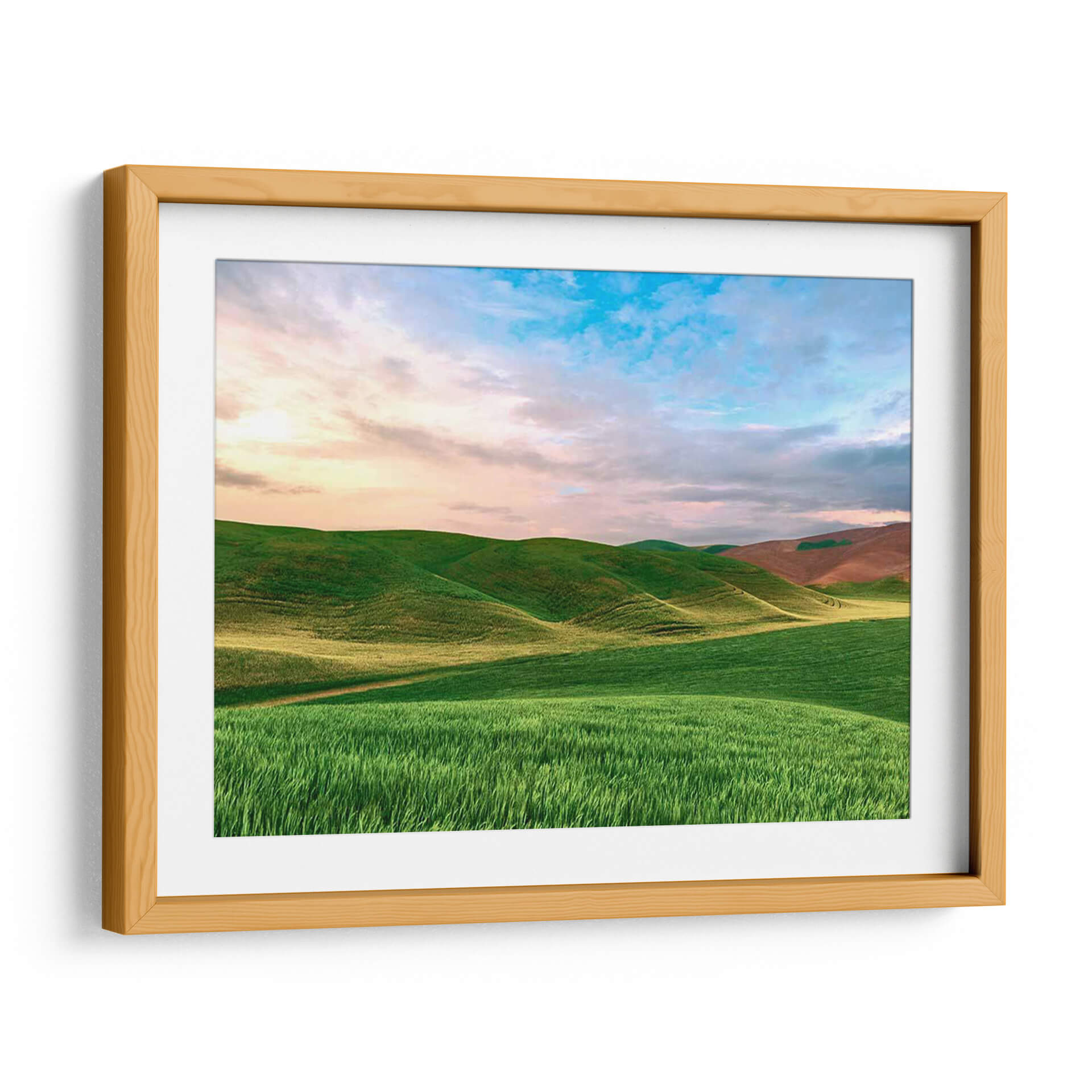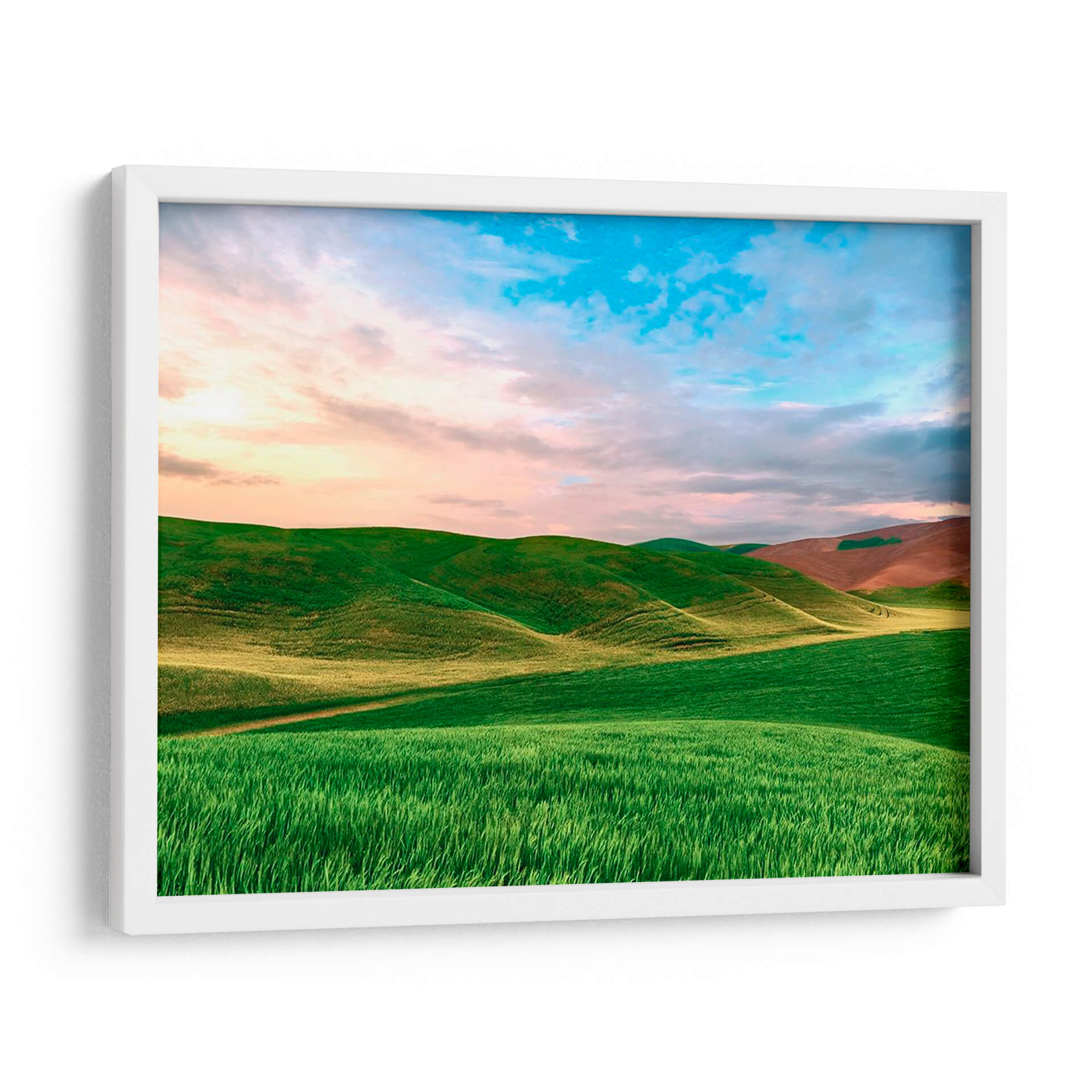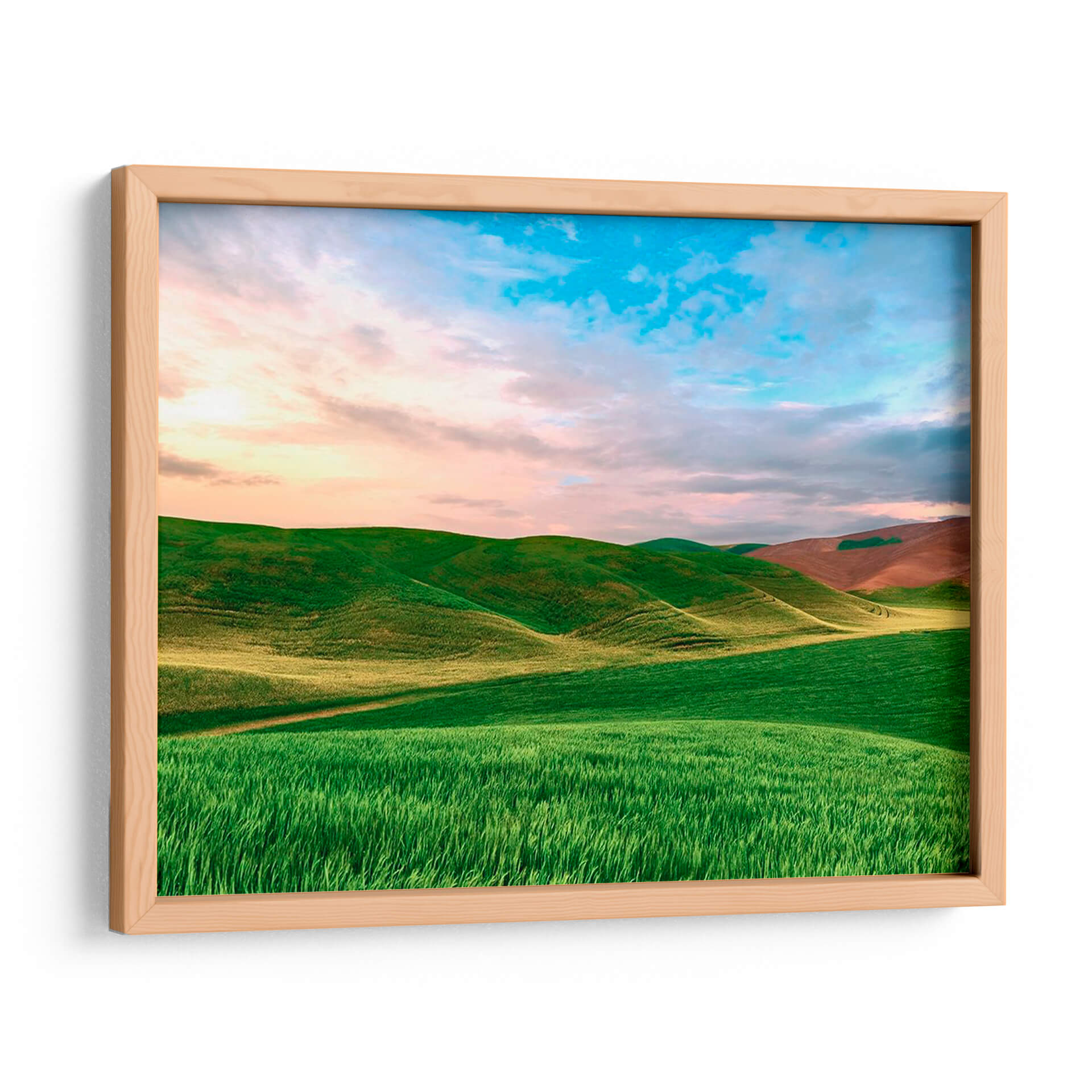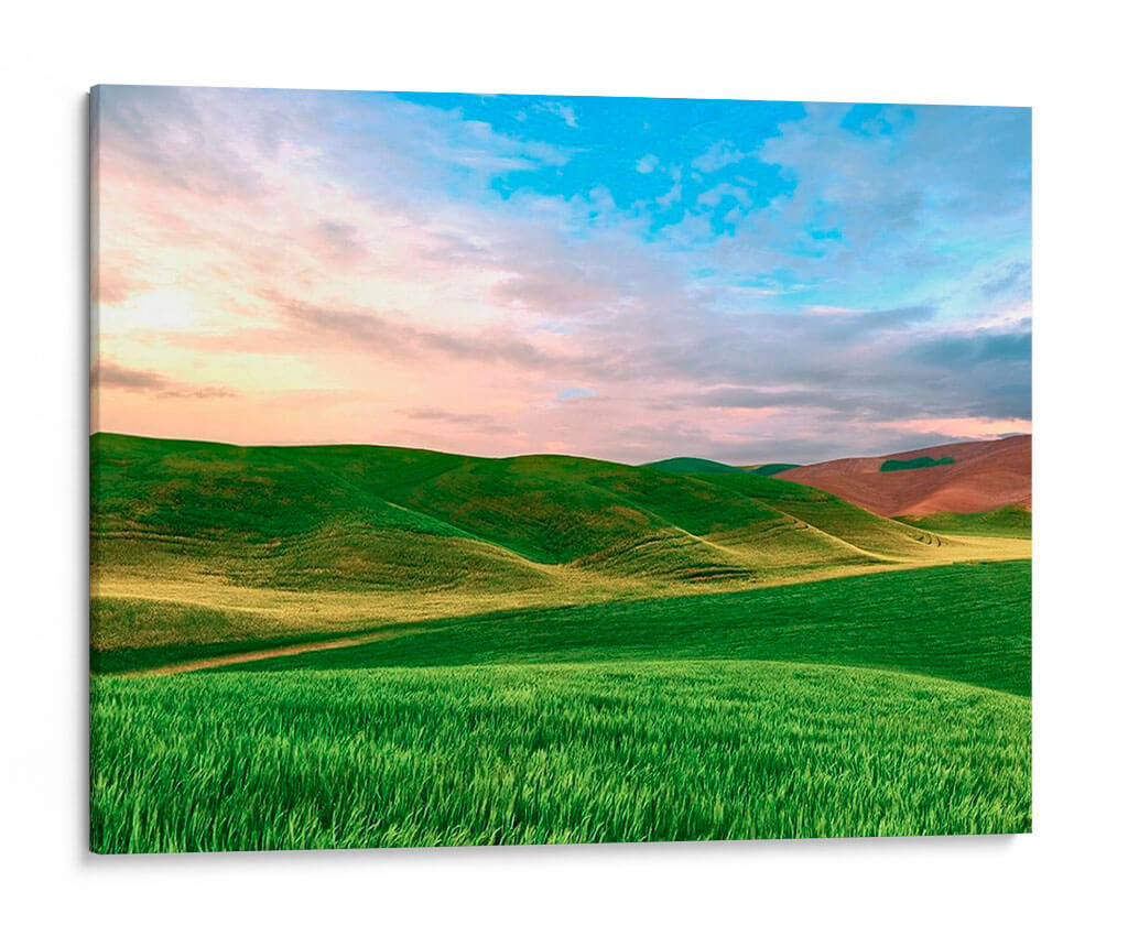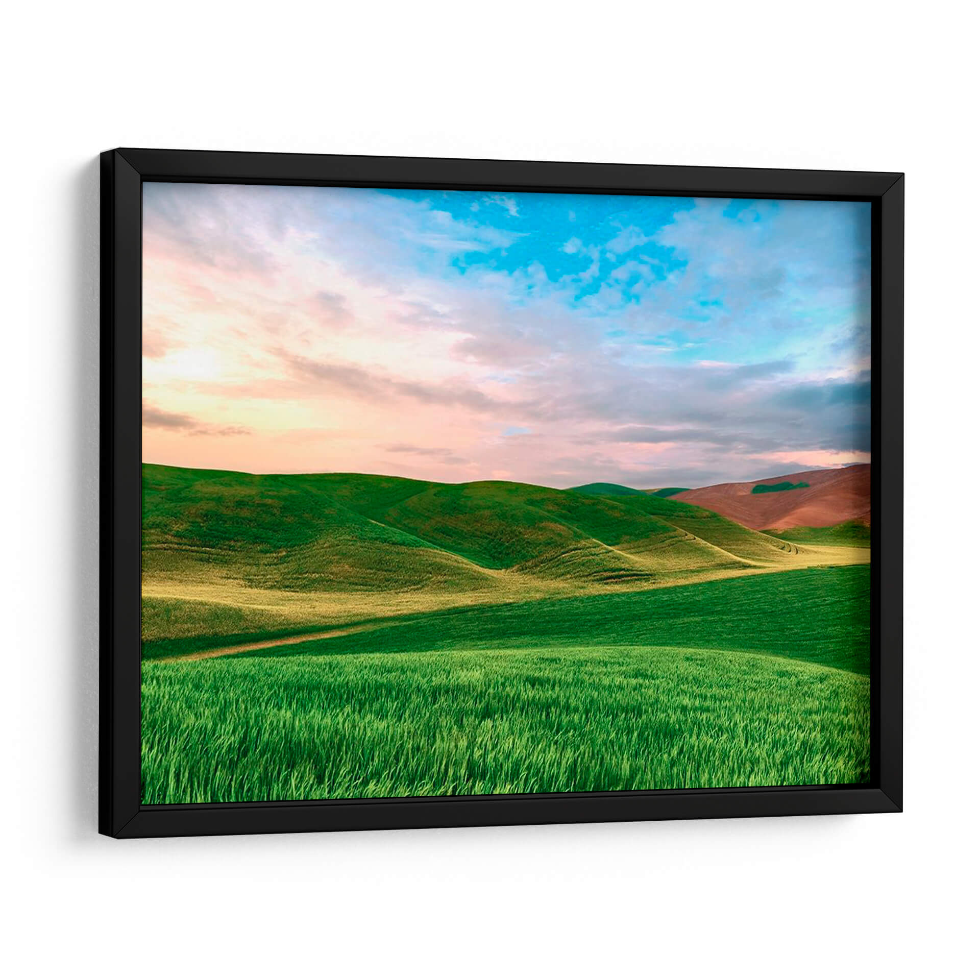 Sumérgete en la serenidad de "Papá De Campo Foto V", una obra maestra de James McLoughlin que captura la esencia de un paisaje rural idílico. Este cuadro decorativo te transporta a colinas ondulantes cubiertas de un vibrante césped verde, con tonos tierra que contrastan suavemente en la distancia. La paleta de colores, dominada por verdes exuberantes y cielos teñidos de rosa y azul por el amanecer o atardecer, crea una atmósfera de paz y tranquilidad. La composición, con sus suaves curvas y la línea de horizonte baja, invita a la contemplación y expande visualmente el espacio. Ideal para añadir un toque de naturaleza y calma a tu salón, dormitorio u oficina, esta pieza evoca la belleza simple de la vida en el campo. El estilo fotográfico realista, combinado con una ligera abstracción en las formas, la convierte en una adición versátil para cualquier decoración moderna o rústica. Deja que la luz suave y los colores armónicos de este cuadro llenen tu hogar de una sensación de bienestar y conexión con la tierra, convirtiéndose en un punto focal que invita a la relajación y la inspiración diaria.