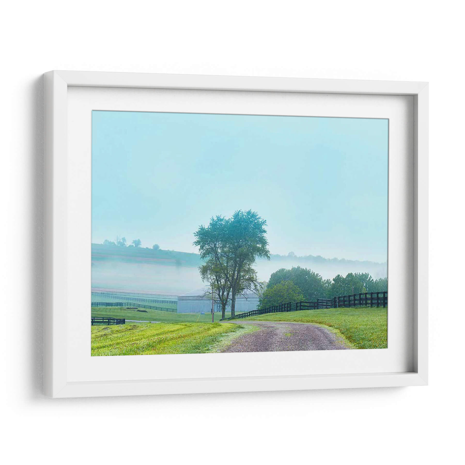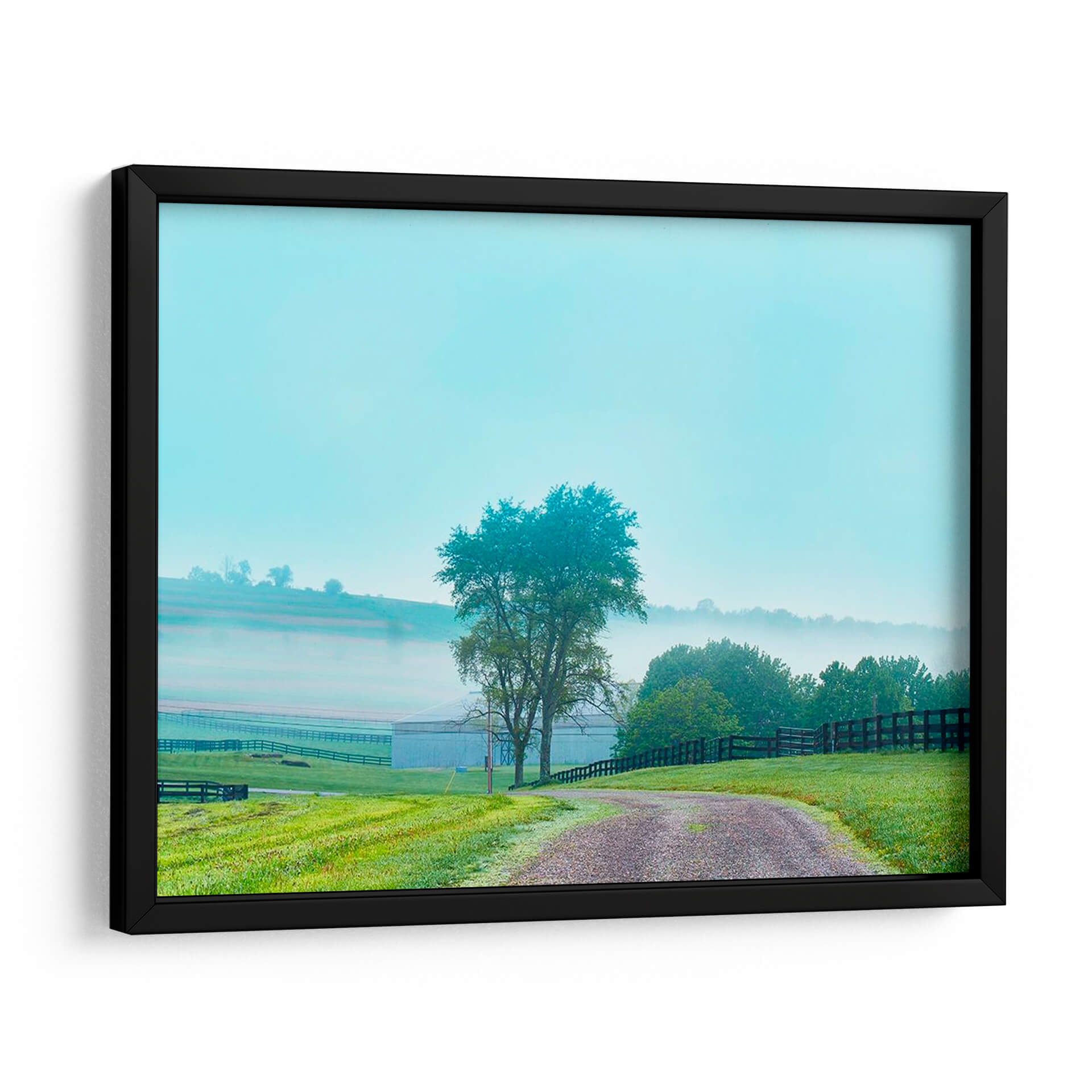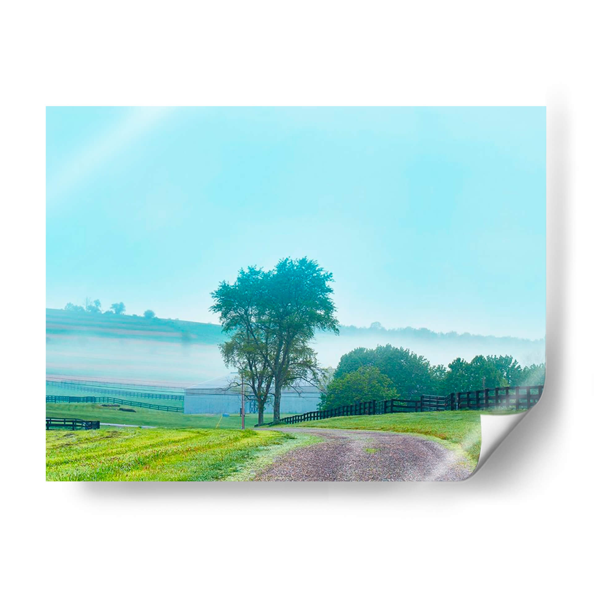 Sumérgete en la serenidad de "Papá De Campo Foto Vii", una obra de James McLoughlin que captura la esencia de una mañana brumosa en el campo. Este cuadro decorativo te transporta a un paisaje rural idílico, donde una suave neblina se posa sobre las colinas y un camino de grava serpentea a través de un césped verde vibrante. Los tonos azulados del cielo y la bruma se fusionan con los verdes intensos de la vegetación y el marrón terroso del camino, creando una paleta de colores armoniosa y relajante. La composición, con un árbol solitario como punto focal y la estructura de una granja difuminada en el fondo, evoca una sensación de paz y conexión con la naturaleza. "Papá De Campo Foto Vii" es ideal para quienes buscan añadir un toque de tranquilidad y belleza natural a su hogar u oficina, convirtiéndose en un refugio visual que invita a la calma. Perfecto para salones, dormitorios o estudios que anhelen una atmósfera de serenidad y un recordatorio de la belleza sencilla del campo.