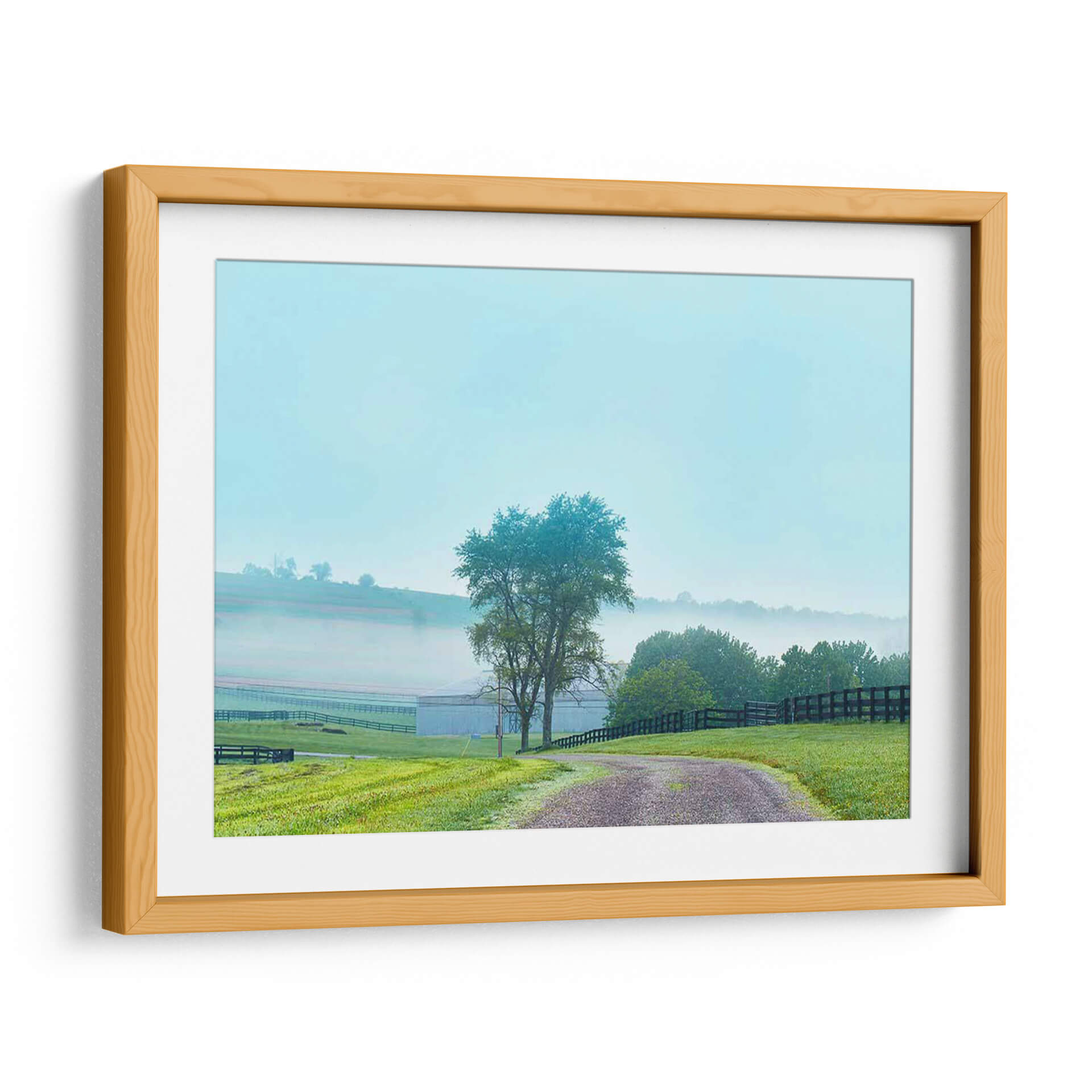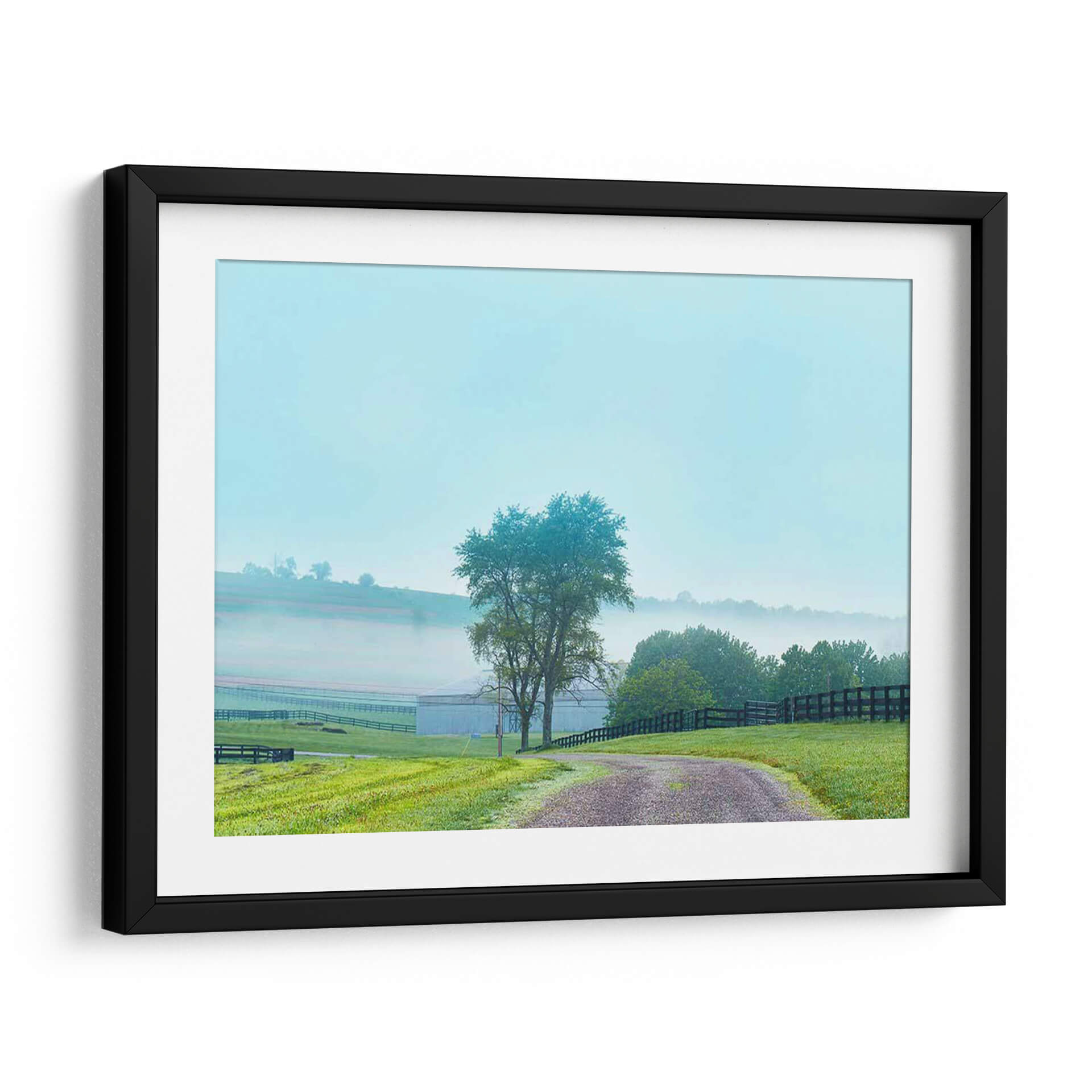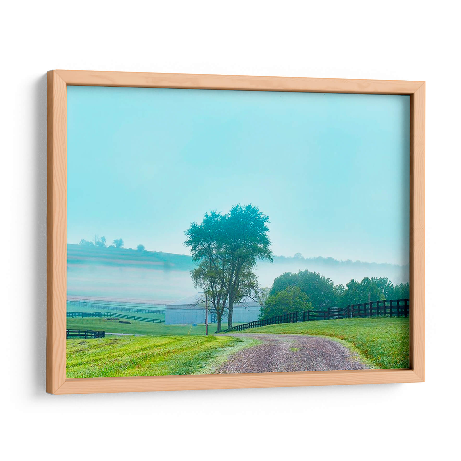 Sumérgete en la serenidad de "Papá De Campo Foto Vii", una obra de James McLoughlin que captura la esencia de una mañana brumosa en el campo. Este cuadro decorativo te transporta a un paisaje rural idílico, donde una suave neblina se posa sobre las colinas y un camino de grava serpentea a través de un césped verde vibrante. Los tonos azulados del cielo y la bruma se fusionan con los verdes intensos de la vegetación y el marrón terroso del camino, creando una paleta de colores armoniosa y relajante. La composición, con un árbol solitario como punto focal y la estructura de una granja difuminada en el fondo, evoca una sensación de paz y conexión con la naturaleza. "Papá De Campo Foto Vii" es ideal para quienes buscan añadir un toque de tranquilidad y belleza natural a su hogar u oficina, convirtiéndose en un refugio visual que invita a la calma. Perfecto para salones, dormitorios o estudios que anhelen una atmósfera de serenidad y un recordatorio de la belleza sencilla del campo.