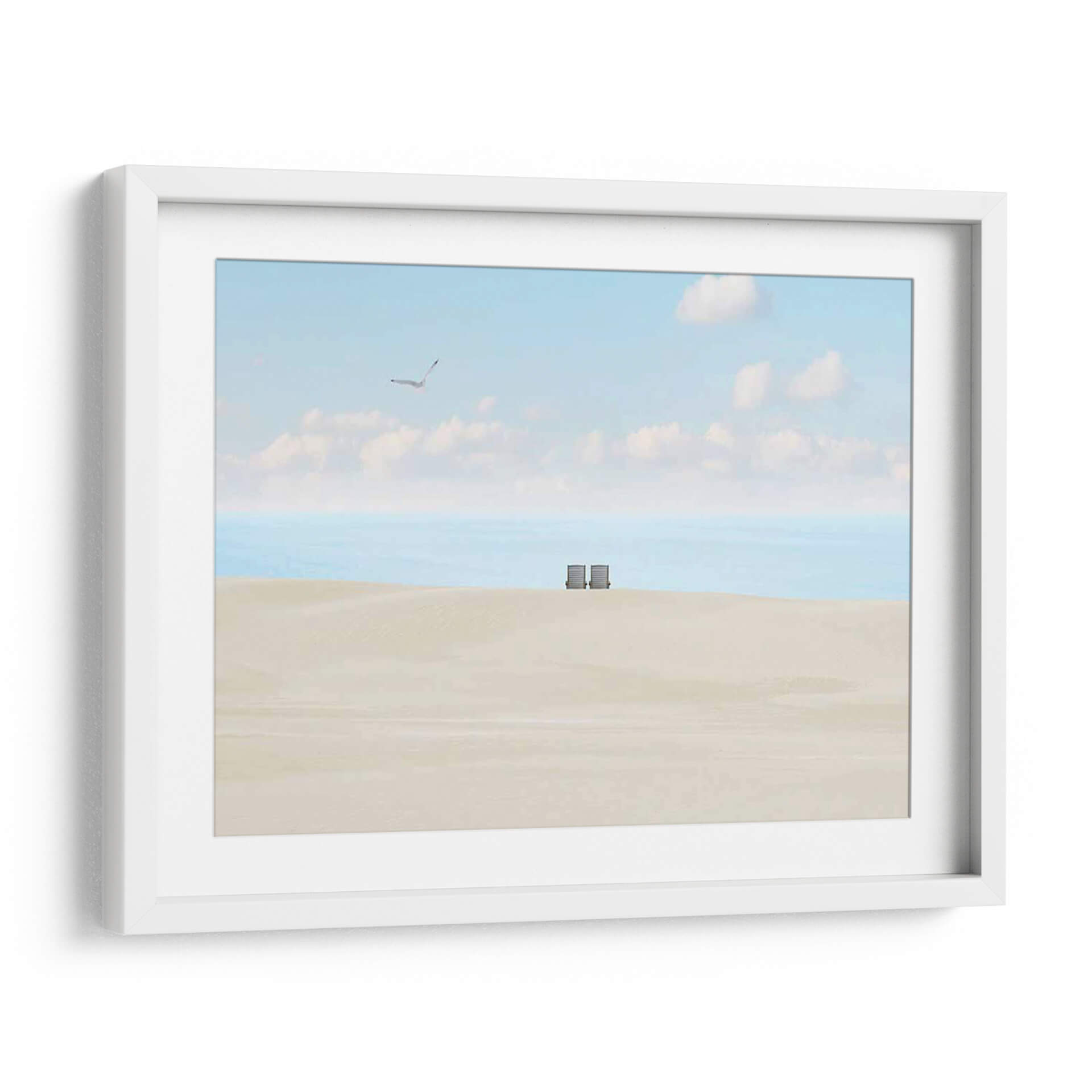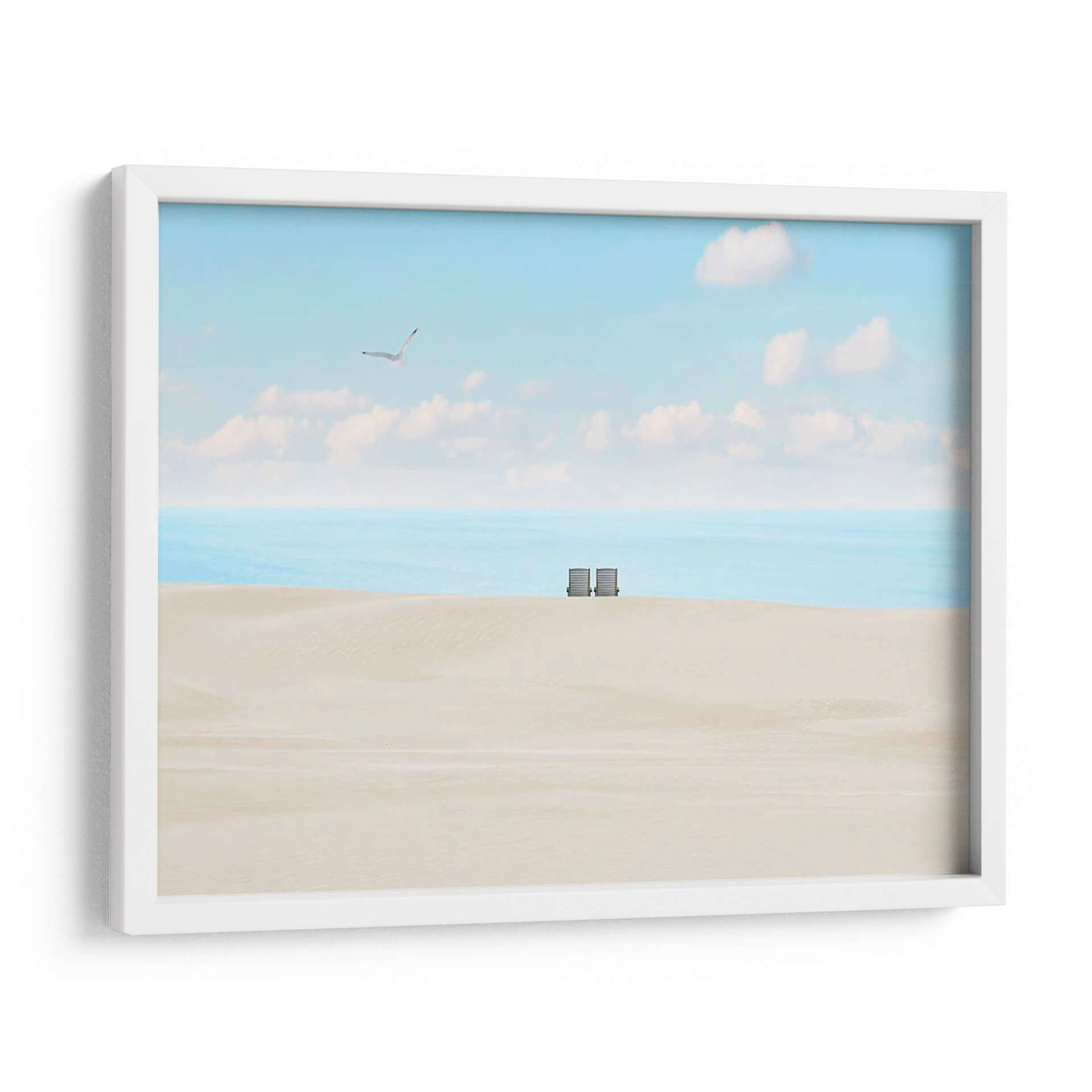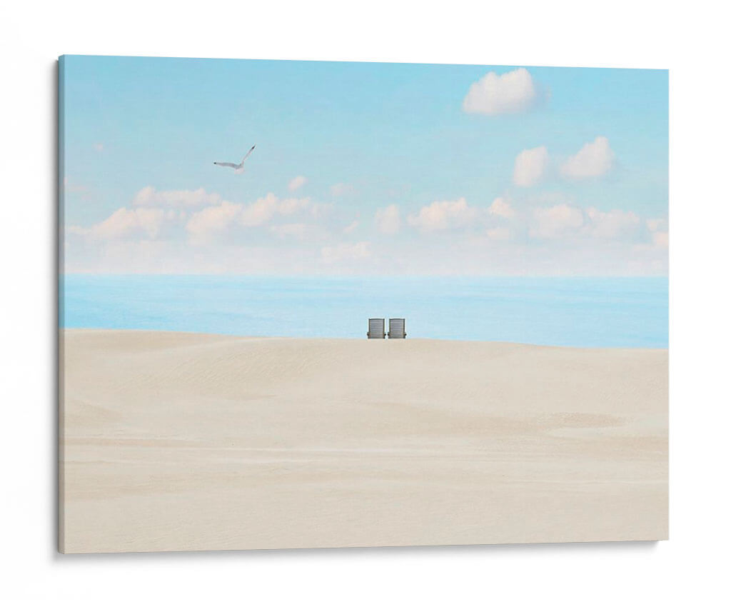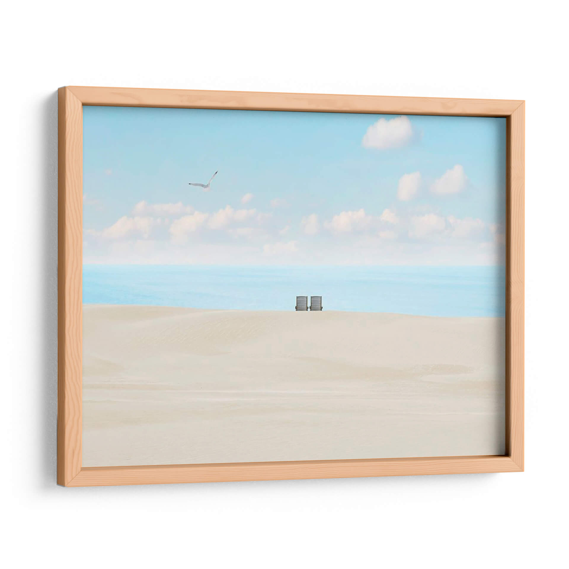 Sumérgete en la serenidad de la costa con "Papel De Playa Foto Ii", una obra de arte que captura la esencia de un día tranquilo en la playa. Este cuadro decorativo te transporta a un paisaje idílico donde las dunas doradas se encuentran con el mar azul cristalino bajo un cielo vasto y luminoso, salpicado de nubes esponjosas y la silueta de una gaviota en vuelo. La composición minimalista y la paleta de colores suaves, dominada por tonos arena, celestes y blancos, crean una atmósfera de paz y relajación profunda. La presencia de dos tumbonas en la cima de la duna invita a la contemplación y al descanso, sugiriendo un refugio personal y un momento de escape. "Papel De Playa Foto Ii" es ideal para añadir un toque de calma y sofisticación a cualquier espacio, desde una sala de estar moderna hasta un dormitorio sereno o un baño con temática costera. Su estética limpia y evocadora la convierte en una pieza versátil que armoniza con diversos estilos de decoración, aportando una sensación de amplitud y luz natural. Transforma tu hogar en un oasis de tranquilidad con este evocador paisaje marino, una ventana a la belleza simple y reconfortante del océano.