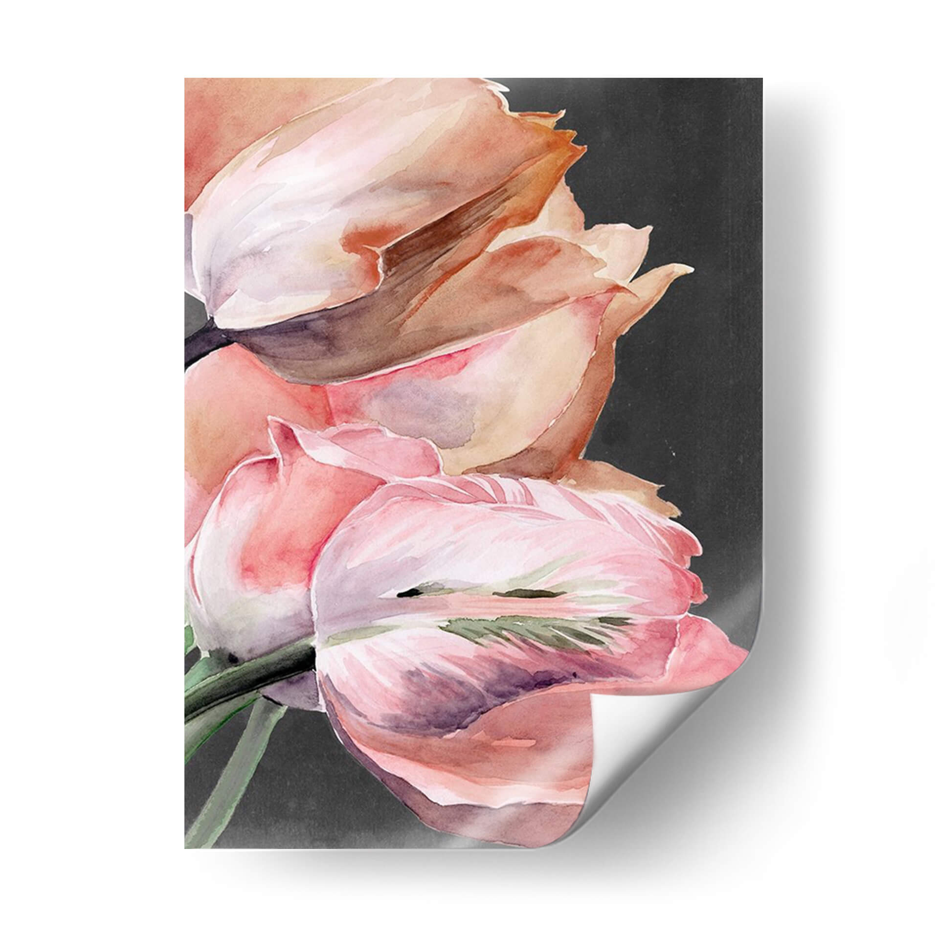 Captura la delicadeza y la belleza efímera de la naturaleza con "Parrot Pastel Tulipanes Iv", una exquisita obra de arte digital de Jennifer Paxton Parker. Este cuadro decorativo presenta un cautivador primer plano de tulipanes en tonos pastel, pintados con una técnica que evoca la suavidad de la acuarela. Los pétalos se despliegan en una paleta de rosas suaves, corales cálidos y toques de lila y verde, contrastando elegantemente con un fondo oscuro y texturizado. La composición se centra en la forma orgánica de las flores, invitando a la contemplación y aportando una sensación de serenidad y frescura a cualquier espacio. El estilo, que fusiona lo figurativo con toques sutiles de abstracción, lo hace versátil para una variedad de decoraciones, desde interiores modernos hasta ambientes más clásicos. Ideal para añadir un toque de color y elegancia a tu sala de estar, dormitorio o incluso un espacio de trabajo, este cuadro decorativo es una celebración de la primavera y la delicadeza floral. Su atmósfera tranquila y su estética refinada lo convierten en una pieza de arte de pared que inspira paz y realza la belleza de tu hogar.