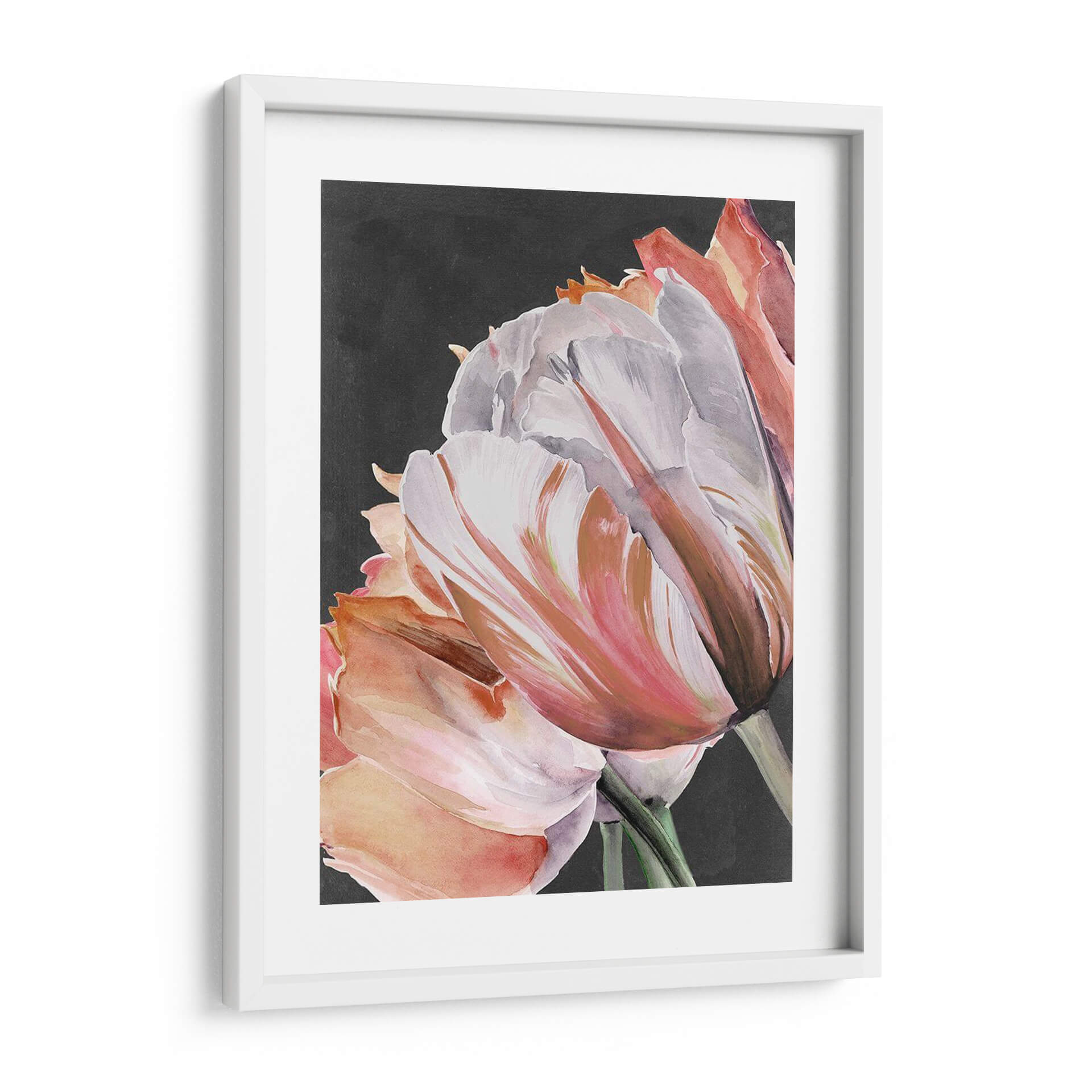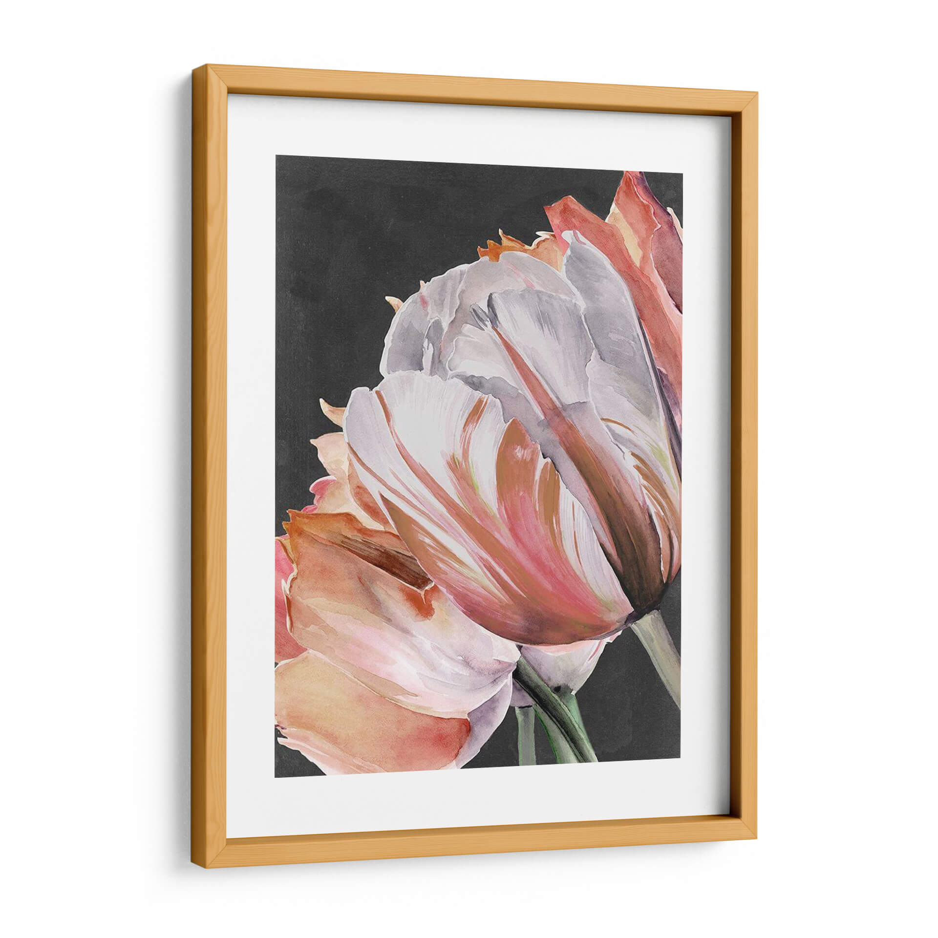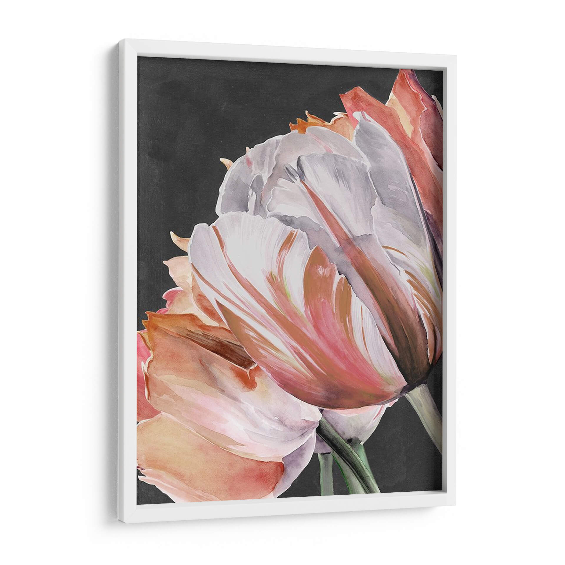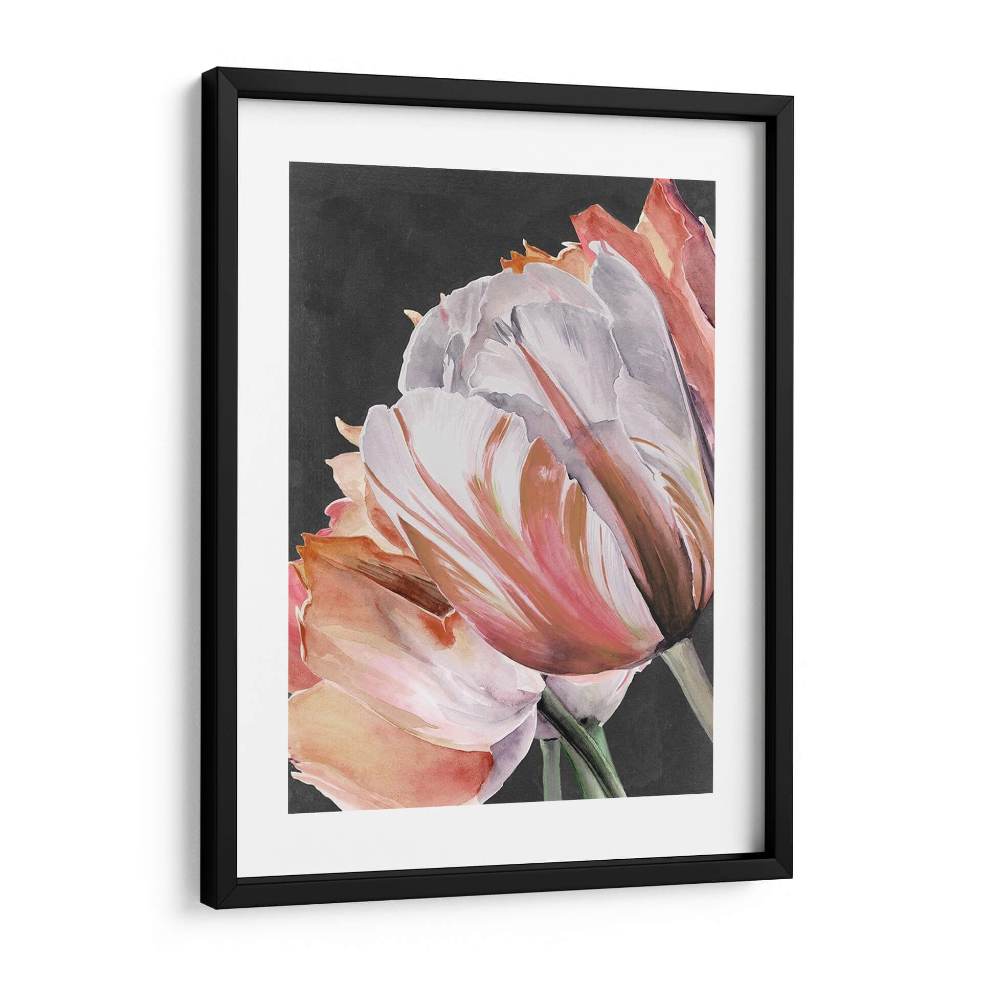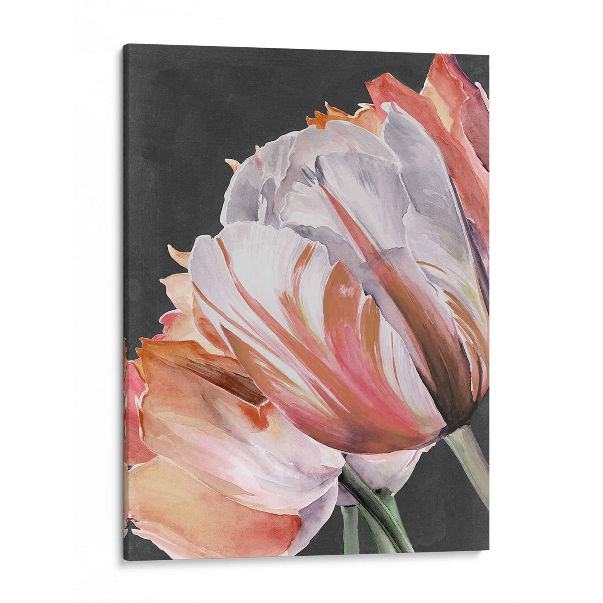 Captura la delicada belleza de la naturaleza con este exquisito cuadro decorativo de tulipanes, "Parrot Pastel Tulips III", obra de la talentosa artista Jennifer Paxton Parker. Esta pieza evoca una sensación de serenidad y elegancia, ideal para transformar cualquier espacio en un oasis de calma y sofisticación. La composición se centra en el primer plano de vibrantes tulipanes, cuyas pétalos en tonos pastel de rosa, melocotón y blanco se despliegan con una gracia sutil. La técnica de acuarela, aplicada con maestría, permite apreciar la translucidez de los pétalos y la delicadeza de las pinceladas, creando una atmósfera etérea. El fondo oscuro y texturizado contrasta maravillosamente con la suavidad de las flores, realzando su volumen y detalle. Este cuadro decorativo es perfecto para añadir un toque de color suave y un aire de refinamiento a tu sala de estar, dormitorio o estudio. Su estilo contemporáneo pero atemporal lo convierte en una adición versátil a cualquier esquema de decoración, desde lo moderno hasta lo más clásico. Deja que la dulzura y la frescura de estos tulipanes inspiren tus sentidos y aporten una dosis de alegría natural a tu hogar u oficina. Una elección perfecta para amantes del arte floral y para quienes buscan una pieza que combine arte y serenidad.