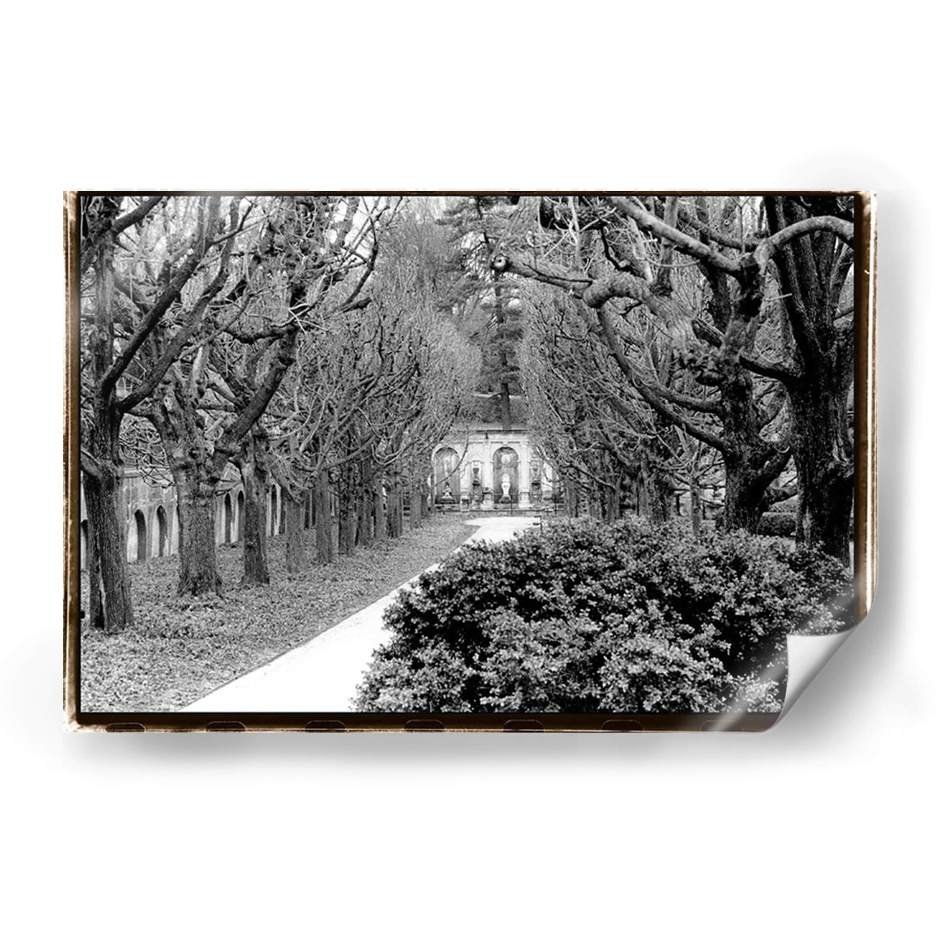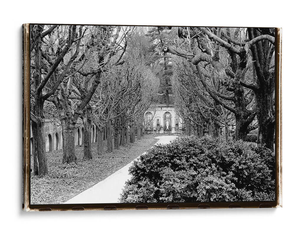 Sumérgete en la serena belleza de 'Paseo Marítimo', una obra maestra de Laura DeNardo que captura la esencia de un tranquilo paseo invernal. Esta fotografía en blanco y negro presenta un camino serpenteante flanqueado por árboles desnudos, cuyas ramas se entrelazan creando un dosel dramático. Al fondo, una elegante estructura arquitectónica con estatuas y arcos añade un toque de historia y grandiosidad, invitando a la contemplación. La composición crea una profunda sensación de perspectiva, guiando la mirada hacia el horizonte y generando una atmósfera de calma y reflexión. La ausencia de color resalta las texturas y las formas, confiriendo a la pieza una atemporalidad y un aire poético. Este cuadro decorativo es ideal para espacios que buscan evocar paz y sofisticación, como un estudio, una biblioteca o un salón de estar. Su estilo fotográfico clásico y su temática evocadora lo convierten en una adición perfecta para quienes aprecian el arte que inspira tranquilidad y eleva el espíritu. Añade un toque de elegancia atemporal a tu hogar con esta impresionante pieza.