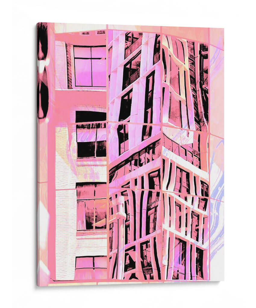Captura la esencia vibrante de la arquitectura urbana con "Pasteles Urbanos II" de Paul McCreery, una obra de arte que redefine la perspectiva de los paisajes citadinos. Esta pieza se sumerge en una paleta de colores pastel, dominada por tonos rosados y púrpuras que bañan las estructuras de edificios, creando un efecto onírico y moderno. La composición juega con las líneas arquitectónicas y los reflejos, fragmentando la realidad para presentar una visión estilizada y casi abstracta de la ciudad. Los detalles de las ventanas y las fachadas se transforman en patrones gráficos, invitando a una contemplación más profunda de las formas y la luz. El estilo artístico, que fusiona la fotografía urbana con un tratamiento digital distintivo, otorga a la obra una atmósfera etérea y sofisticada. Es ideal para aquellos que buscan infundir sus espacios con un toque contemporáneo y una dosis de color suave pero impactante. Este cuadro decorativo es perfecto para salones, oficinas o cualquier ambiente que desee una declaración de estilo audaz y artístico, añadiendo profundidad y un aire de ensueño a la decoración.