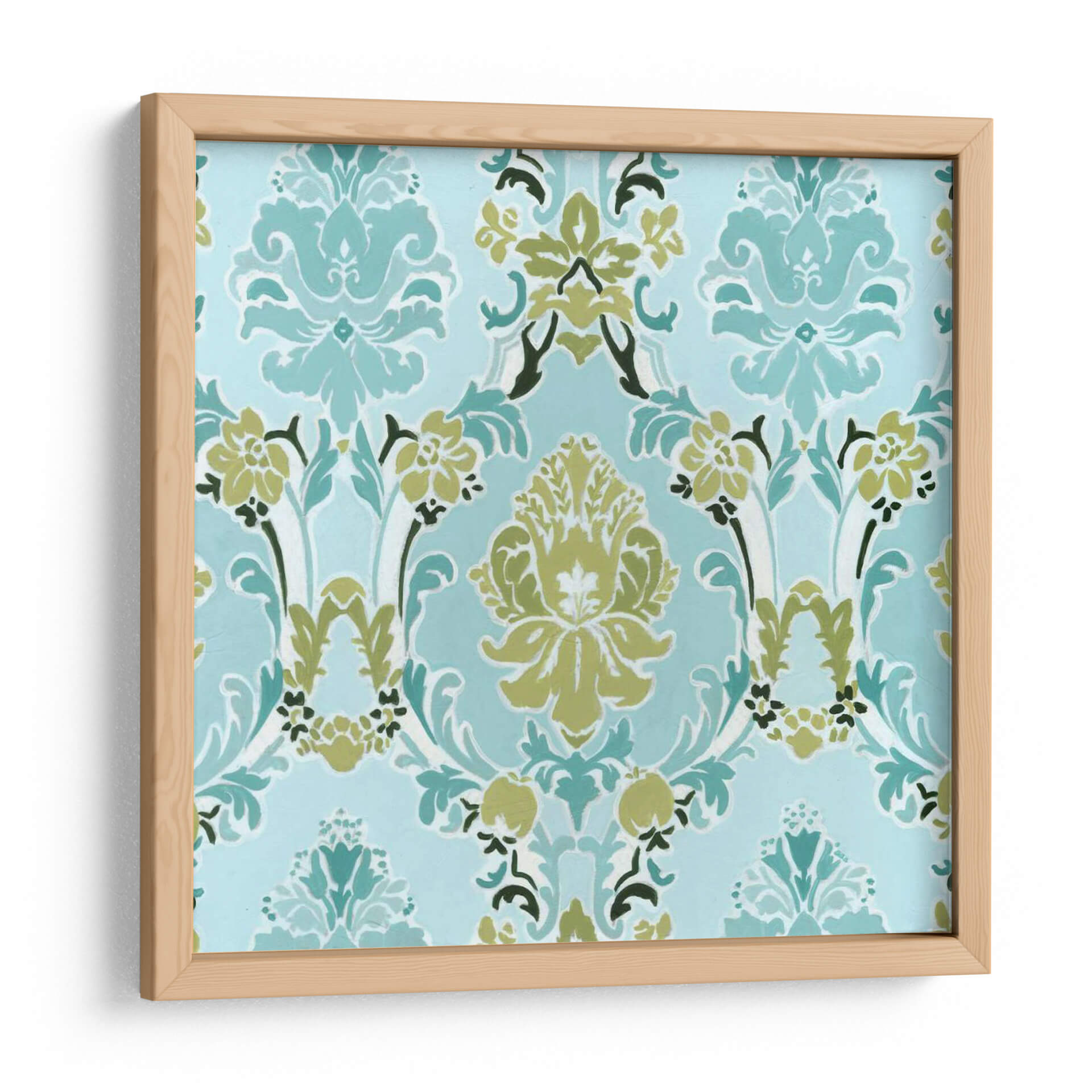 Embellece tu hogar con el cuadro decorativo "Patrones de Cottage II", una obra maestra del artista June Erica Vess. Esta pieza evoca una sensación de elegancia atemporal y sofisticación rústica, fusionando elementos florales y ornamentales en un patrón repetitivo que recuerda a los tapices clásicos y la arquitectura barroca. La paleta de colores, dominada por suaves tonos azul cielo y vibrantes acentos verde lima, crea una atmósfera serena y refrescante, perfecta para añadir un toque de color y vida a cualquier estancia. Los intrincados detalles y la composición equilibrada invitan a la contemplación, mientras que su estilo detallado pero con un toque de acuarela le confiere una calidez artesanal. Ideal para salones, comedores o dormitorios que buscan un aire de distinción y encanto campestre moderno. Este cuadro decorativo es más que una simple adición a tu pared; es una ventana a un mundo de belleza y tranquilidad, diseñada para complementar tanto decoraciones clásicas como contemporáneas, aportando un punto focal único y lleno de carácter.