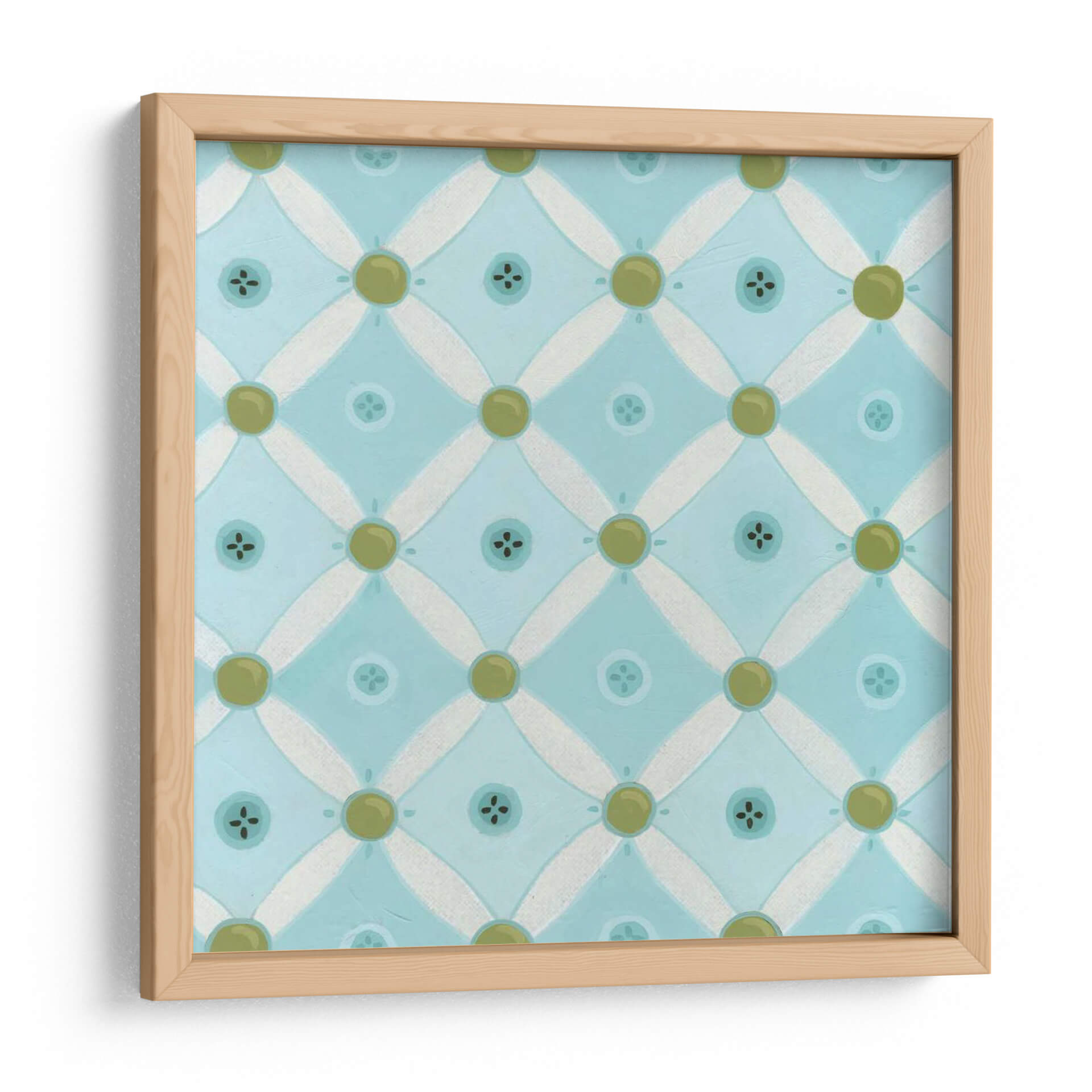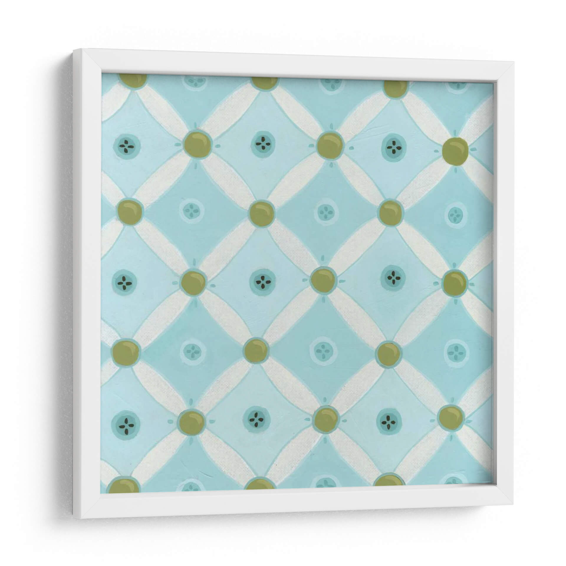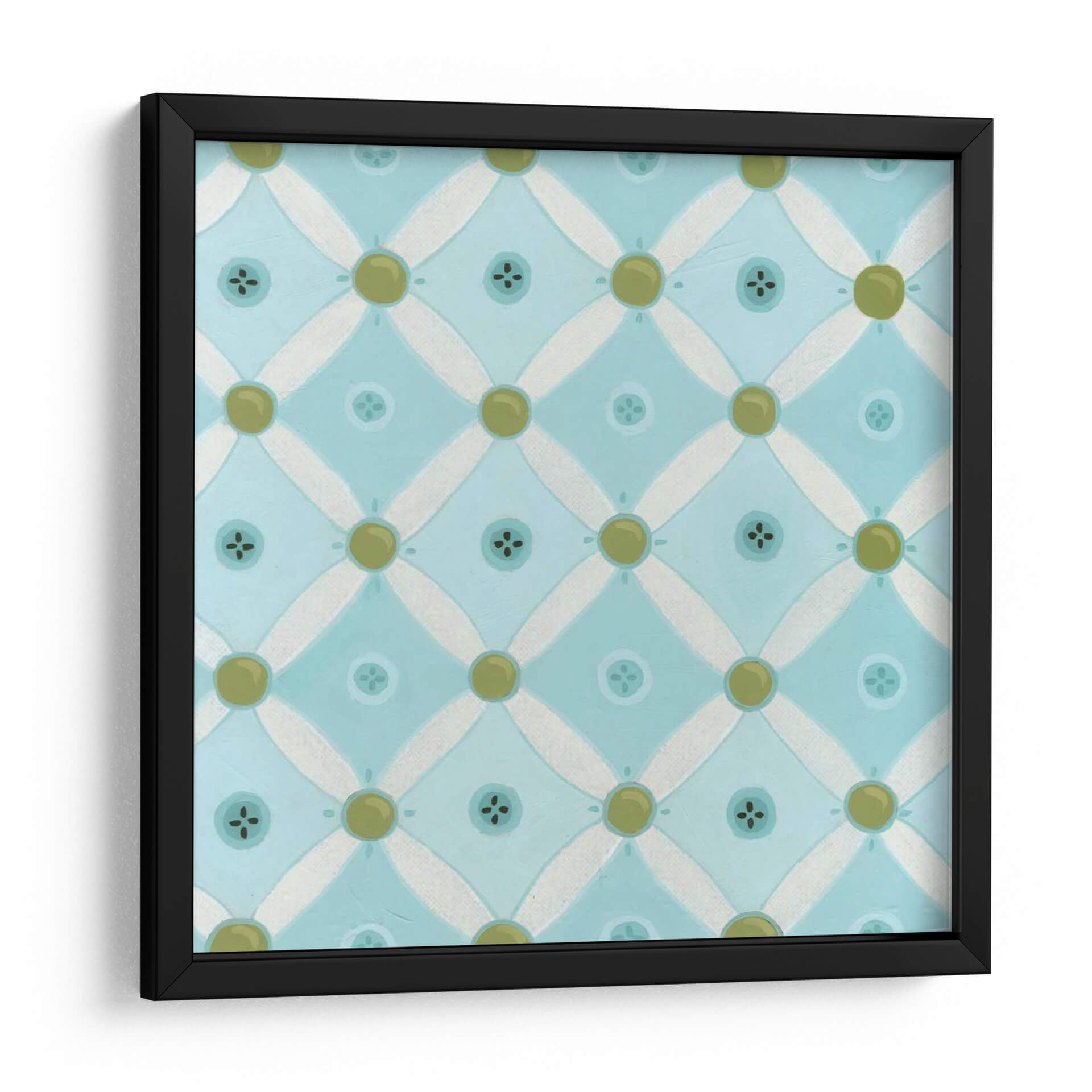 Descubre "Patrones de Cottage Viii", una encantadora obra de arte de June Erica Vess que aporta una dosis de serenidad y estilo escandinavo a tu hogar. Este cuadro decorativo presenta un patrón geométrico sutil pero cautivador, dominado por una paleta de colores pastel que evoca calma y ligereza. El diseño intrincado, con sus diamantes interconectados y delicados toques de verde oliva y blanco sobre un fondo azul cielo, crea una sensación de orden y armonía visual. La simplicidad de sus formas, reminiscentes de botones o pequeñas flores estilizadas, añade un toque acogedor y familiar, ideal para espacios que buscan confort y un aire de campo refinado. Perfecto para el dormitorio, un rincón de lectura o incluso un baño, este cuadro transformará cualquier ambiente en un refugio de tranquilidad. Su composición repetitiva y equilibrada genera un efecto hipnótico y relajante, invitando a la contemplación. "Patrones de Cottage Viii" no es solo una pieza decorativa, sino una invitación a la paz y al buen gusto, un complemento esencial para quienes aprecian el arte abstracto con alma.