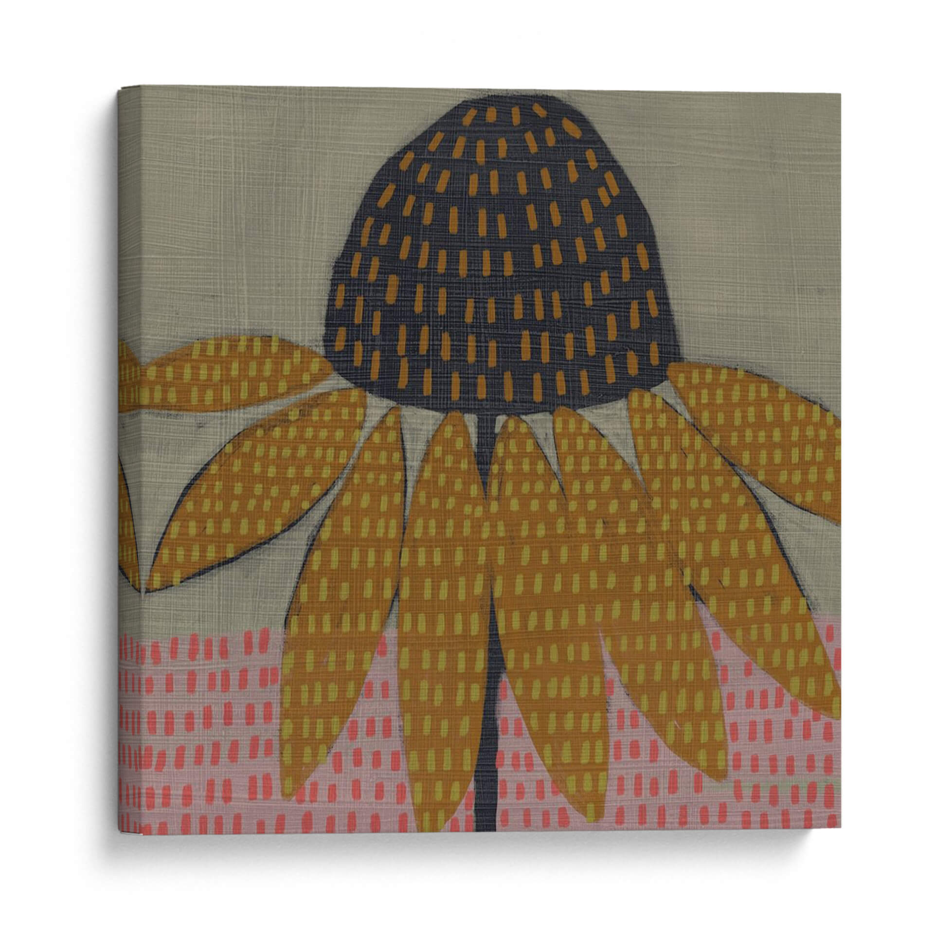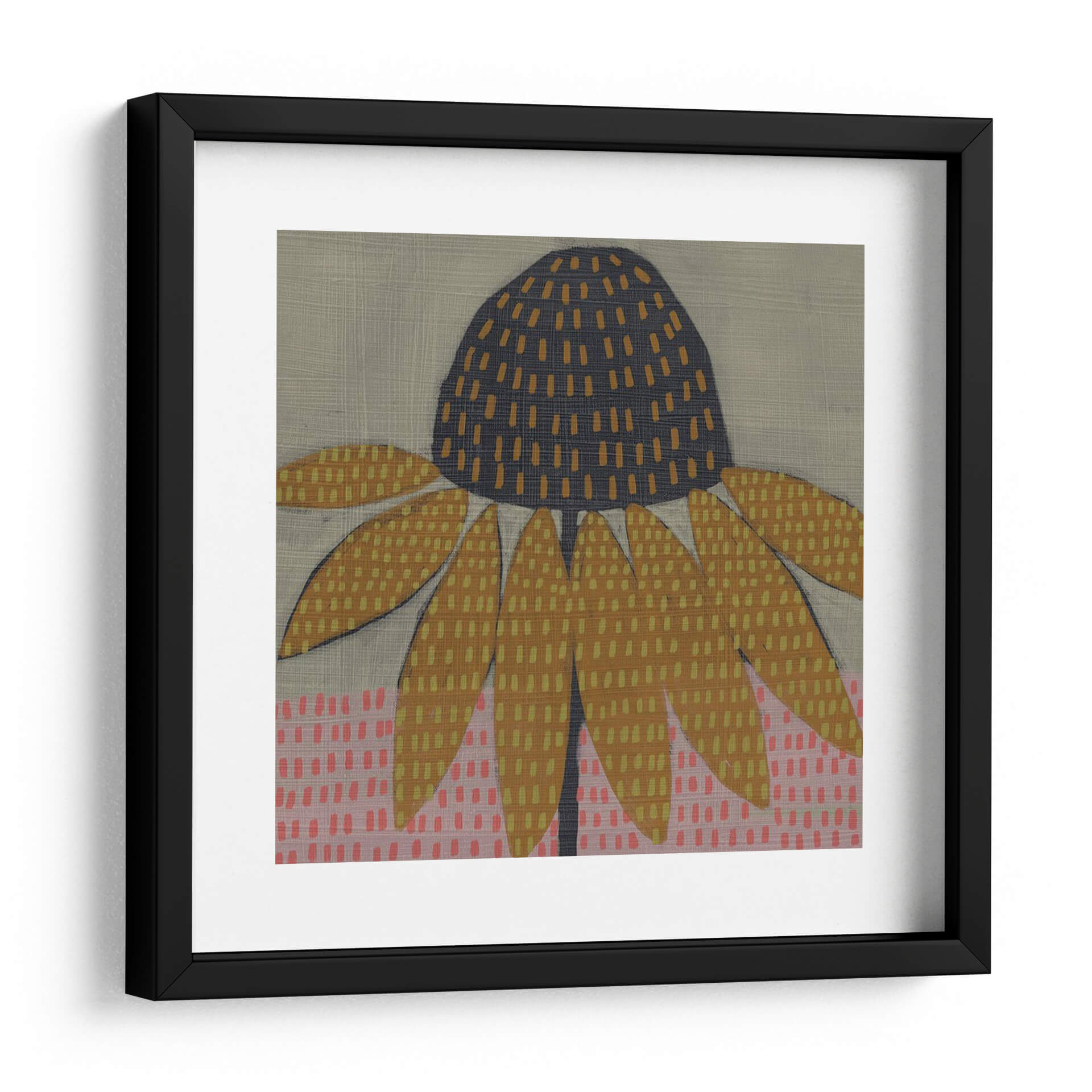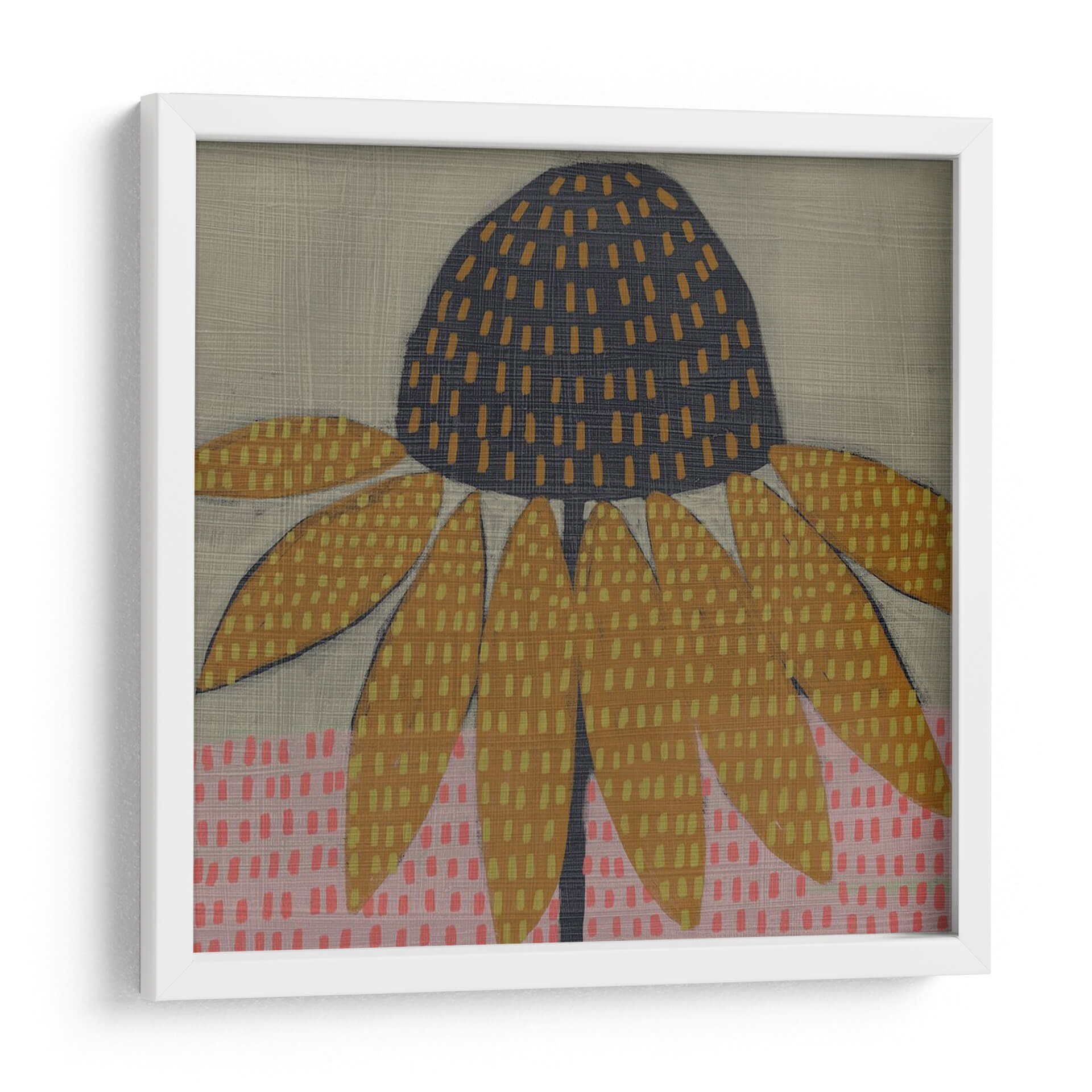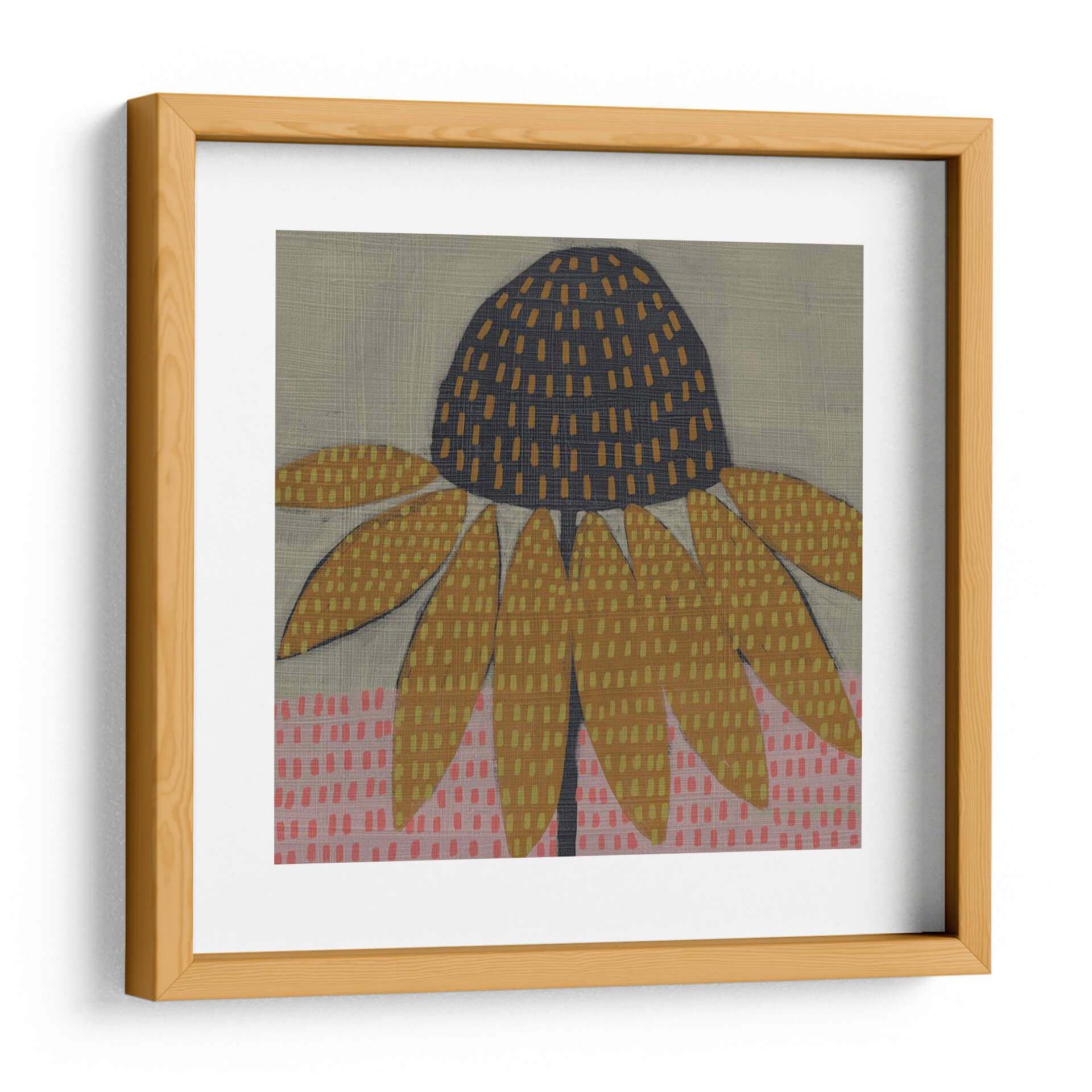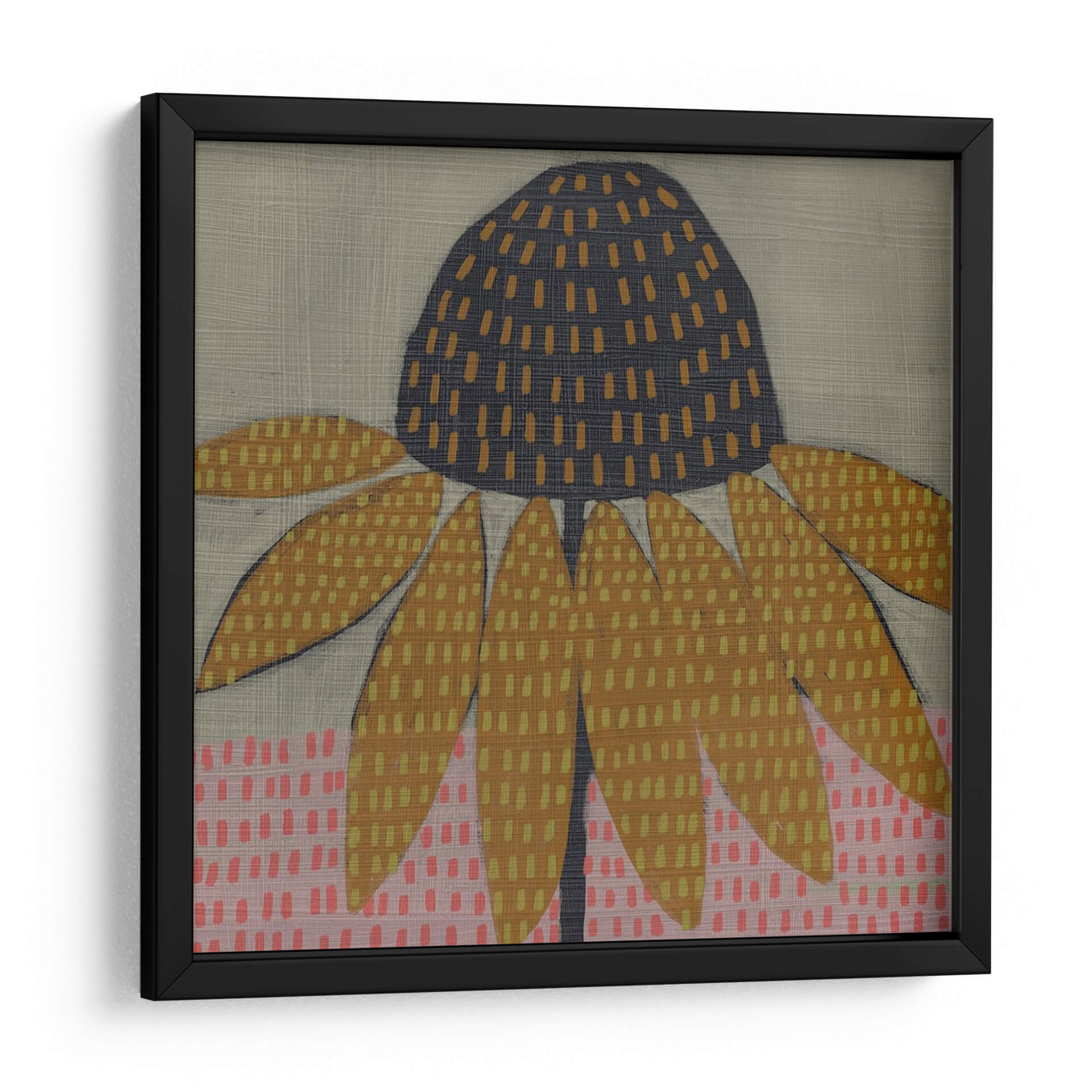 Aporta un toque de naturaleza estilizada y diseño contemporáneo a tu hogar con "Pawpaw I", una obra de arte vibrante del artista Chariklia Zarris. Este cuadro decorativo abstracto presenta una representación audaz de una flor, dominada por tonos tierra cálidos como el mostaza y el ocre, contrastando con un centro en azul noche salpicado de pequeñas pinceladas que sugieren textura y profundidad. Los pétalos, que irradian desde el centro, están detallados con un patrón de puntos que imita un tejido o una superficie granular, añadiendo un interés visual único. La base de la composición se divide en una zona de tonos grises sutilmente texturizados y una banda inferior en rosa pálido con un patrón de pequeños rectángulos verticales en coral, creando una armonía de colores terrosos y toques vibrantes. "Pawpaw I" es ideal para espacios que buscan una dosis de calidez y un punto de interés artístico. Su estilo moderno y abstracto lo convierte en una adición perfecta para salas de estar, comedores o estudios que aprecien el arte con personalidad y un diseño cuidado. Transforma cualquier pared en una declaración de estilo con esta pieza cautivadora que equilibra la organicidad de la naturaleza con una ejecución gráfica y moderna, invitando a la contemplación y al diálogo.