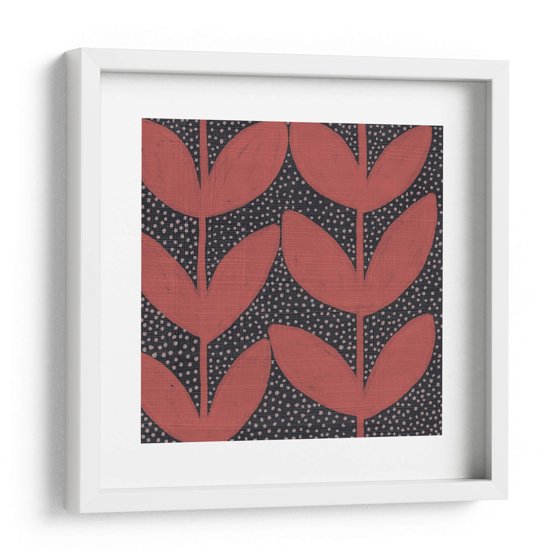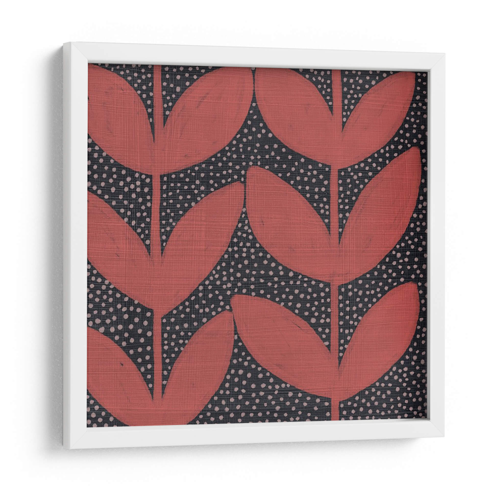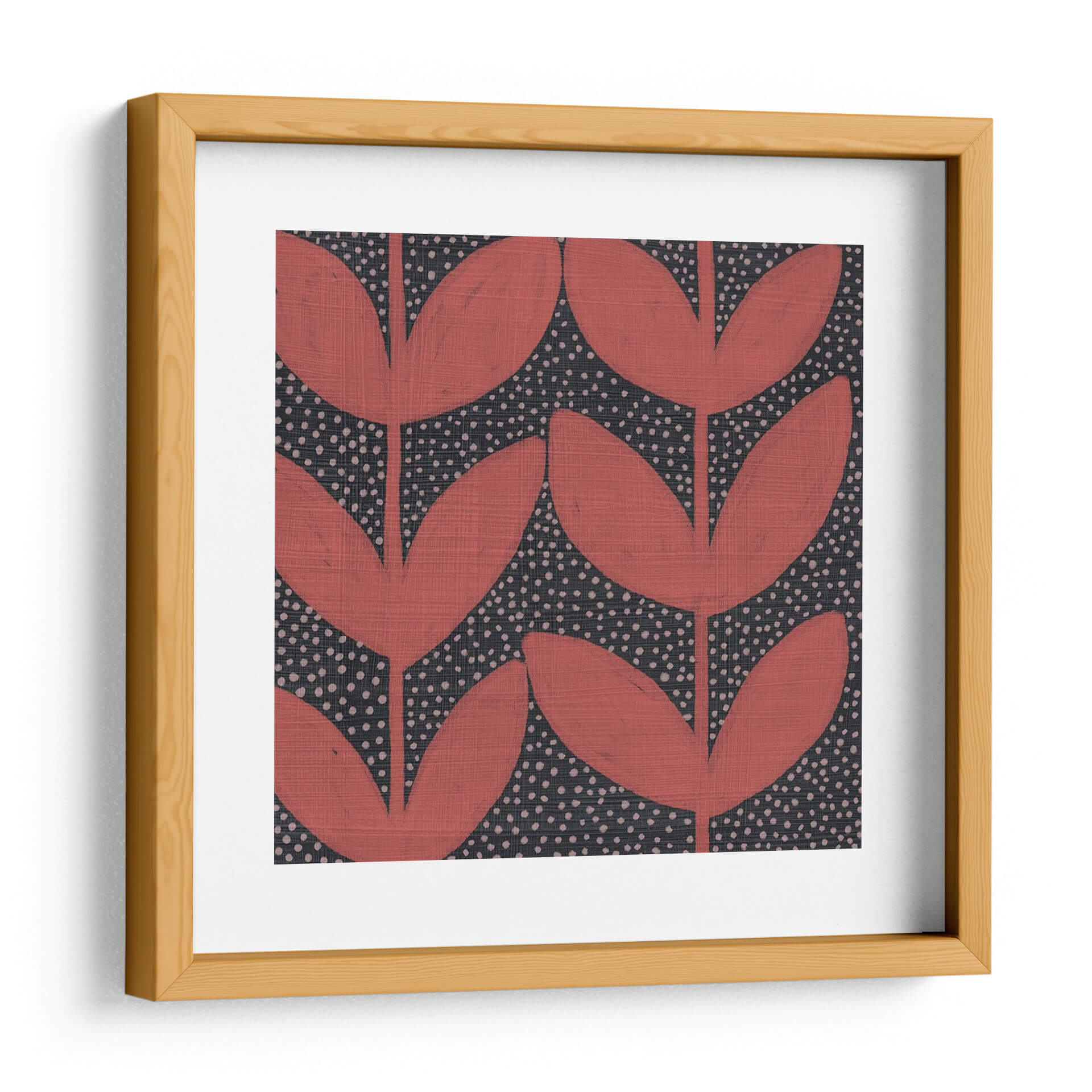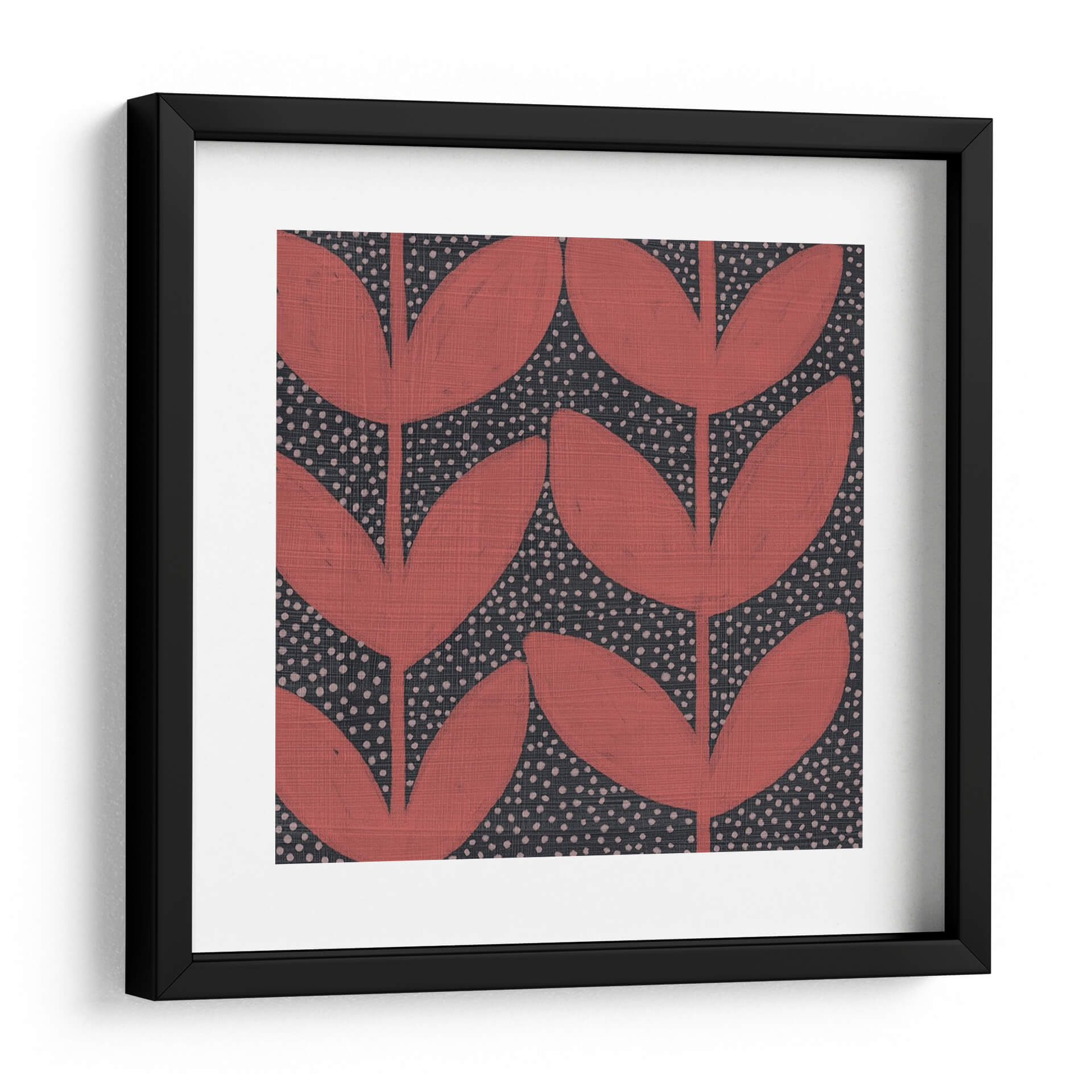 Transforma tu espacio con 'Pawpaw Iv', una cautivadora obra de arte que fusiona la elegancia del diseño moderno con un toque orgánico. Esta pieza presenta una composición audaz de grandes formas botánicas en un vibrante tono terracota, que se destacan sobre un fondo texturizado de intrincados puntos en tonos oscuros y rosados. La repetición rítmica de los elementos florales, junto con la sutil textura del fondo, crea una sensación de profundidad y dinamismo visual, invitando a la contemplación. La paleta de colores, con sus contrastes armoniosos entre el rojo apagado y el azul noche salpicado, aporta una atmósfera sofisticada y a la vez acogedora, ideal para salones, comedores o estudios que buscan un punto focal contemporáneo. 'Pawpaw Iv' es más que una decoración; es una expresión de arte moderno que añade carácter y un estilo distintivo a cualquier ambiente, resonando con quienes aprecian las formas abstractas y la belleza de la naturaleza reinterpretada.