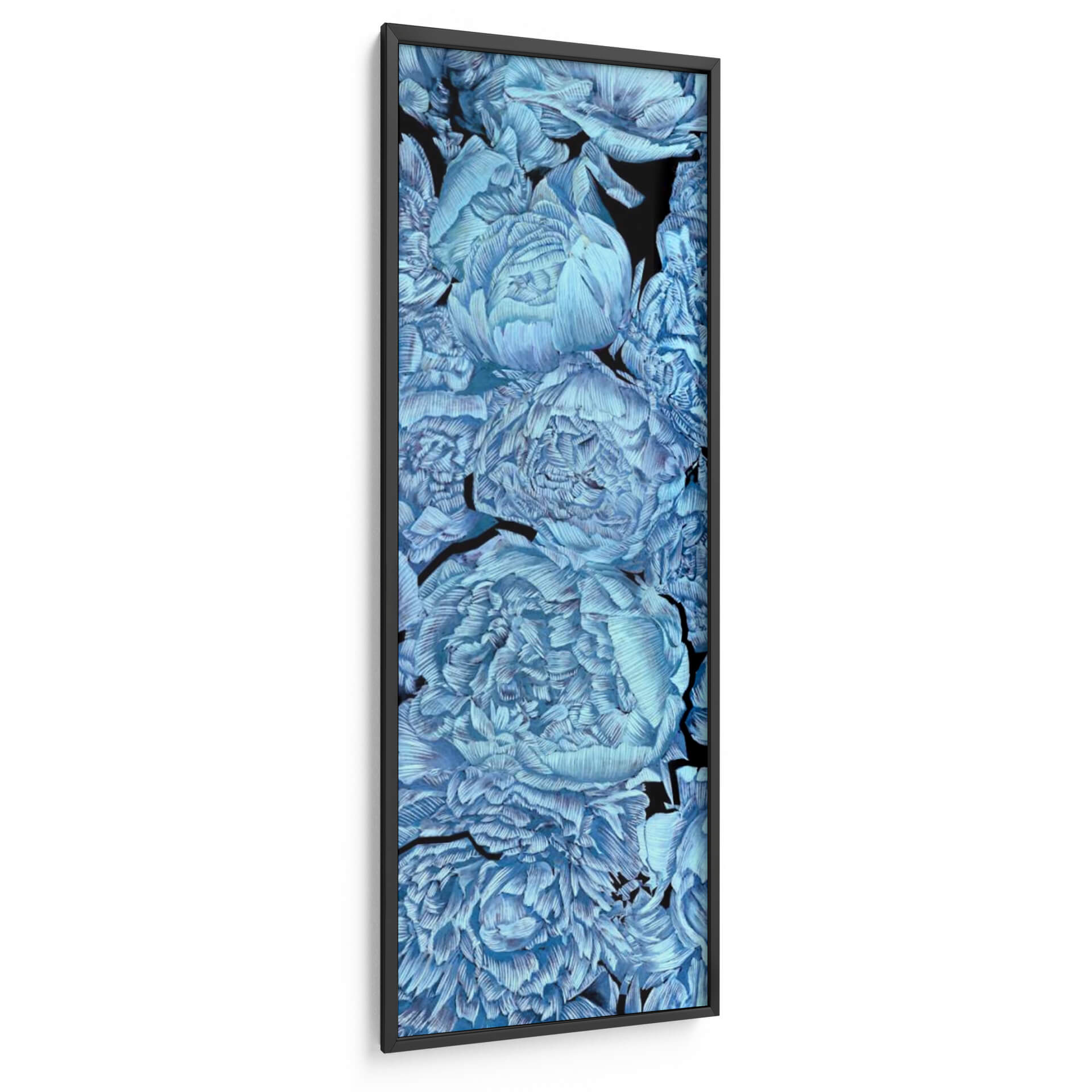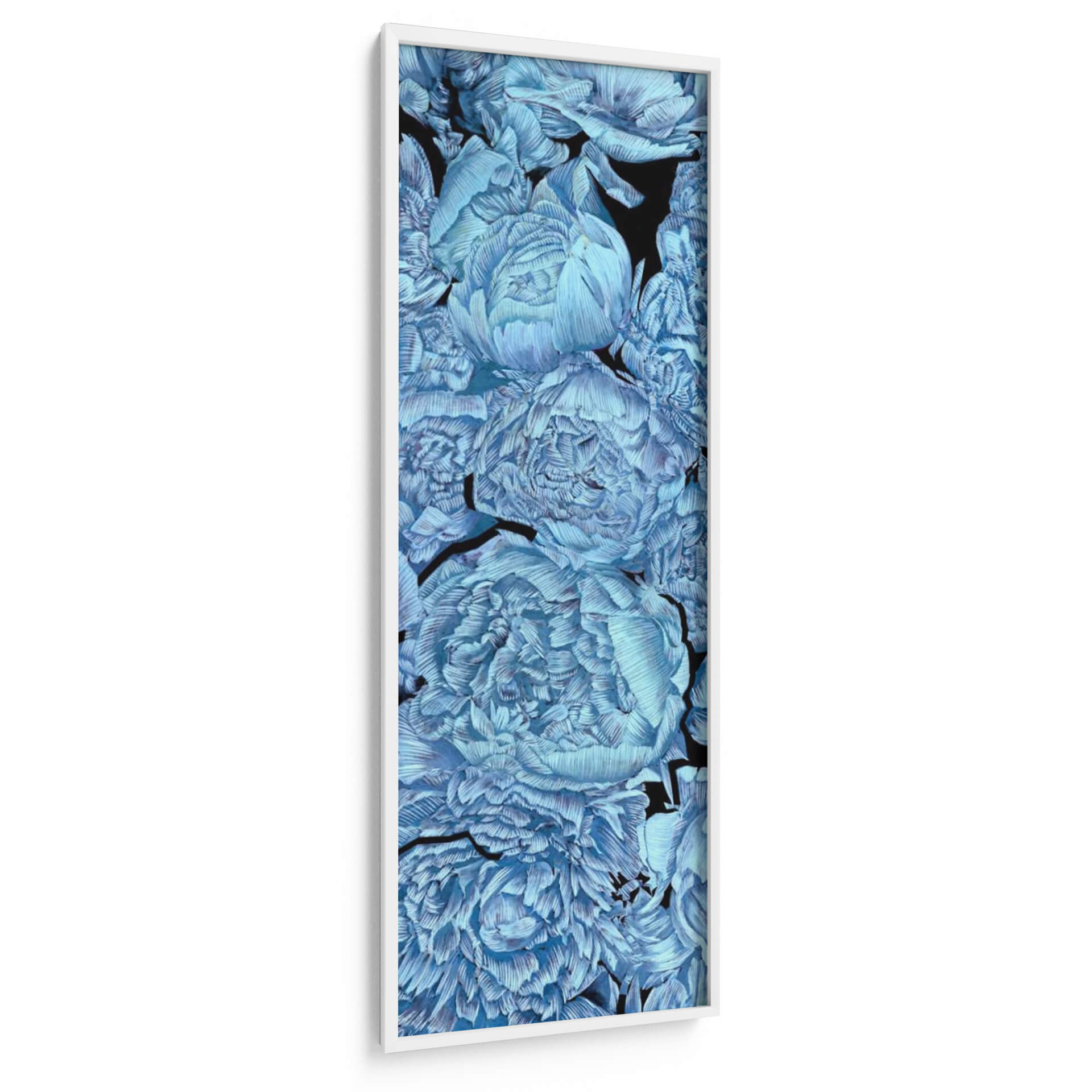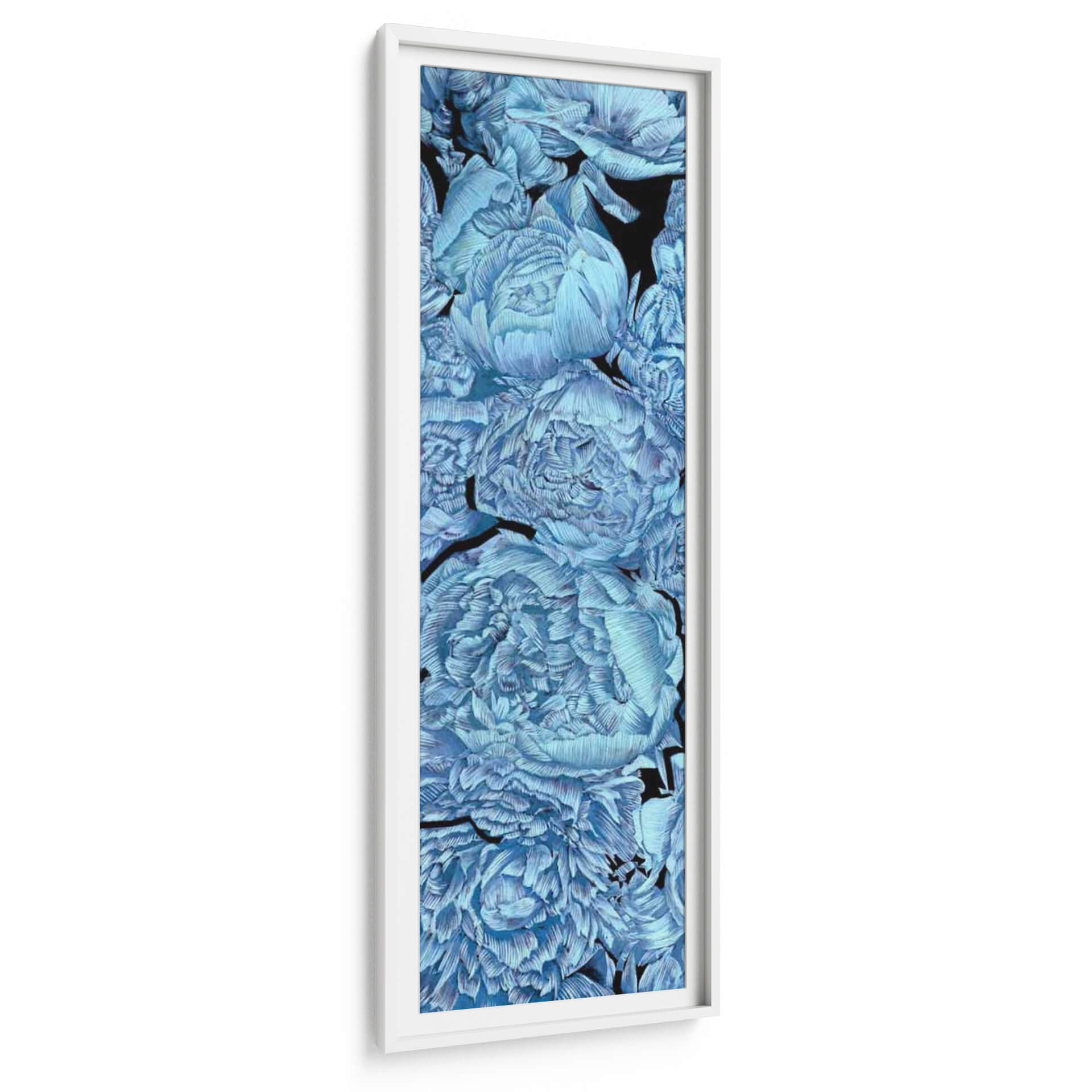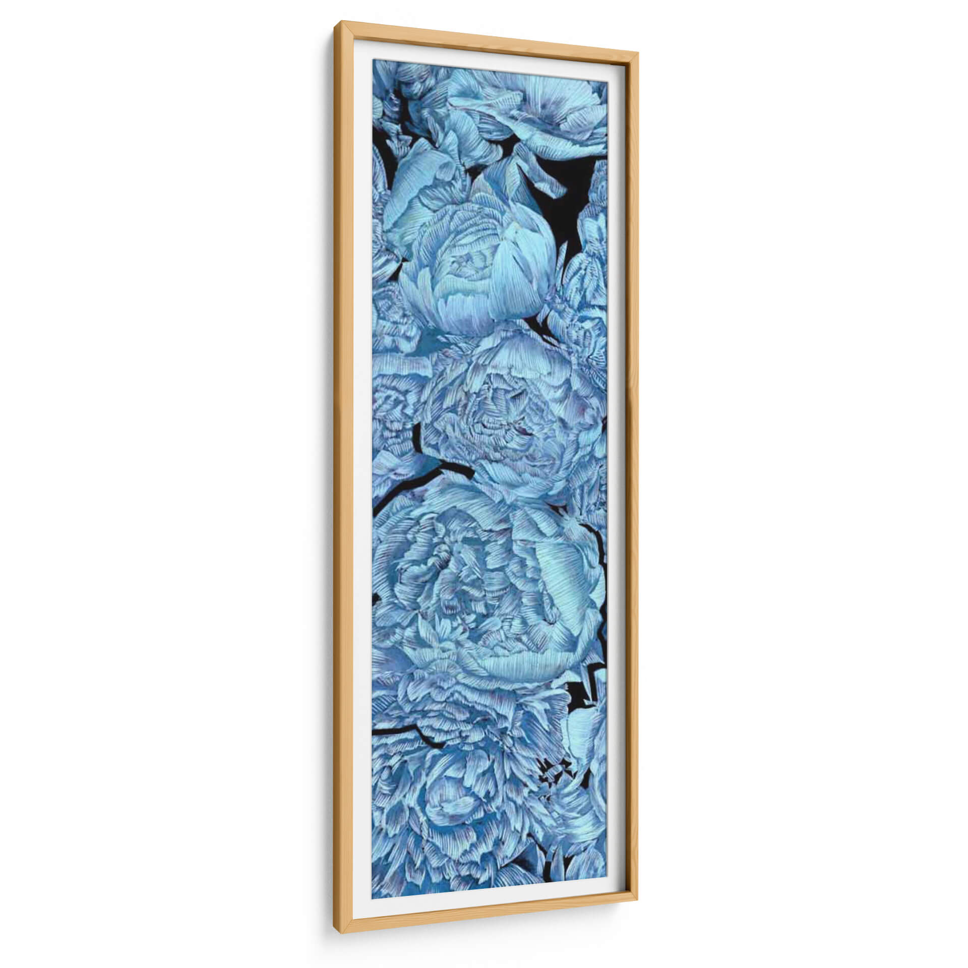Sumérgete en la delicadeza y el misterio de "Peonies Azules II", una obra de arte contemporáneo de Melissa Wang que redefine la belleza floral. Este cuadro decorativo presenta una explosión de peonías en vibrantes tonos de azul, capturadas con un detalle exquisito que resalta la textura sedosa de sus pétalos y la profundidad de su forma. El contraste dramático con el fondo negro profundo acentúa la luminosidad de las flores, creando una atmósfera cautivadora y sofisticada. La técnica detallada evoca una sensación de realismo fantástico, transformando un tema clásico en una pieza moderna y evocadora. Ideal para espacios que buscan un toque de elegancia atemporal y un matiz de serenidad, "Peonies Azules II" es perfecto para salas de estar, dormitorios o estudios que desean añadir un punto focal de color y textura. Deja que la intensidad del azul y la complejidad de la composición floral aporten vida y carácter a tu decoración. Esta pieza es una invitación a contemplar la naturaleza en su máxima expresión, embelleciendo tu hogar con arte que inspira y fascina.