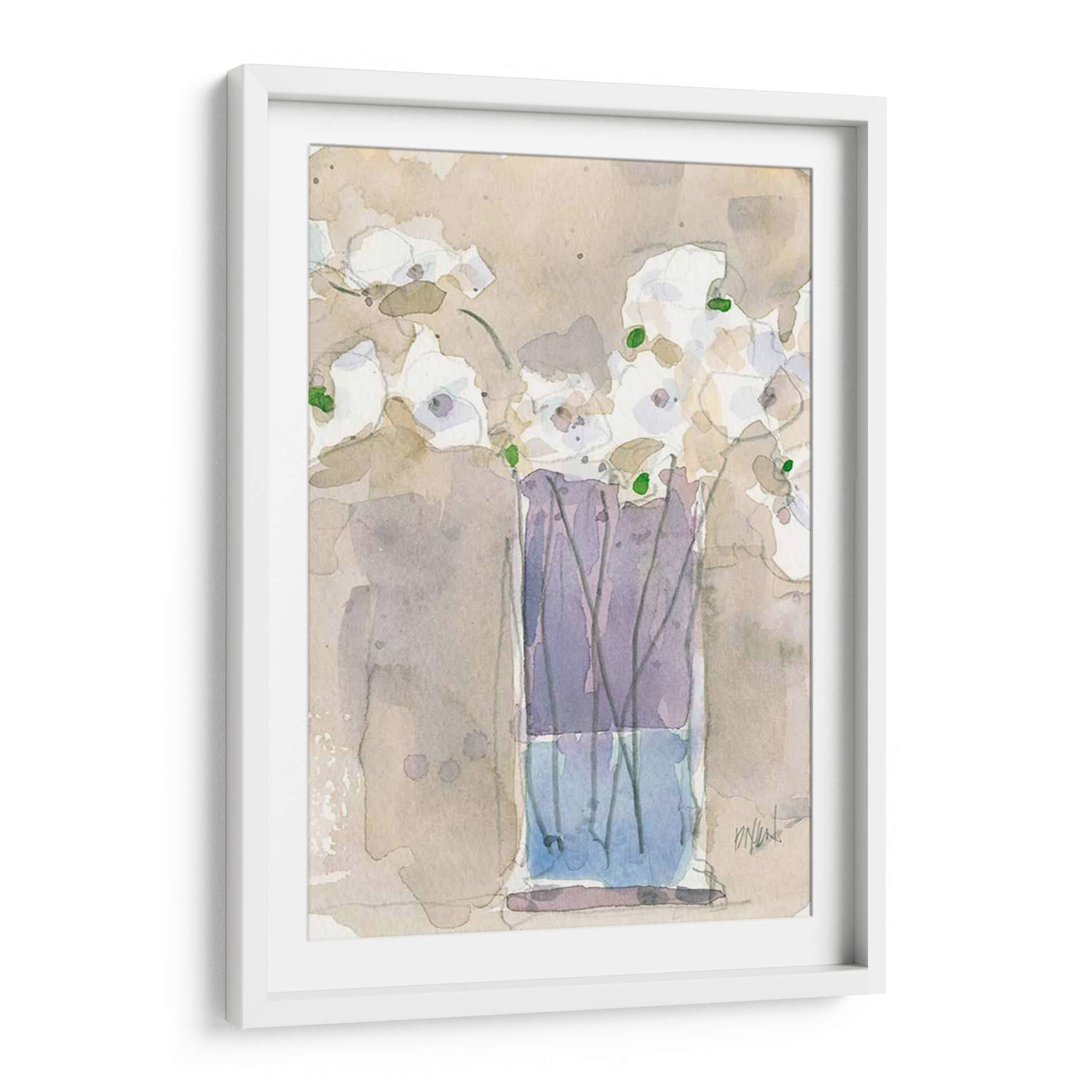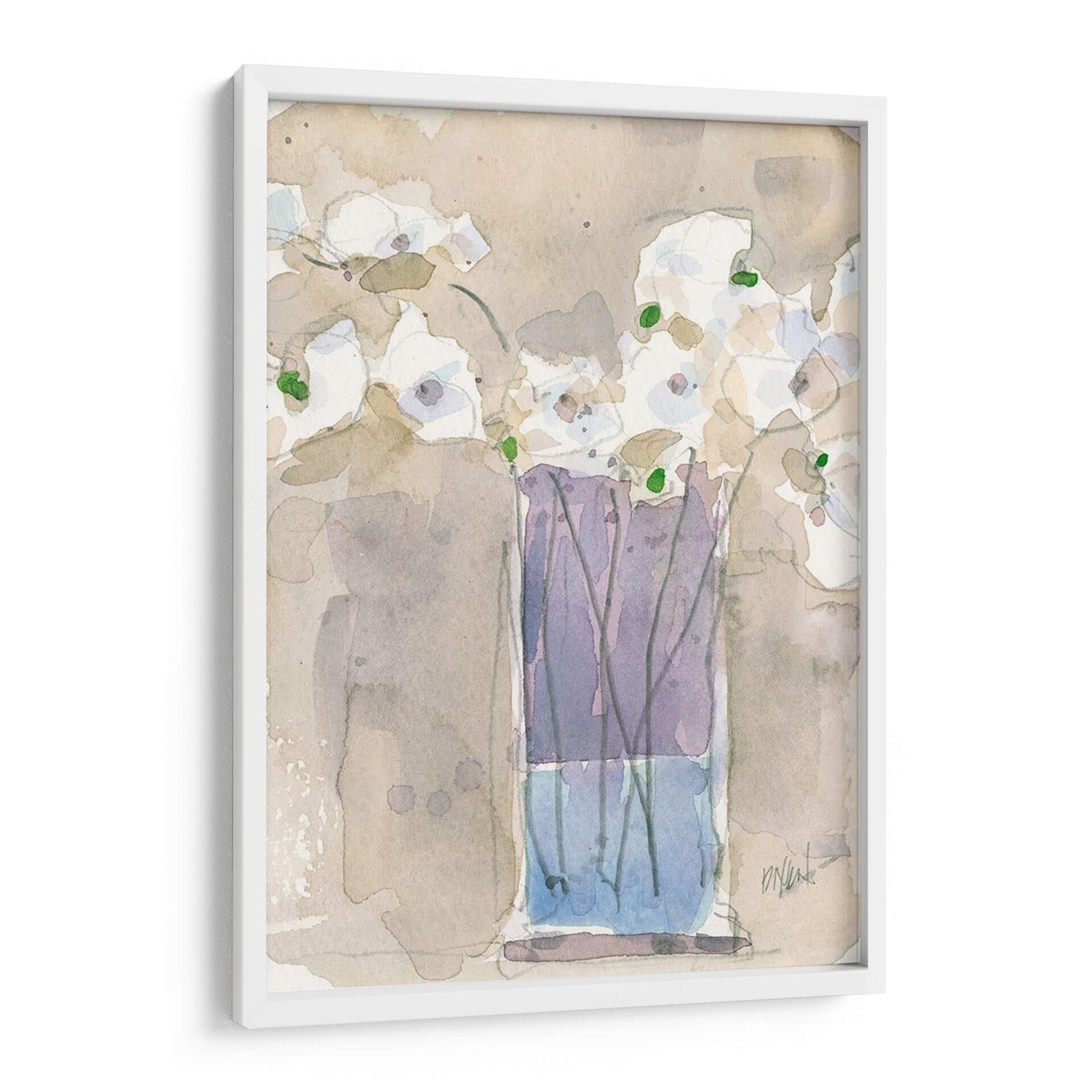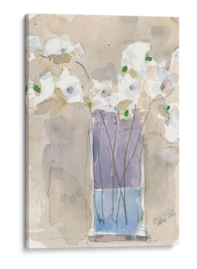 Aporta una delicada elegancia a tu espacio con "Pequeño Jarrón I", una cautivadora obra de arte que captura la esencia de la naturaleza con una sensibilidad moderna. El artista Samuel Dixon nos presenta una composición etérea donde flores blancas translúcidas y sutiles toques de verde emergen de un jarrón estilizado en tonos lavanda y azul agua. La técnica de acuarela, con sus pinceladas sueltas y las manchas de color que fluyen, crea una atmósfera de calma y serenidad, casi como un suspiro visual. Los tonos tierra y grises neutros del fondo complementan la delicadeza de las flores, permitiendo que la pieza respire y se integre armoniosamente en cualquier decoración. Este cuadro decorativo es ideal para quienes buscan añadir un toque de sofisticación discreta a su hogar u oficina. Imagina esta obra aportando paz a tu dormitorio, un acento de dulzura a tu sala de estar o una nota de inspiración tranquila en tu estudio. "Pequeño Jarrón I" no es solo una imagen, es una invitación a la contemplación y a la apreciación de la belleza sutil en el arte contemporáneo.