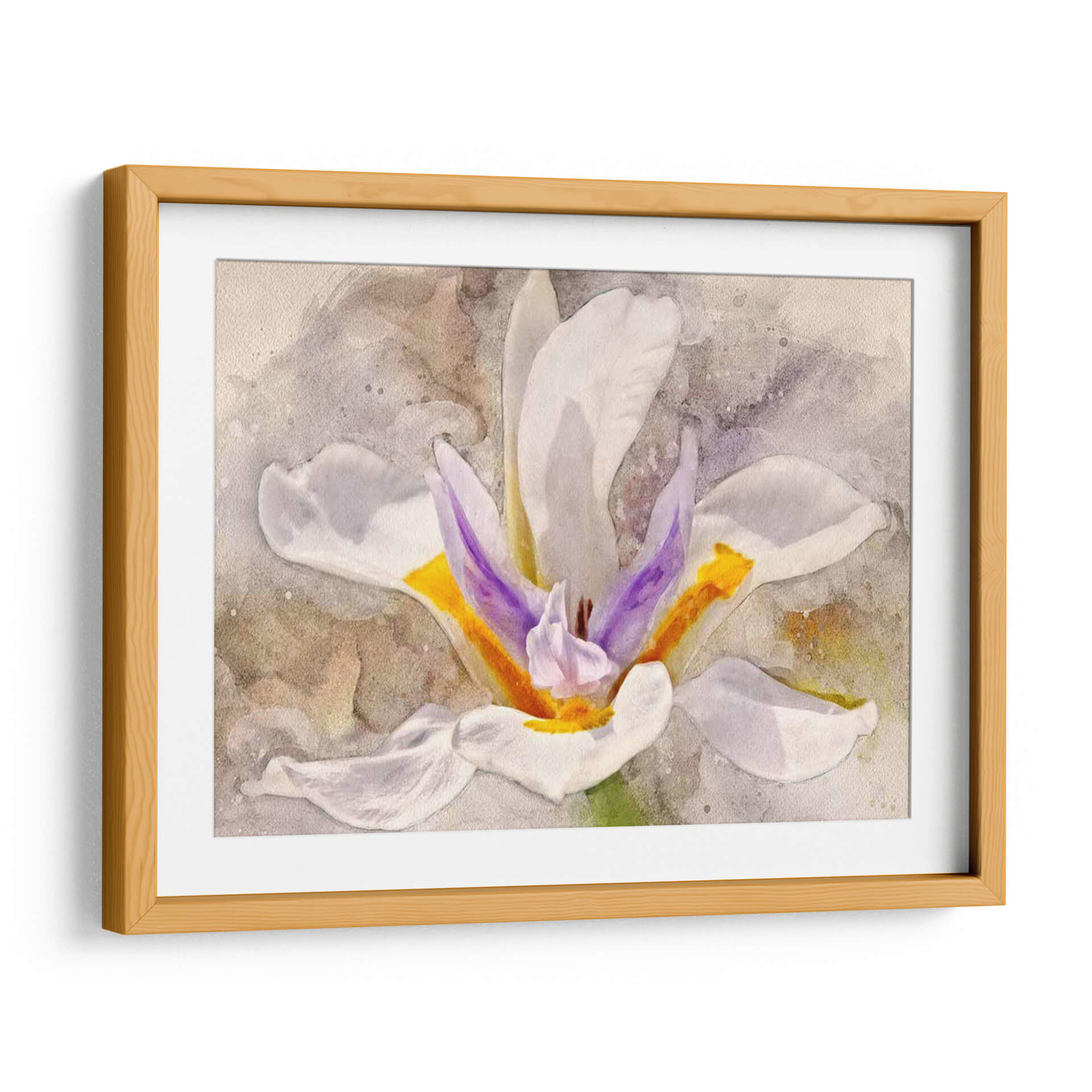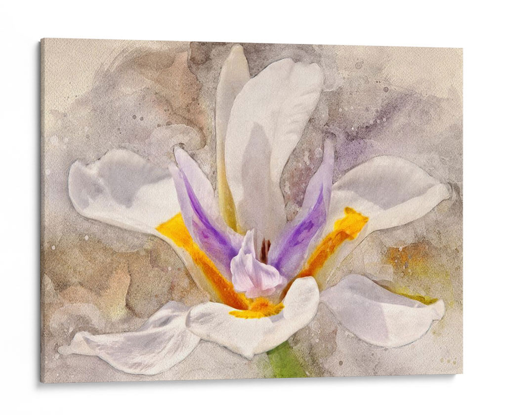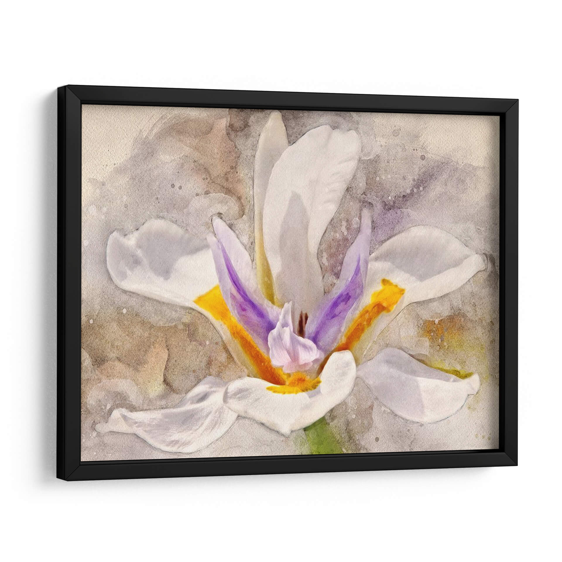 Embellece tu espacio con el cuadro decorativo "Pétalos Juguetones I", una obra de arte vibrante de Leda Robertson que captura la delicadeza de una flor en pleno esplendor. Esta pieza, realizada en un estilo que evoca la técnica de acuarela, presenta una composición centrada en un lirio o iris de pétalos blancos y etéreos, realzados por toques juguetones de púrpura y amarillo en su centro. El fondo texturizado en tonos tierra y grises suaves aporta profundidad y un contraste sutil, permitiendo que la flor sea la protagonista indiscutible. La atmósfera que emana esta obra es de serenidad y optimismo, con una energía sutil que invita a la contemplación. "Pétalos Juguetones I" es ideal para añadir un toque de naturaleza y color a cualquier habitación, desde la sala de estar hasta un dormitorio o incluso una oficina, transformando cualquier pared en un jardín interior lleno de vida y elegancia. Su versatilidad cromática y su diseño orgánico la convierten en una elección perfecta para interiores modernos, clásicos o bohemios, aportando sofisticación y un aire fresco a tu decoración.