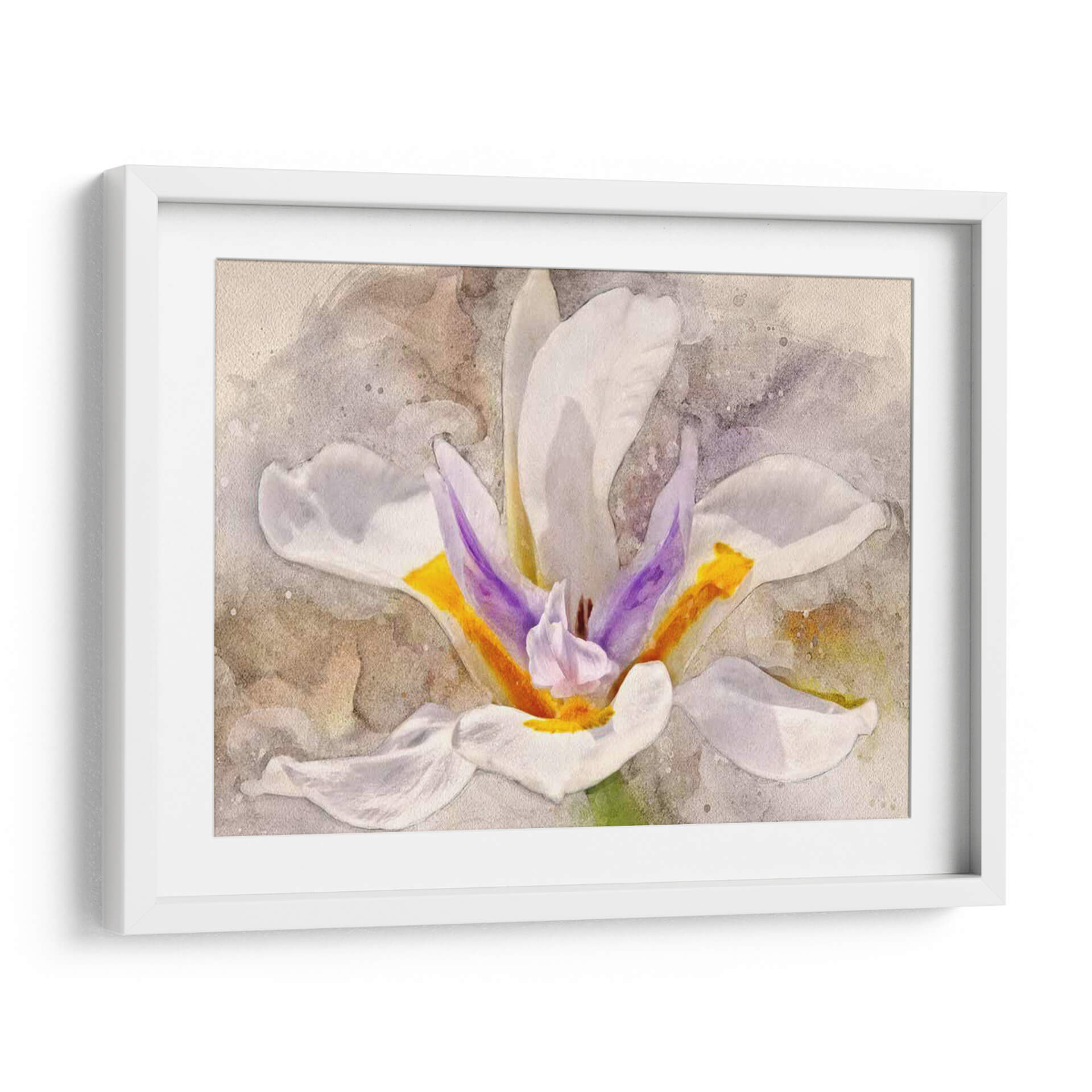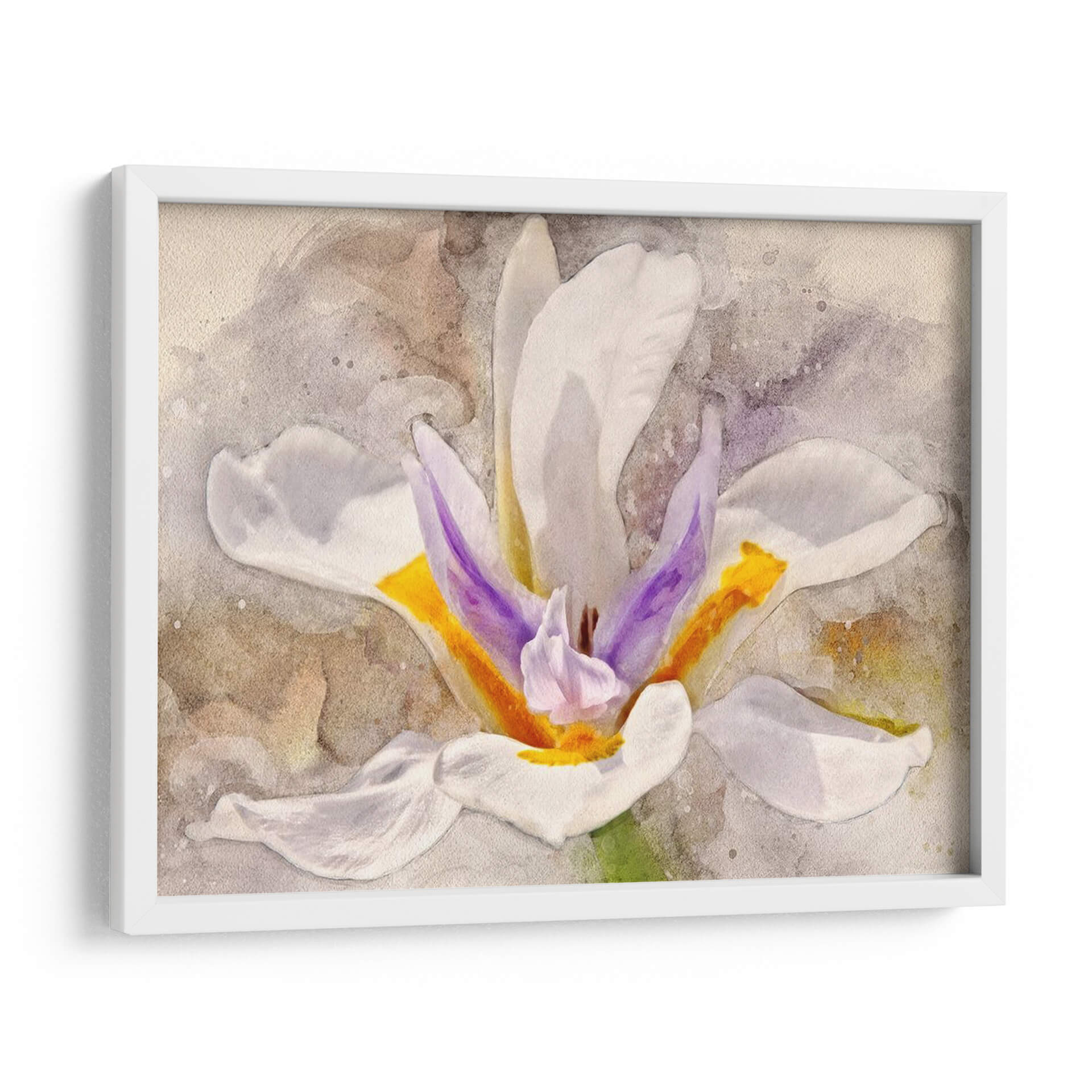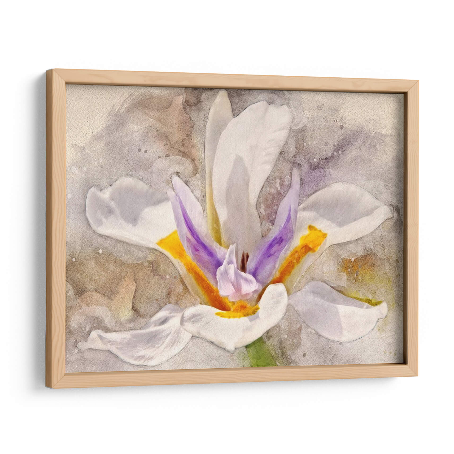 Embellece tu espacio con el cuadro decorativo "Pétalos Juguetones I", una obra de arte vibrante de Leda Robertson que captura la delicadeza de una flor en pleno esplendor. Esta pieza, realizada en un estilo que evoca la técnica de acuarela, presenta una composición centrada en un lirio o iris de pétalos blancos y etéreos, realzados por toques juguetones de púrpura y amarillo en su centro. El fondo texturizado en tonos tierra y grises suaves aporta profundidad y un contraste sutil, permitiendo que la flor sea la protagonista indiscutible. La atmósfera que emana esta obra es de serenidad y optimismo, con una energía sutil que invita a la contemplación. "Pétalos Juguetones I" es ideal para añadir un toque de naturaleza y color a cualquier habitación, desde la sala de estar hasta un dormitorio o incluso una oficina, transformando cualquier pared en un jardín interior lleno de vida y elegancia. Su versatilidad cromática y su diseño orgánico la convierten en una elección perfecta para interiores modernos, clásicos o bohemios, aportando sofisticación y un aire fresco a tu decoración.