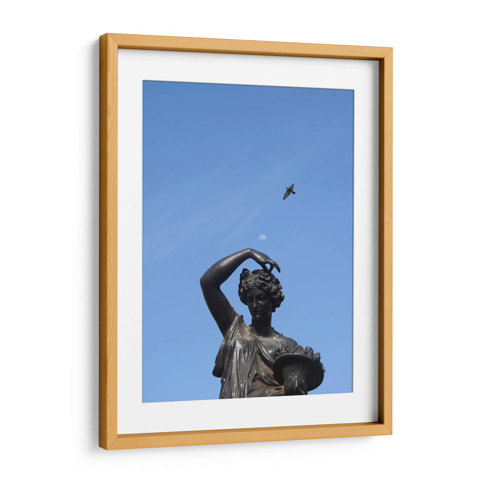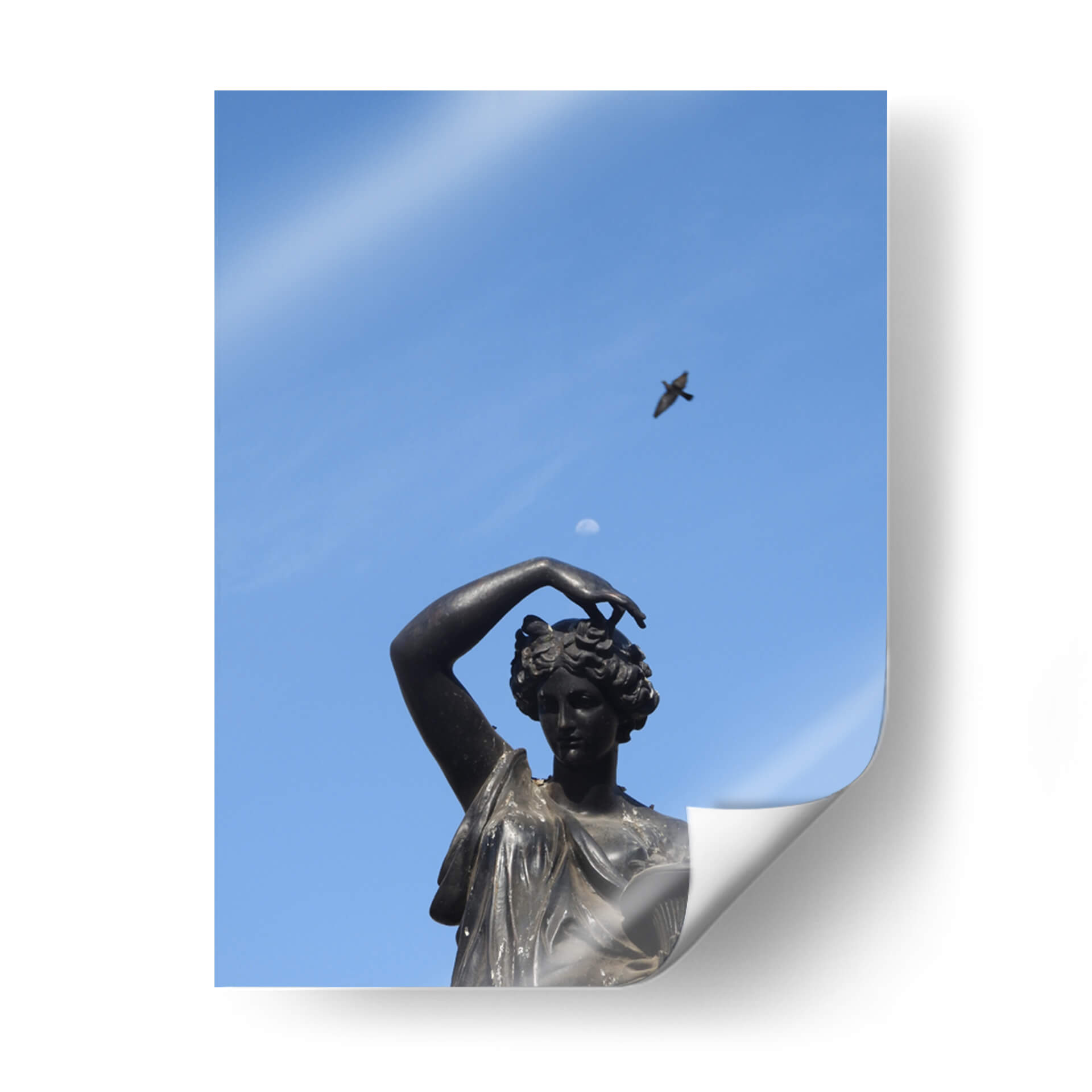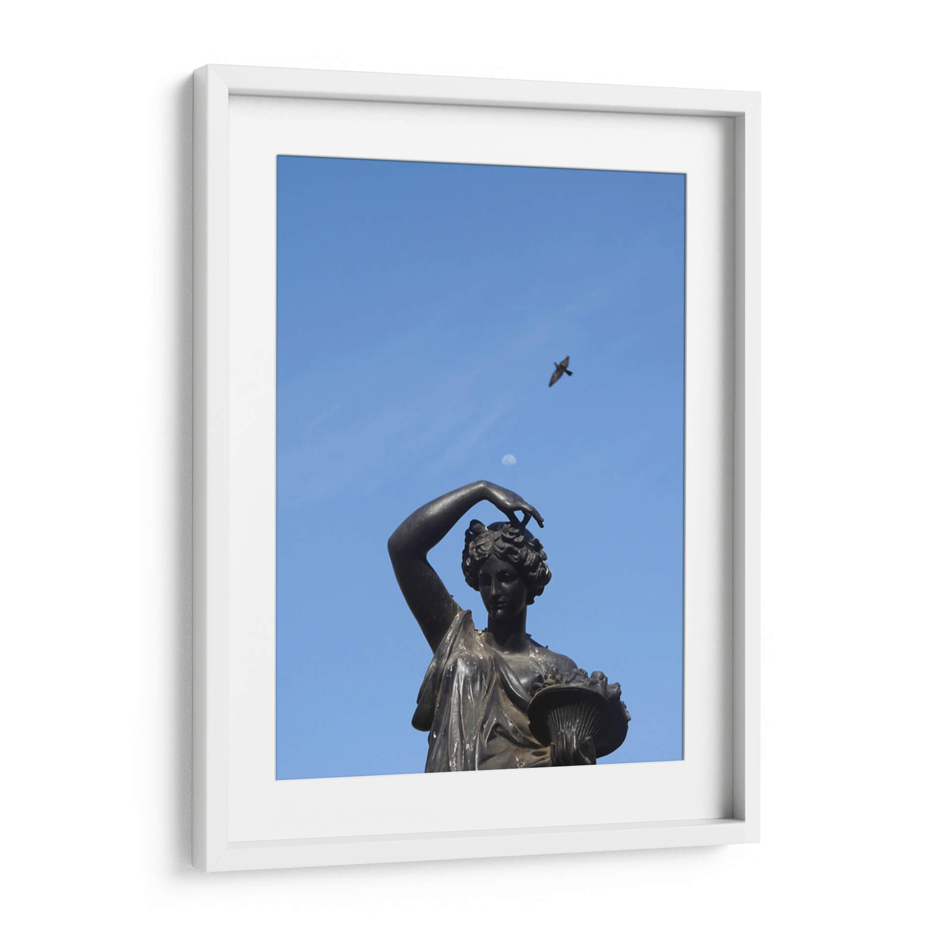 Captura la esencia de la contemplación con "Piensa", una obra de Hugo Segura que evoca serenidad y reflexión. Este cuadro decorativo presenta una imponente escultura de bronce, con una mujer de pose serena bajo un cielo azul despejado. La delicadeza de sus gestos, la forma en que su mano acaricia su cabello y sostiene una cesta, transmite una profunda introspección. La paleta de colores se centra en el contraste entre la figura oscura y el vibrante azul del cielo, acentuado por la presencia sutil de la luna y un pájaro en vuelo, elementos que añaden un toque de ensueño y libertad. El estilo realista de la escultura, con sus detalles clásicos, contrasta con la composición moderna y minimalista de la imagen, creando una pieza visualmente cautivadora. "Piensa" es ideal para espacios que buscan un punto focal de calma y elegancia, como una sala de estar, un estudio o un dormitorio, aportando un aire de sofisticación atemporal. Transforma tu hogar en un santuario de paz y arte con esta pieza única que invita a la pausa y a la reflexión en medio del ajetreo diario.