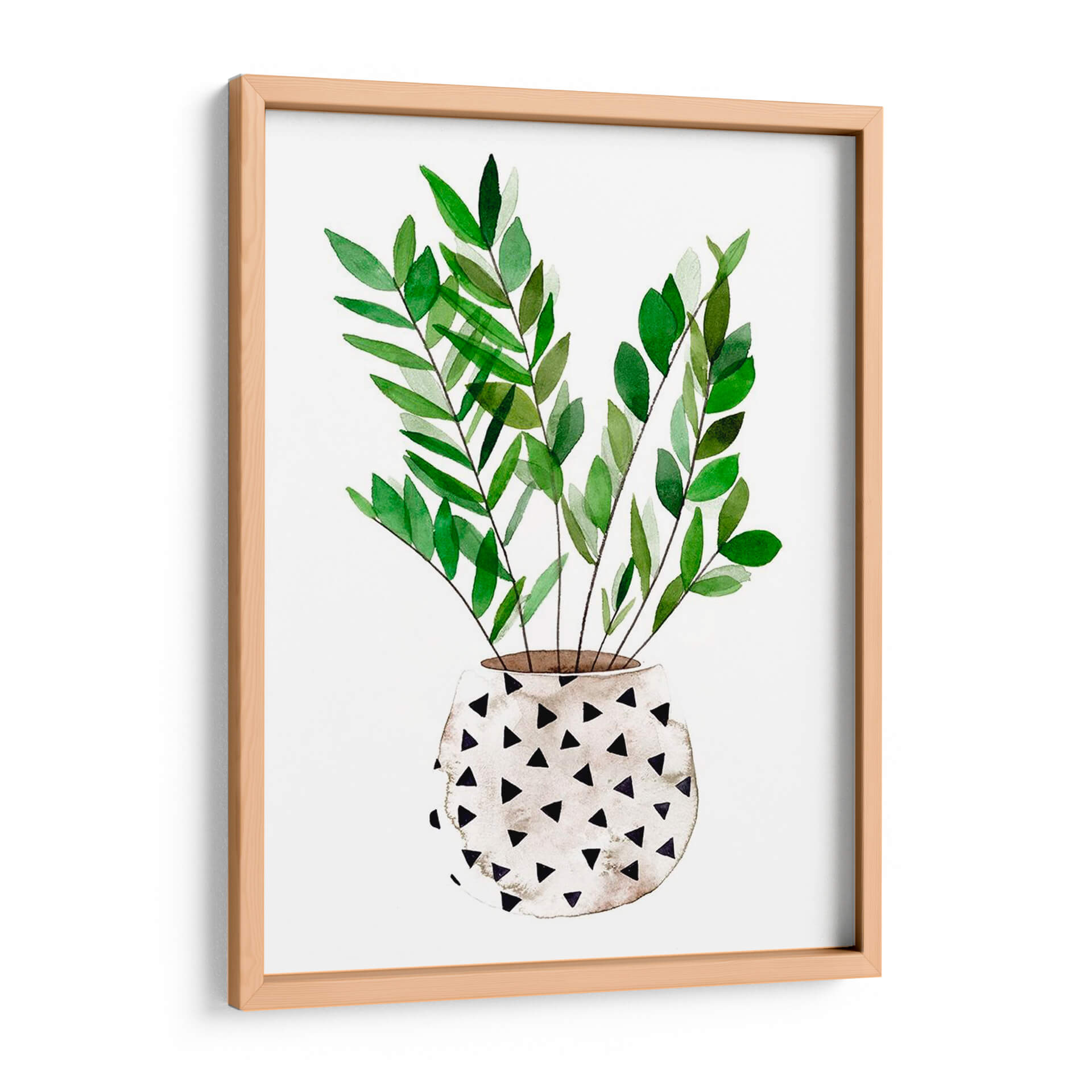 Aporta un soplo de aire fresco y serenidad a tu hogar con el cuadro decorativo "Planta En Una Olla Iii" de Melissa Wang. Esta encantadora obra de arte captura la delicadeza de la naturaleza a través de una cuidada acuarela, presentando un vibrante ramo de hojas verdes que emergen de una maceta con un diseño geométrico moderno en blanco y negro. La paleta de verdes, que varía desde tonos intensos hasta translúcidos, evoca una sensación de vitalidad y crecimiento, mientras que el fondo blanco puro resalta la frescura y la simplicidad de la composición. La maceta, con su patrón de triángulos negros sobre un fondo texturizado, añade un toque contemporáneo y sofisticado que equilibra la organicidad de las hojas. Este cuadro es ideal para quienes buscan infundir calma y un toque de vida vegetal en espacios como la sala de estar, el dormitorio o una oficina, complementando a la perfección decoraciones de estilo escandinavo, minimalista o bohemio. La técnica de acuarela otorga a la pieza una ligereza y transparencia únicas, invitando a la contemplación y creando un ambiente de paz y armonía. "Planta En Una Olla Iii" no es solo una decoración, es una ventana a la tranquilidad natural, un recordatorio de la belleza simple que nos rodea, lista para transformar tu pared en un oasis de calma y estilo.