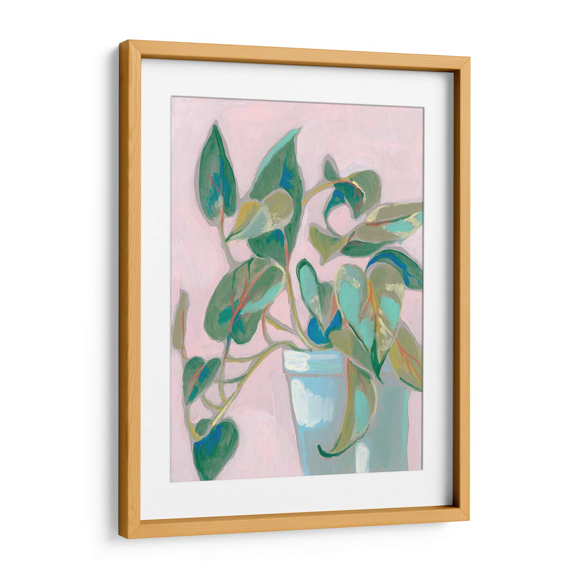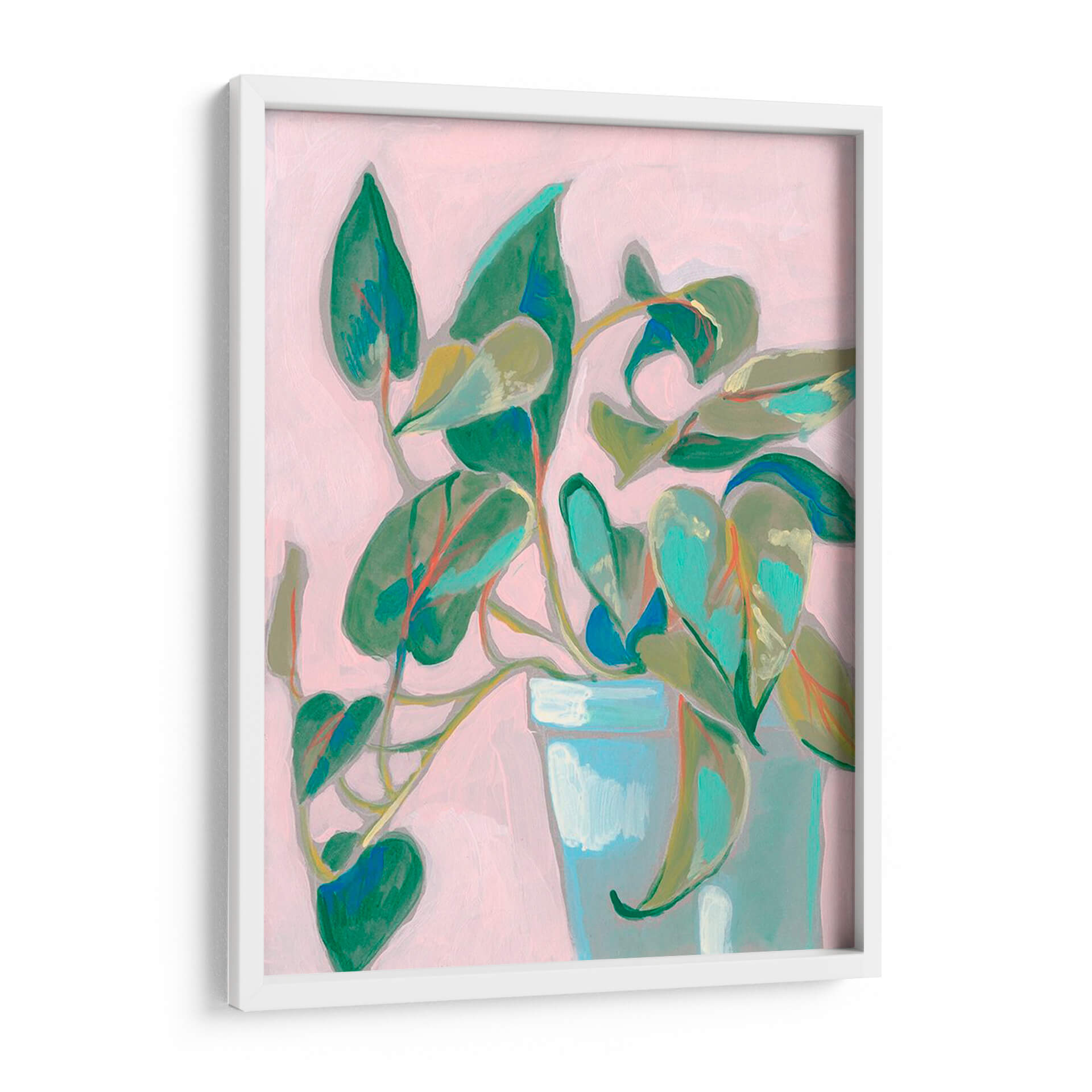 Sumérgete en la serenidad botánica con "Planta Peculiar I", una obra de arte contemporáneo que captura la delicadeza de la naturaleza en un entorno moderno. Jennifer Goldberger nos presenta una composición vibrante donde las hojas de una planta de interior cobran vida con trazos expresivos y una paleta de colores que combina verdes intensos, toques de turquesa y sutiles matices rojizos, todo sobre un fondo suavemente rosado que aporta calidez y luminosidad. Este cuadro decorativo es una invitación a la calma, ideal para transformar cualquier rincón de tu hogar o espacio de trabajo en un oasis de tranquilidad y estilo. Su estilo pictórico, que roza lo abstracto pero mantiene la reconocibilidad de la forma, añade un toque de sofisticación y originalidad. Las pinceladas visibles y la riqueza de texturas sugieren una pieza con profundidad y carácter. "Planta Peculiar I" no es solo una representación de vegetación; es una pieza que evoca paz, frescura y una conexión íntima con el mundo natural, perfecta para aquellos que buscan infundir armonía y belleza en su decoración interior, creando un ambiente acogedor y lleno de vida.