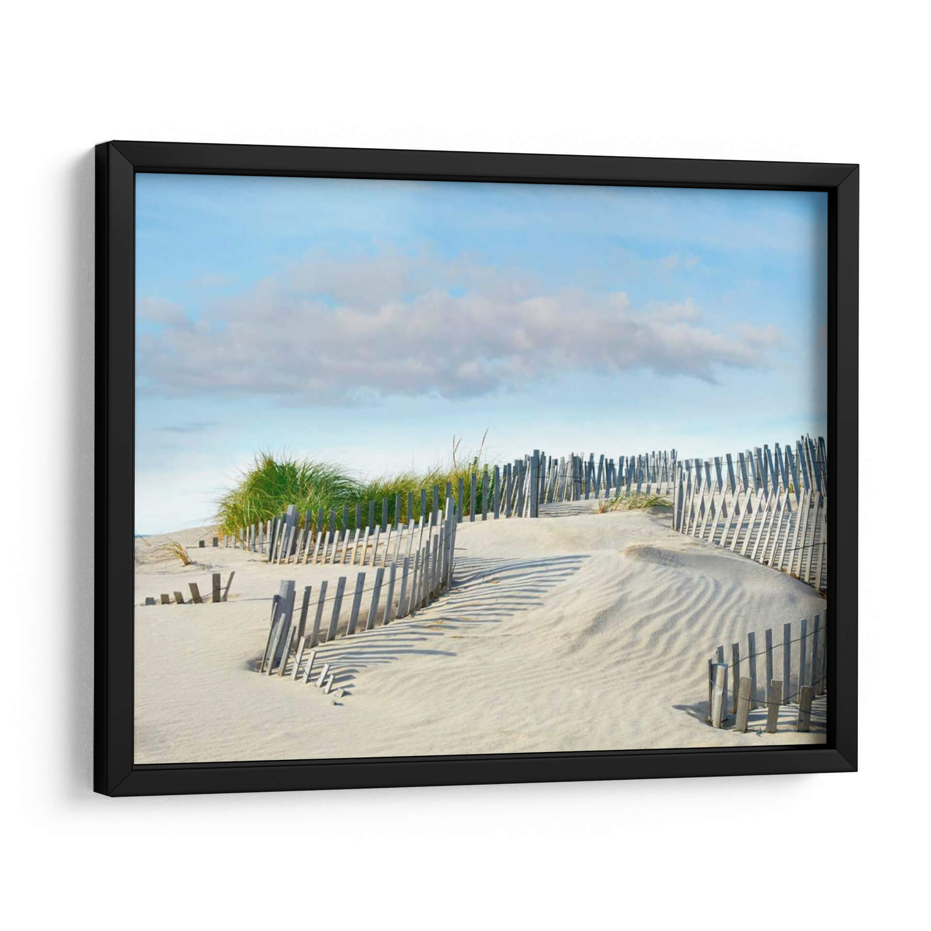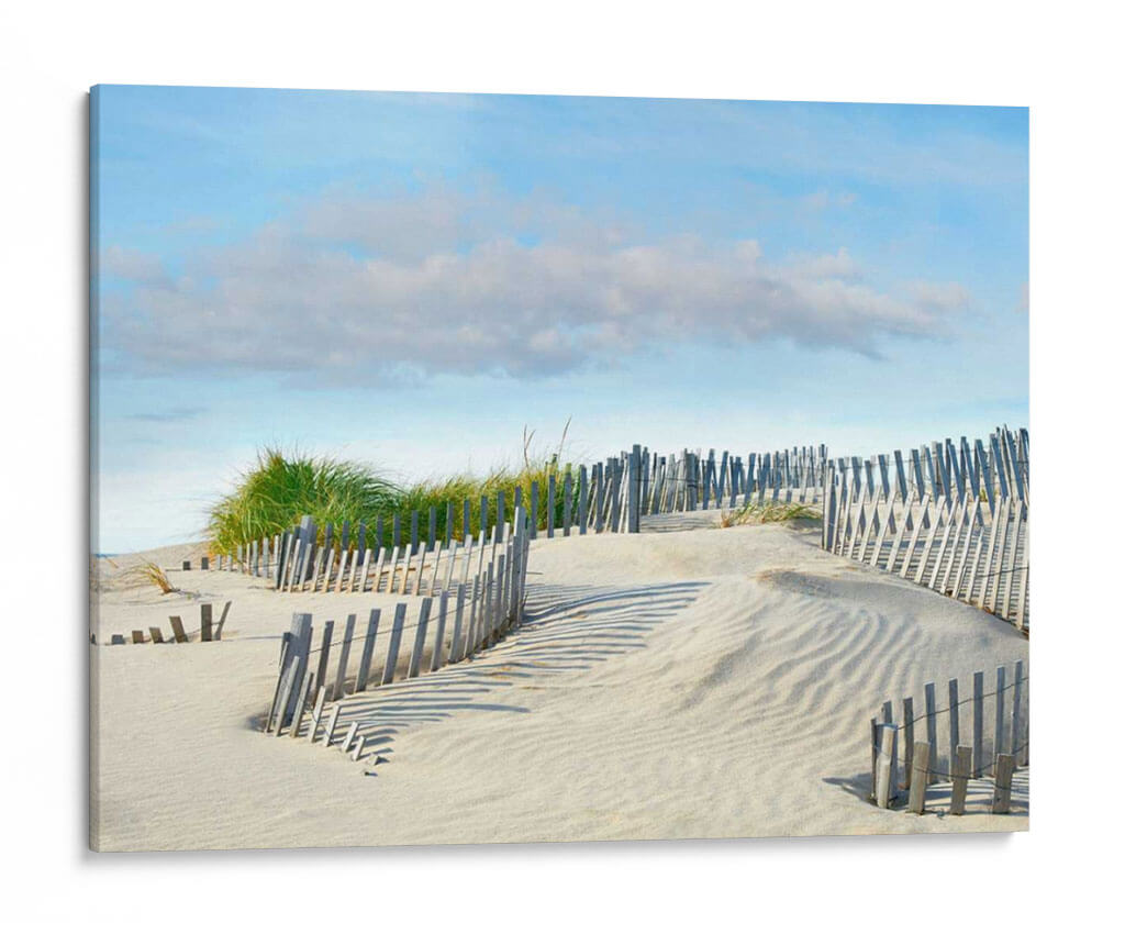 Sumérgete en la serenidad costera con "Playascape III", una obra de James McLoughlin que captura la esencia de un día tranquilo en la playa. Este cuadro decorativo te transportará a dunas doradas bordeadas por rústicas vallas de madera, guiándote a través de un paisaje bañado por la suave luz del sol. La paleta de colores, dominada por los tonos cálidos de la arena y el vibrante verde de la vegetación, se complementa a la perfección con un cielo azul claro salpicado de nubes algodonosas, creando una atmósfera de paz y evasión. La técnica fotográfica captura la textura de la arena y el detalle de las vallas con una claridad que invita a la contemplación, mientras que la composición, con sus líneas curvas y la perspectiva que se adentra en el paisaje, genera una sensación de profundidad y descubrimiento. "Playascape III" es ideal para añadir un toque de naturaleza y calma a cualquier espacio, ya sea tu sala de estar, dormitorio o incluso una oficina, buscando crear un refugio visual que evoca la brisa marina y la tranquilidad del océano. Es una pieza que resonará con amantes de la fotografía de paisajes y aquellos que buscan una decoración de pared que inspire relajación y conexión con la naturaleza.