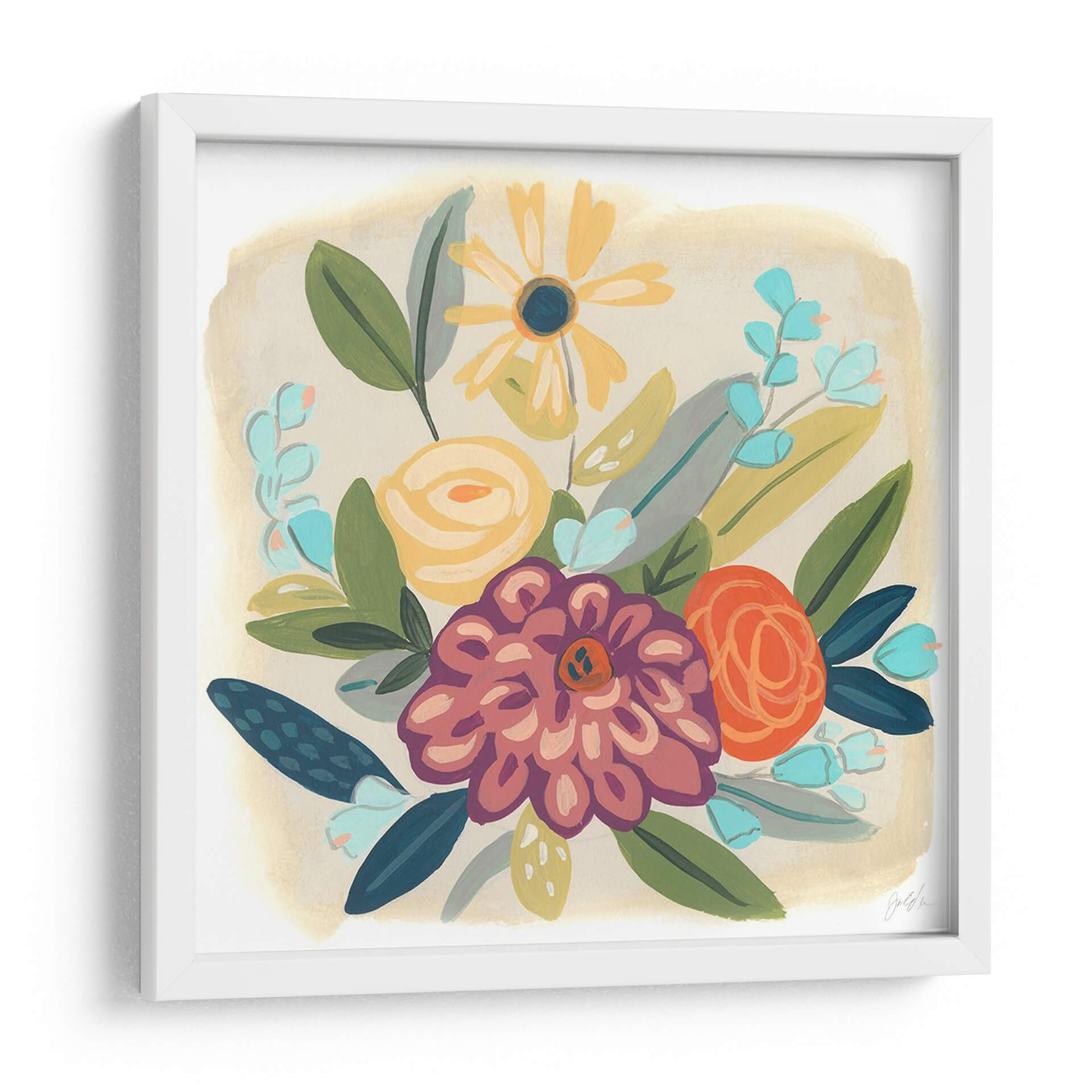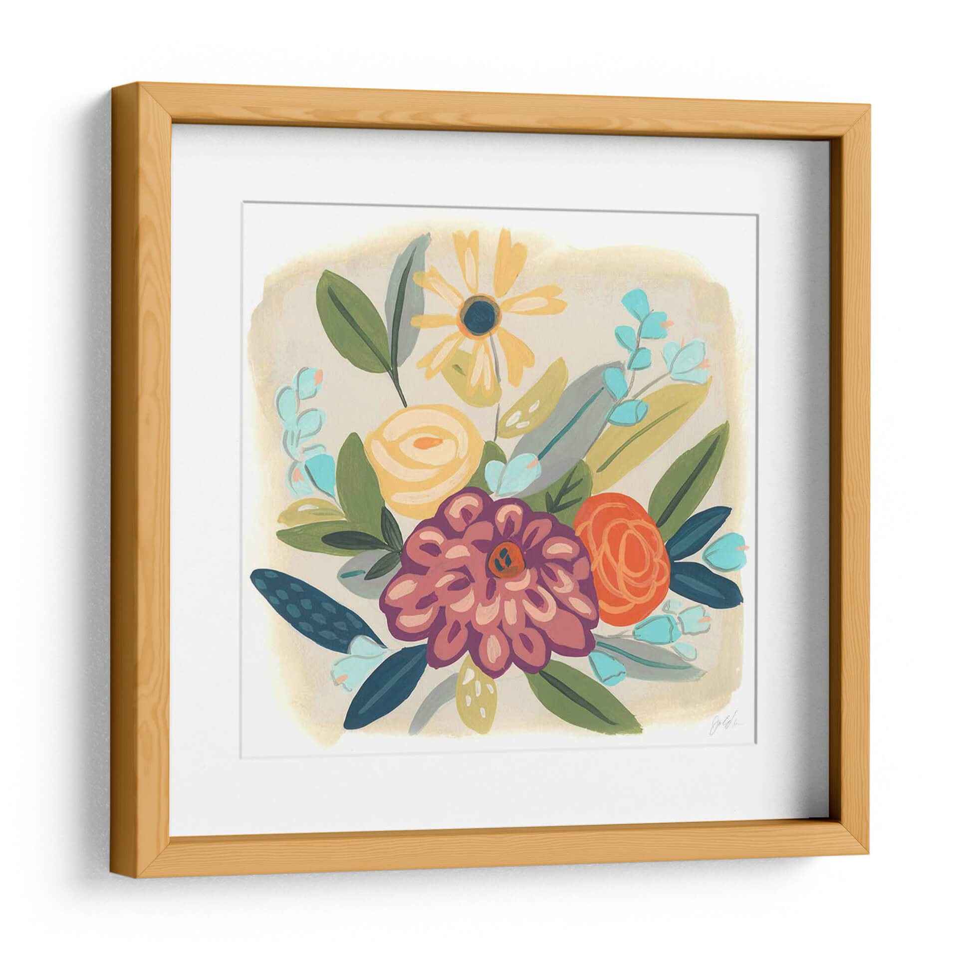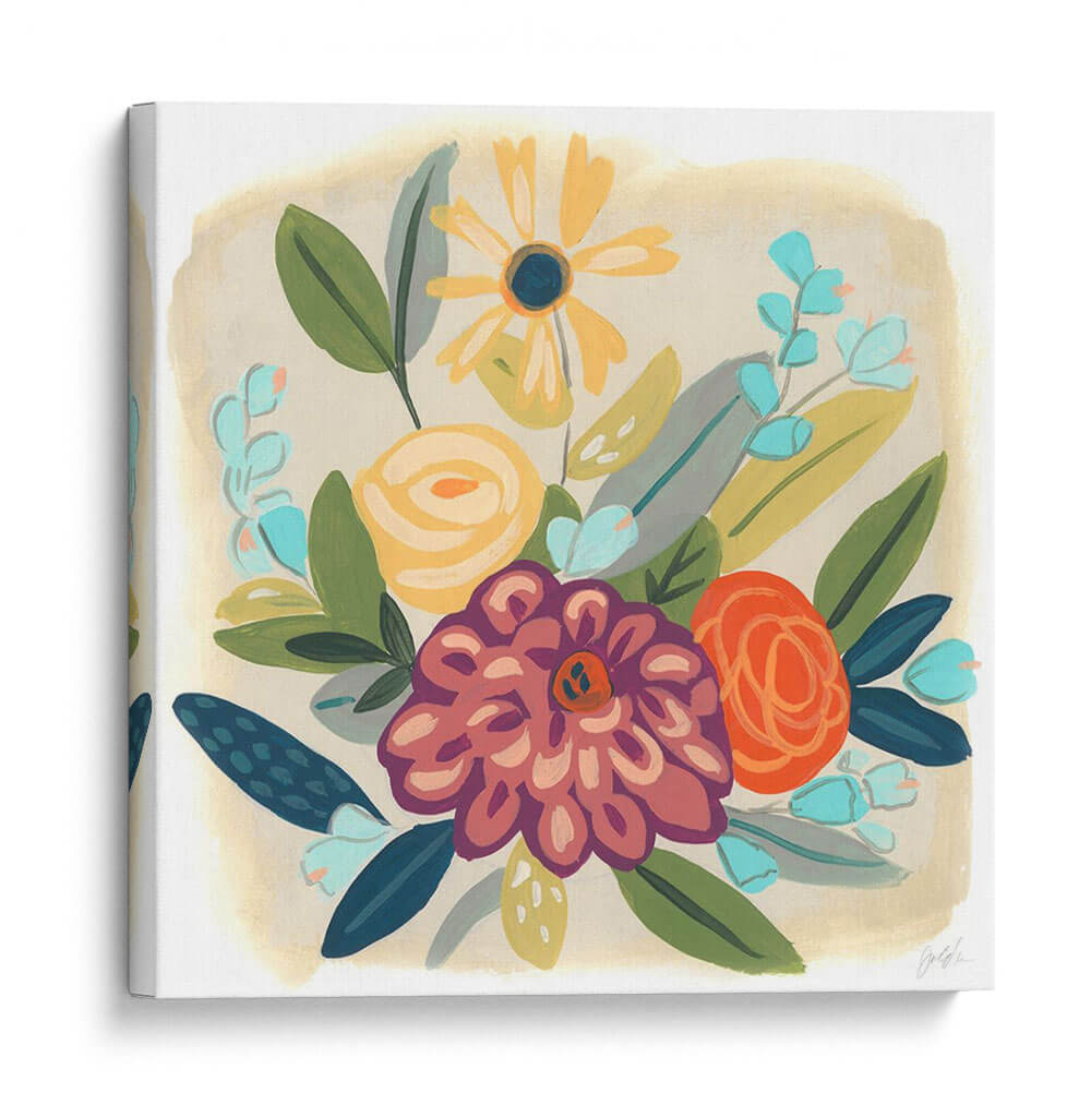 Sumérgete en la vibrante explosión de vida que ofrece 'Pop Posy IV', una obra de arte contemporáneo que captura la esencia de un jardín en plena floración con un estilo audaz y moderno. Este cuadro decorativo presenta un exuberante arreglo floral donde destacan las texturas y los colores vivos, con una paleta que combina profundos tonos magenta y naranjas encendidos con toques alegres de amarillo y delicados azules. Las formas de las flores y las hojas se presentan con un trazo suelto y expresivo, evocando una sensación de movimiento y energía. La composición central, rodeada por un suave halo de color neutro, atrae la mirada hacia el corazón de la pieza, creando un punto focal dinámico. Ideal para añadir un toque de color y optimismo a cualquier espacio, desde una sala de estar moderna hasta un rincón acogedor en un dormitorio o una oficina. 'Pop Posy IV' es más que una decoración; es una celebración de la naturaleza y la vitalidad, perfecta para quienes buscan infundir alegría y estilo contemporáneo en su hogar u oficina, convirtiéndose en un elemento inspirador y lleno de personalidad.