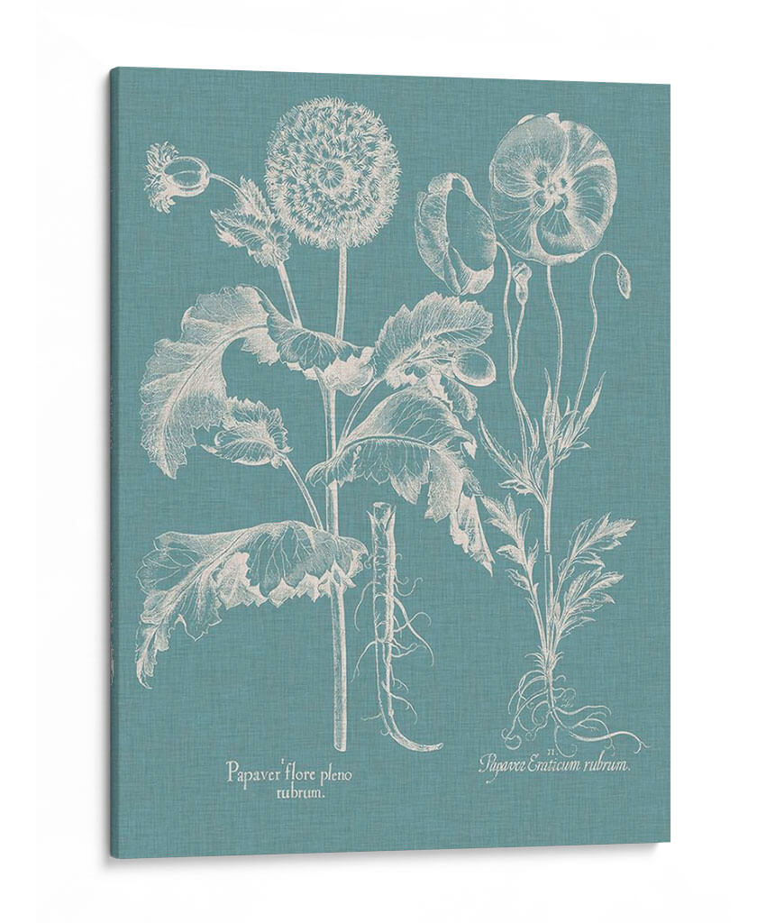 Embellece tu espacio con el exquisito cuadro decorativo 'Poppies Besler Ii', una obra maestra inspirada en las detalladas ilustraciones botánicas del siglo XVII. Este lienzo presenta un estudio meticuloso de amapolas, capturando la delicadeza de sus pétalos y la complejidad de sus tallos y raíces con un trazo fino y elegante. La paleta de colores, dominada por un sereno fondo azul verdoso y un diseño en blanco y negro, aporta una sensación de calma y sofisticación, haciendo de esta pieza un complemento perfecto para cualquier ambiente. Ideal para añadir un toque de naturaleza y arte clásico a tu sala de estar, dormitorio u oficina. Su estilo botánico vintage evoca una conexión con la historia y la ciencia, ofreciendo una decoración de pared que es tanto educativa como estéticamente agradable. Transforma tu hogar en una galería personal con este cuadro que combina la precisión científica con la belleza artística.