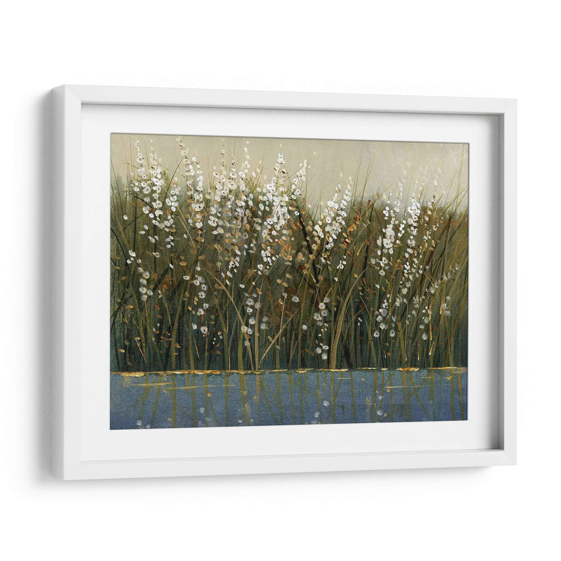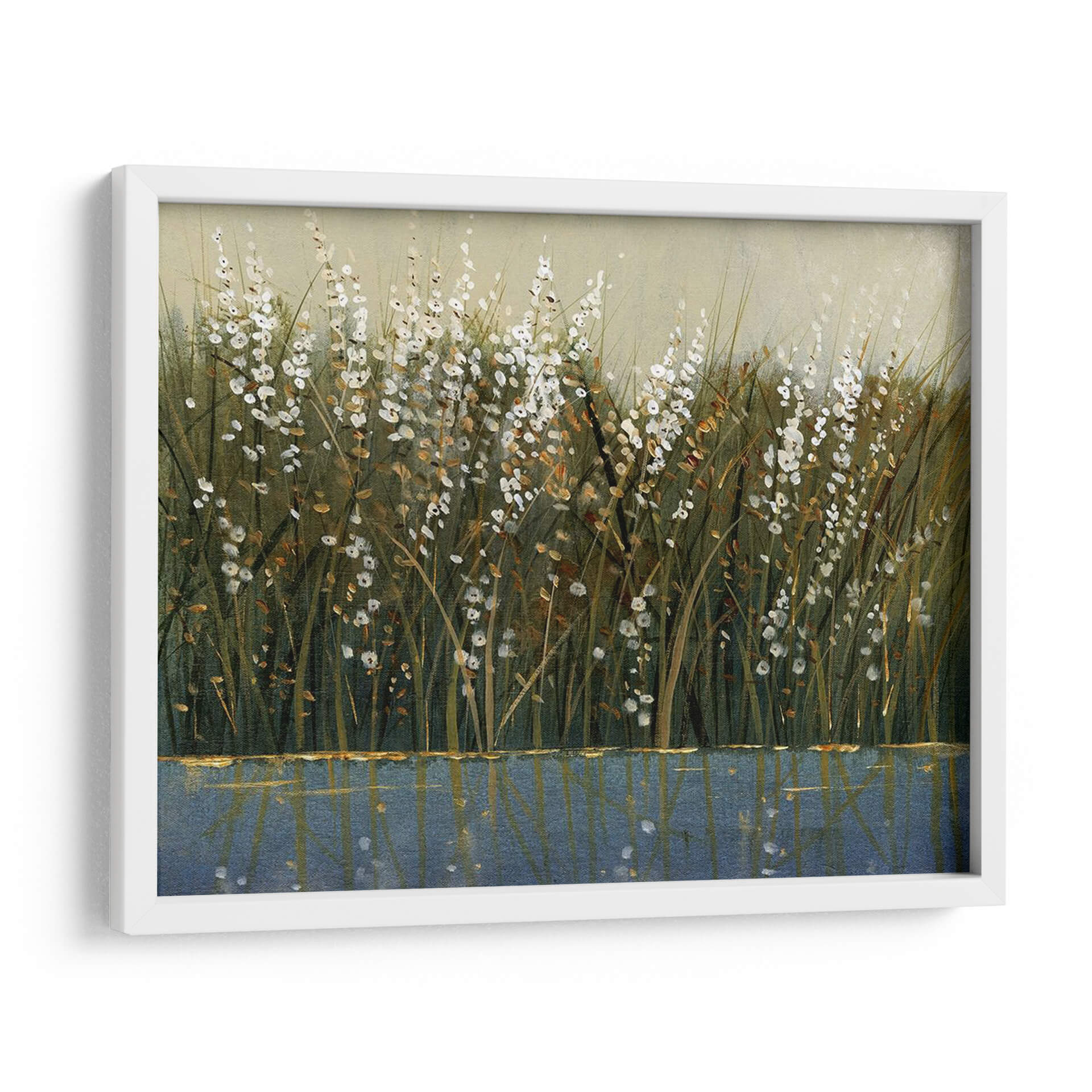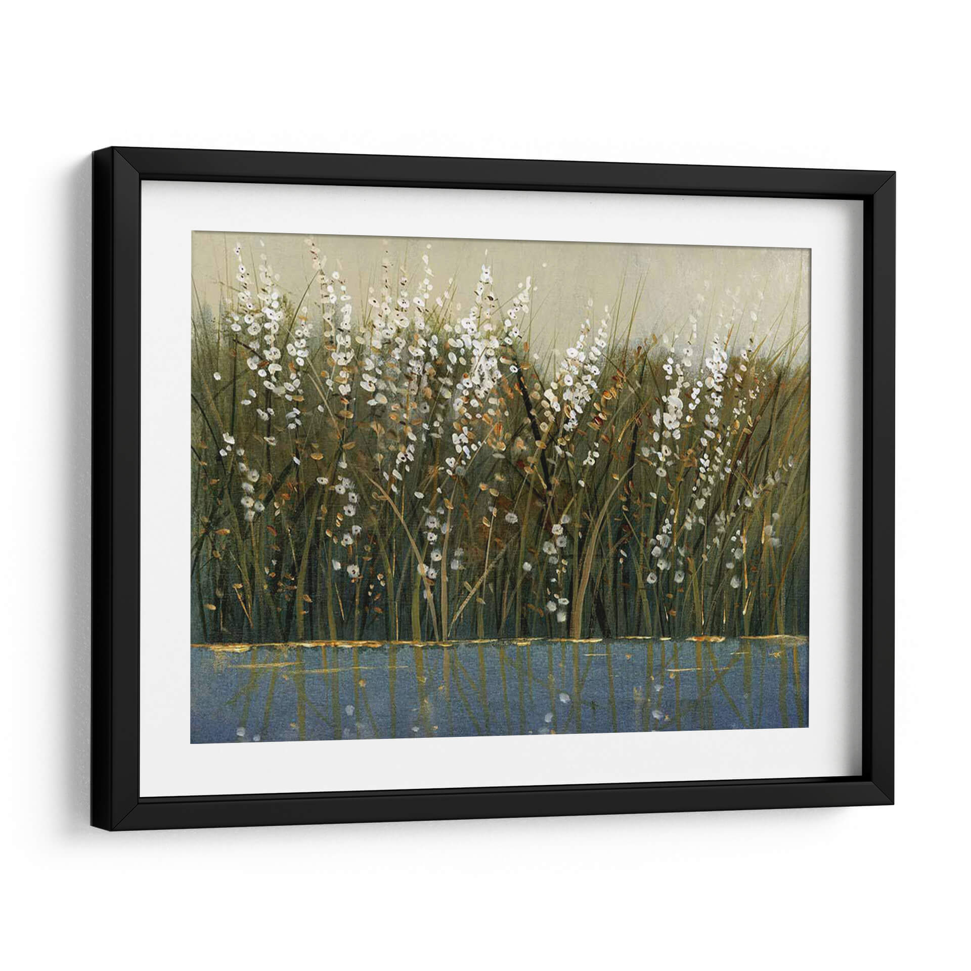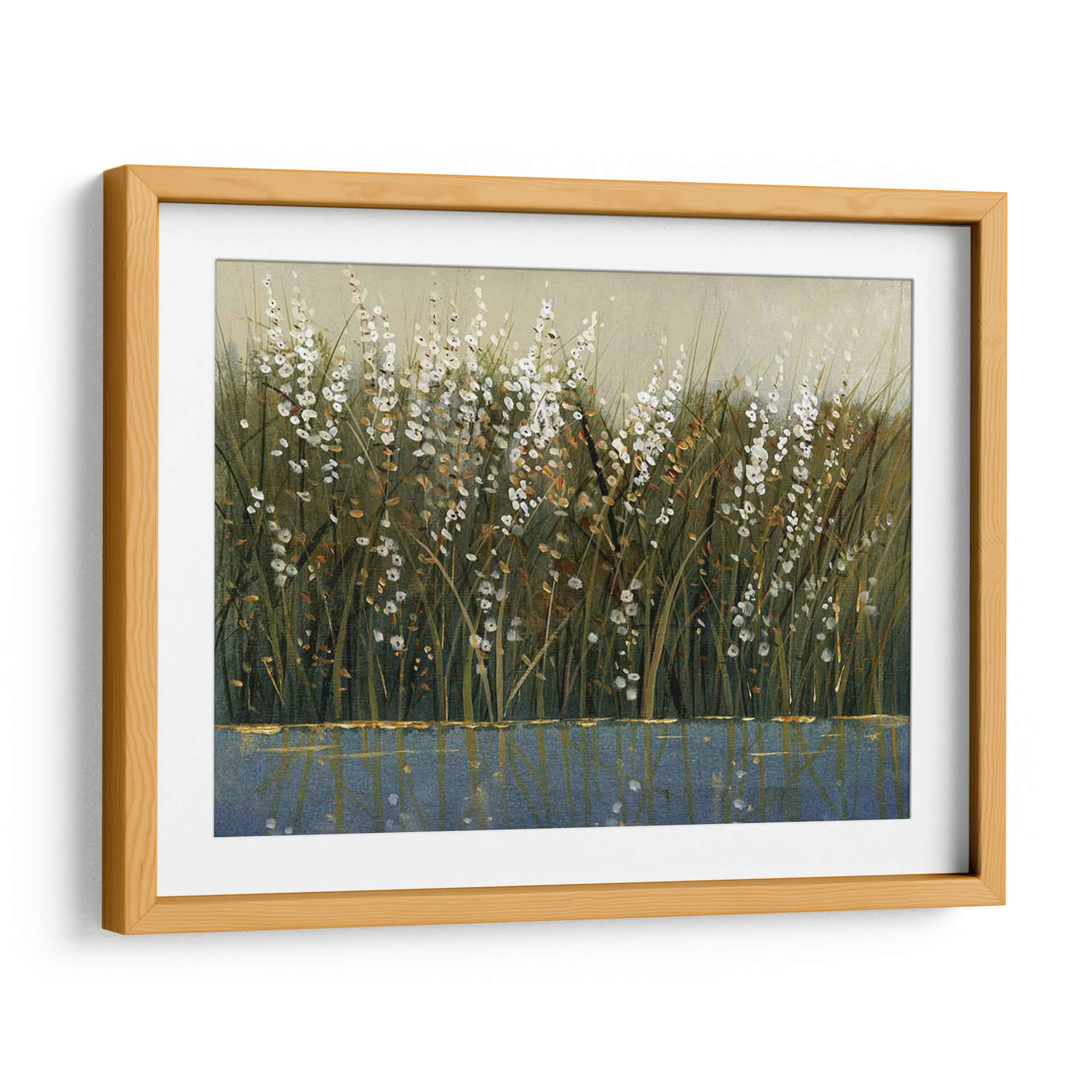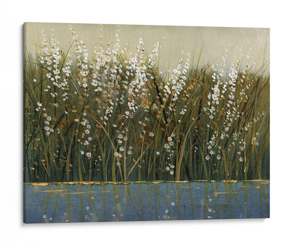 Sumérgete en la serenidad de la naturaleza con "Por La Hierba Alta I", una obra de arte de Tim O'Toole que captura la delicadeza de un paisaje natural con una ejecución impresionista y evocadora. Este cuadro decorativo presenta una densa vegetación de hierbas altas y finas espigas de flores blancas y ocres, que se alzan con gracia sobre un cuerpo de agua sereno. La paleta de colores, dominada por verdes profundos, tonos tierra y toques sutiles de blanco y azul, crea una atmósfera de calma y contemplación. El estilo artístico combina trazos sueltos y texturas ricas para dar vida a la escena, invitando a la reflexión y la paz interior. La composición, con las líneas verticales de la vegetación y el reflejo en el agua, añade profundidad y dinamismo a la pieza. Ideal para espacios que buscan un refugio de tranquilidad, como dormitorios, estudios o salas de estar, este cuadro decorativo aportará una sensación de conexión con el entorno natural y una elegancia atemporal a tu decoración. Descubre la belleza sutil de la naturaleza plasmada en arte.