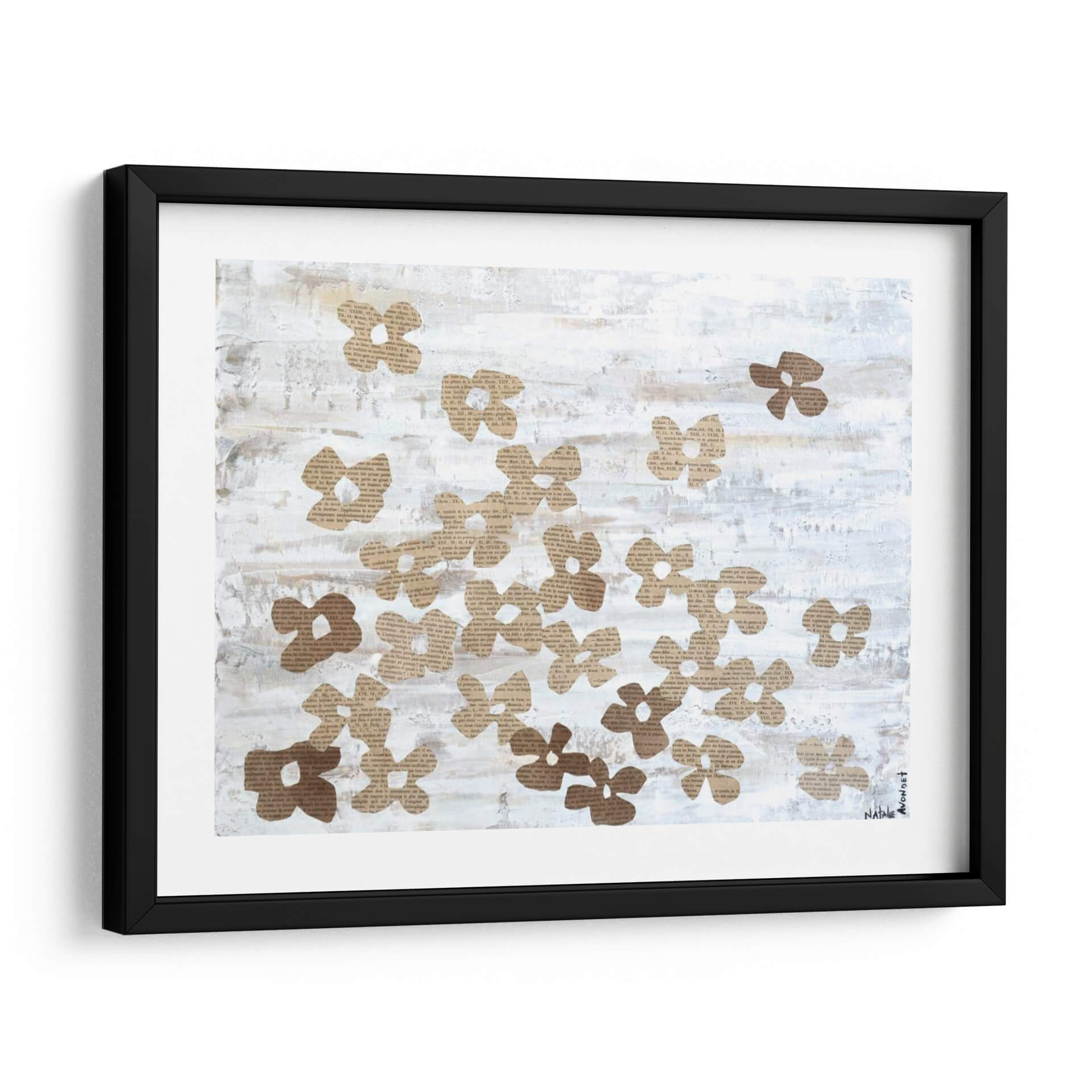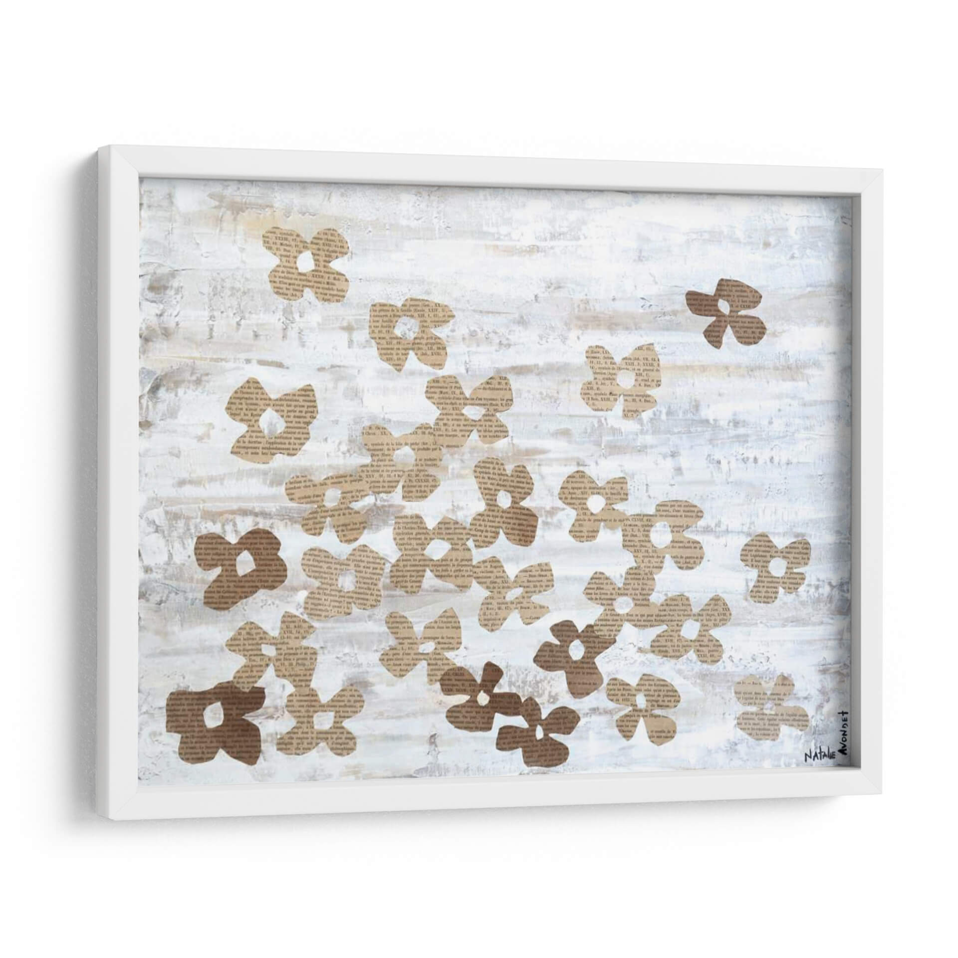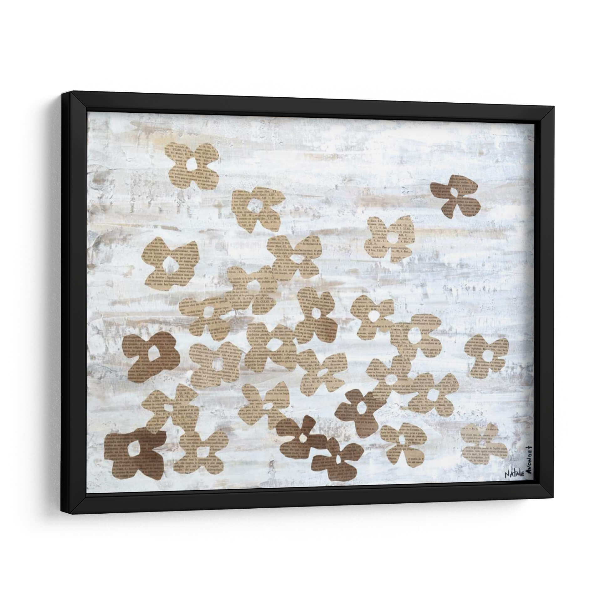 Sumérgete en la delicadeza y el encanto de 'Posías Estampadas II', una obra de arte contemporáneo de Natalie Avondet que evoca una sensación de serenidad y elegancia. Este cuadro decorativo presenta un patrón cautivador de flores estilizadas, creadas a partir de fragmentos de texto vintage, sobre un fondo texturizado en tonos blancos y beige. La composición, que recuerda a un jardín sutilmente sugerido, juega con la superposición y la repetición para crear profundidad y movimiento. Los colores neutros y terrosos aportan una calidez suave, haciendo de esta pieza una adición versátil para cualquier espacio que busque un toque de sofisticación discreta. Ideal para salas de estar, dormitorios o estudios, 'Posías Estampadas II' invita a la contemplación y aporta una atmósfera de calma y refinamiento. La técnica mixta, que combina elementos gráficos y texturales, confiere a la obra un carácter único y contemporáneo, perfecto para aquellos que aprecian el arte con historia y una estética depurada. Añade un toque de belleza atemporal a tu hogar con esta impresionante pieza de Natalie Avondet, un lienzo que narra historias silenciosas y viste tus paredes con gracia.