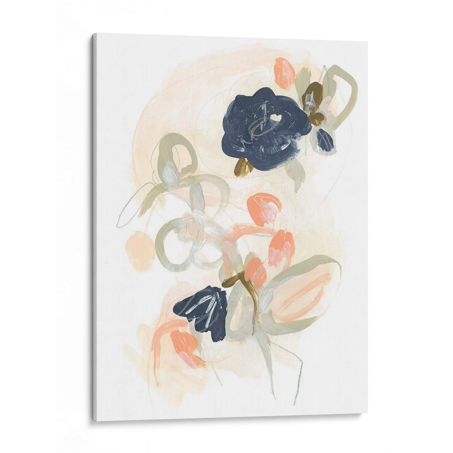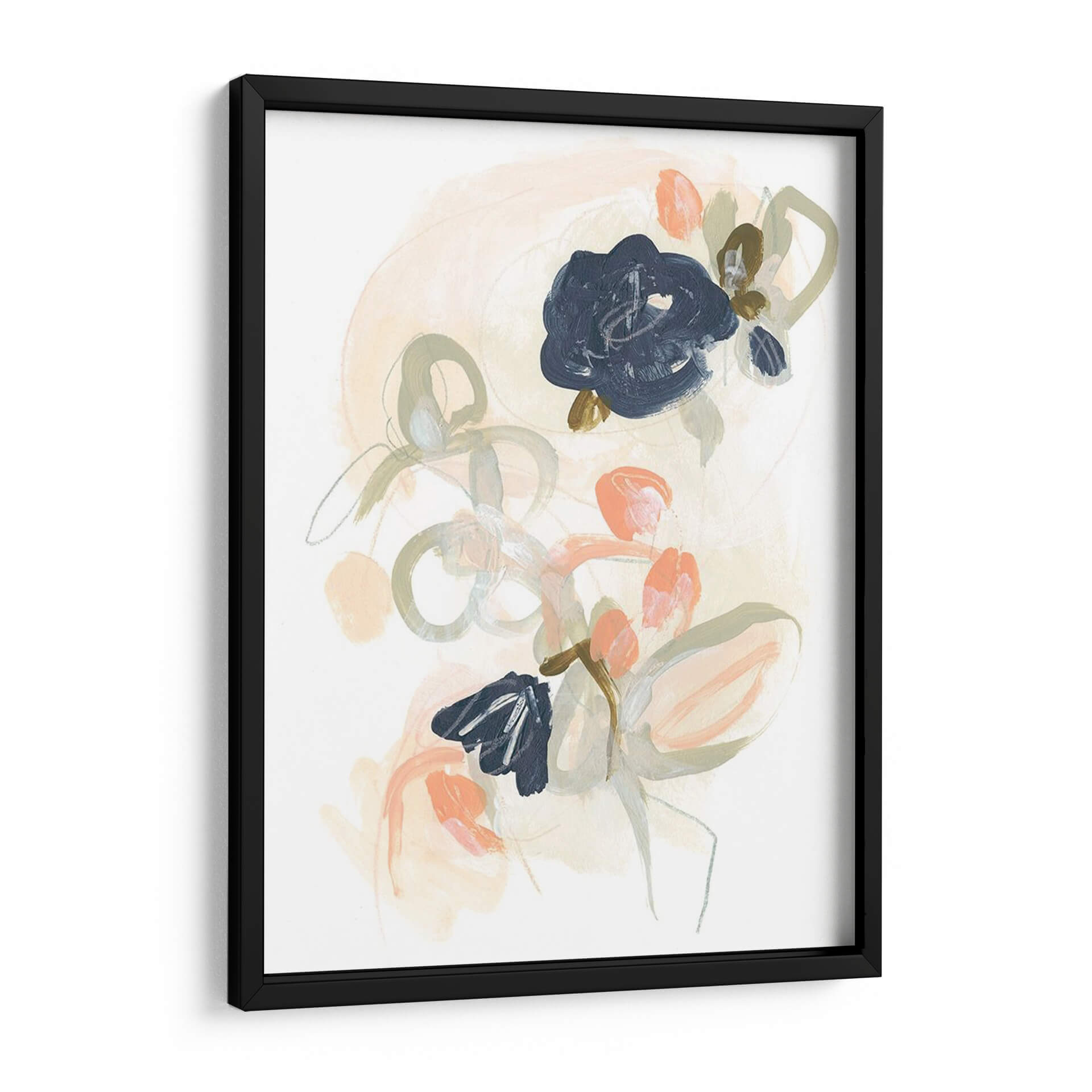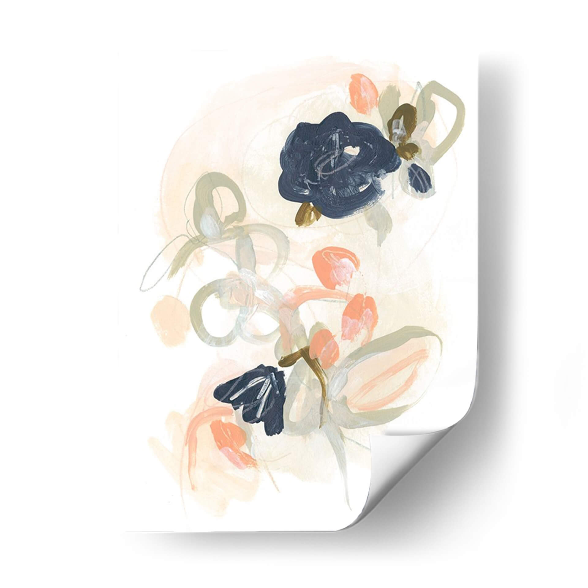 Sumérgete en la delicadeza y el movimiento etéreo de "Posy Projection Ii", una obra de arte contemporáneo que captura la esencia de las flores con un toque moderno. La pieza presenta una paleta de colores suaves y apagados, con toques vibrantes de coral y profundos azules marinos que crean un contraste cautivador. Las pinceladas sueltas y fluidas evocan una sensación de ligereza y espontaneidad, sugiriendo capullos y pétalos en un delicado baile. Las líneas orgánicas y los círculos etéreos tejen una composición que invita a la contemplación, creando una atmósfera de calma y serenidad. Este cuadro decorativo es perfecto para añadir un acento de sofisticación a cualquier espacio, ya sea una sala de estar minimalista, un dormitorio acogedor o una oficina inspiradora. "Posy Projection Ii" no es solo una decoración de pared, es una expresión artística que dialoga con tu estilo personal y eleva la estética de tu hogar. Descubre la belleza sutil y el encanto atemporal de esta pieza única de June Erica Vess. Ideal para quienes buscan arte abstracto con motivos florales y una paleta de colores contemporánea.