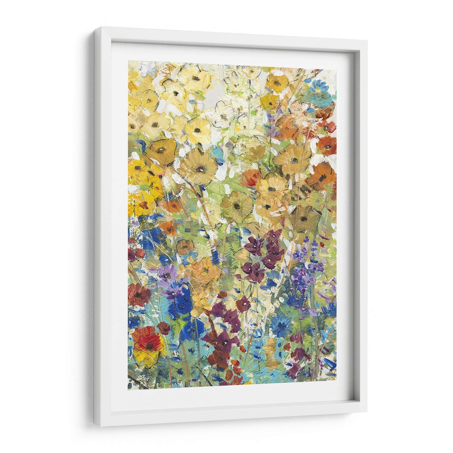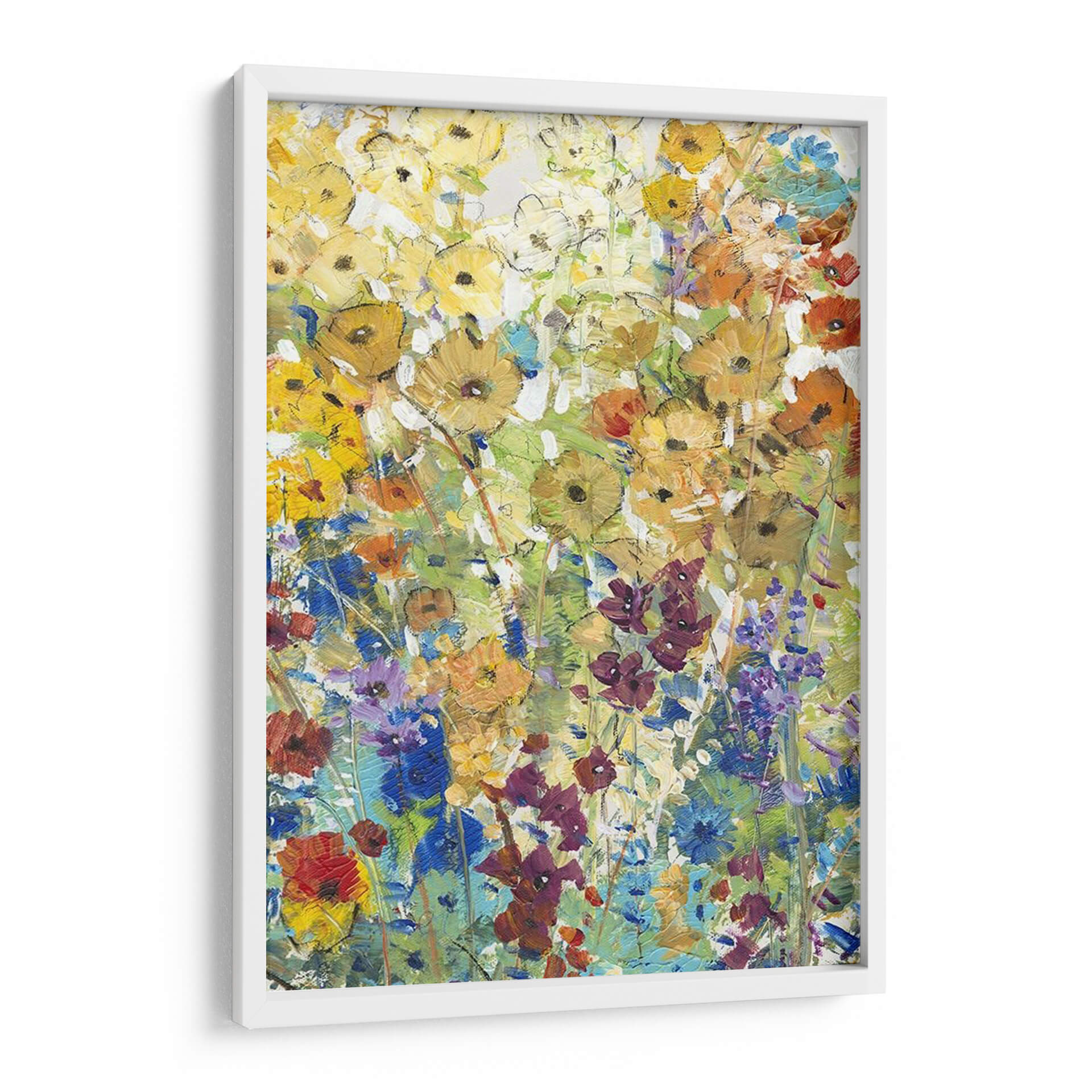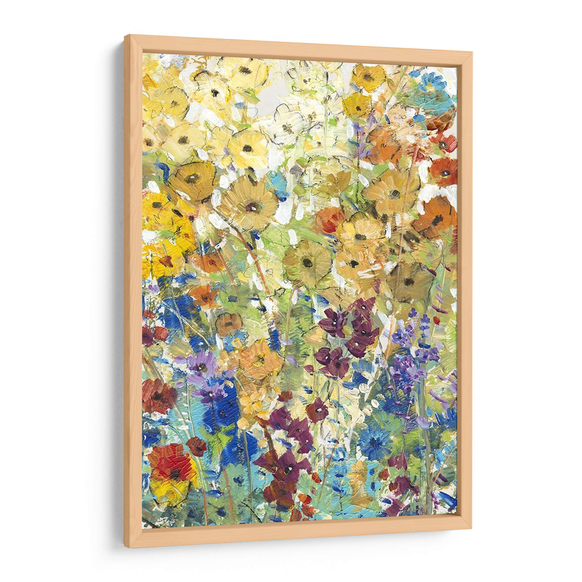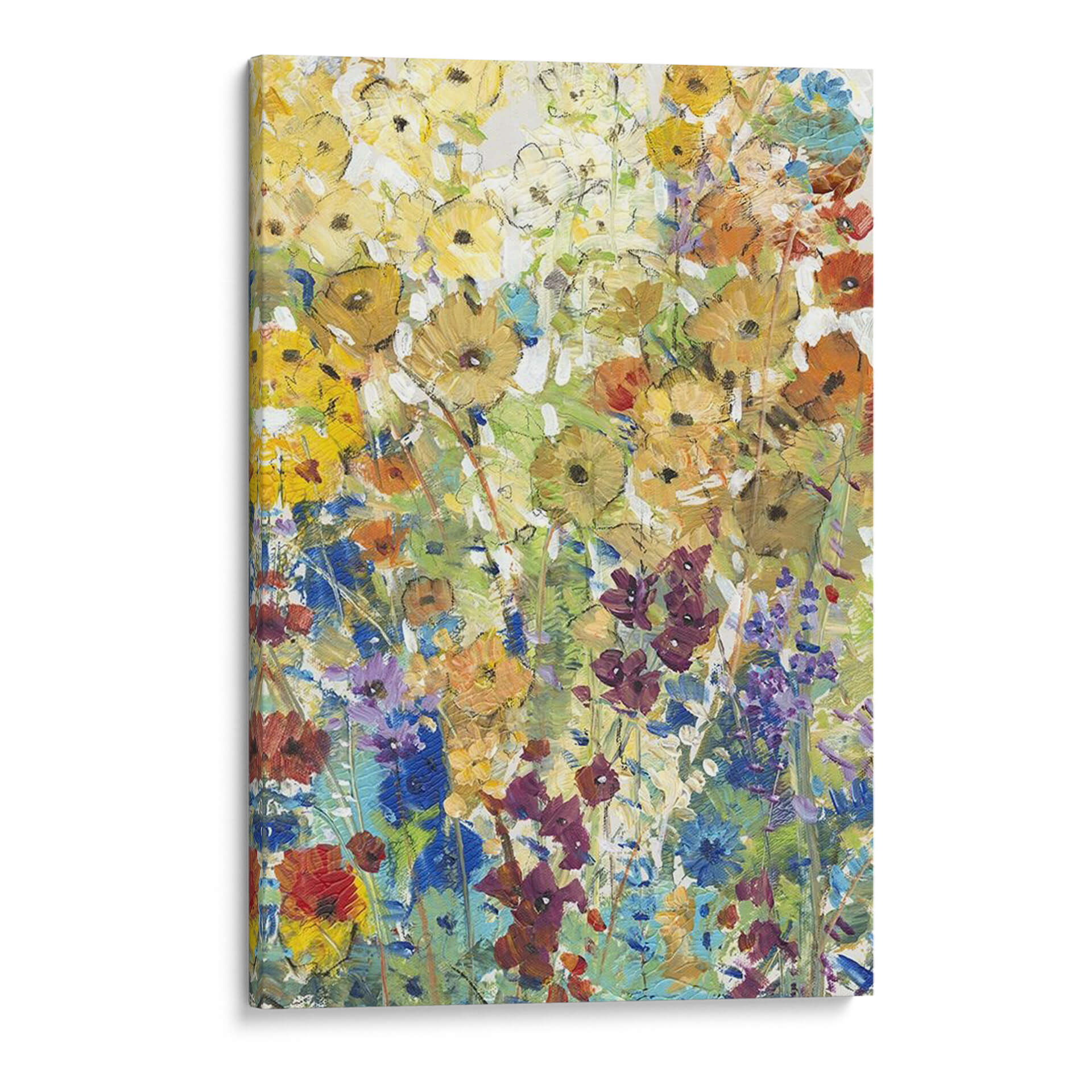 Sumérgete en la vibrante belleza de "Prado Floral I", una obra de arte contemporáneo que captura la esencia de un jardín en plena floración con una energía desbordante. El artista Tim O'Toole emplea pinceladas audaces y una paleta de colores rica y variada para dar vida a un prado rebosante de vida. Los amarillos dorados, naranjas cálidos, azules intensos y púrpuras profundos se entrelazan en una composición que evoca alegría y vitalidad. Esta pieza abstracta floral invita a la contemplación, sugiriendo movimiento y la efímera belleza de la naturaleza. Ideal para añadir un toque de color y frescura a cualquier estancia, este cuadro decorativo es perfecto para salones, comedores o cualquier espacio que necesite un punto focal lleno de vida. Su estilo distintivo lo convierte en una adición excepcional a colecciones de arte moderno y contemporáneo, aportando una atmósfera de optimismo y conexión con el mundo natural. Transforma tu hogar con la exuberancia y el encanto de este jardín pintado, un testimonio del poder expresivo del color y la forma.