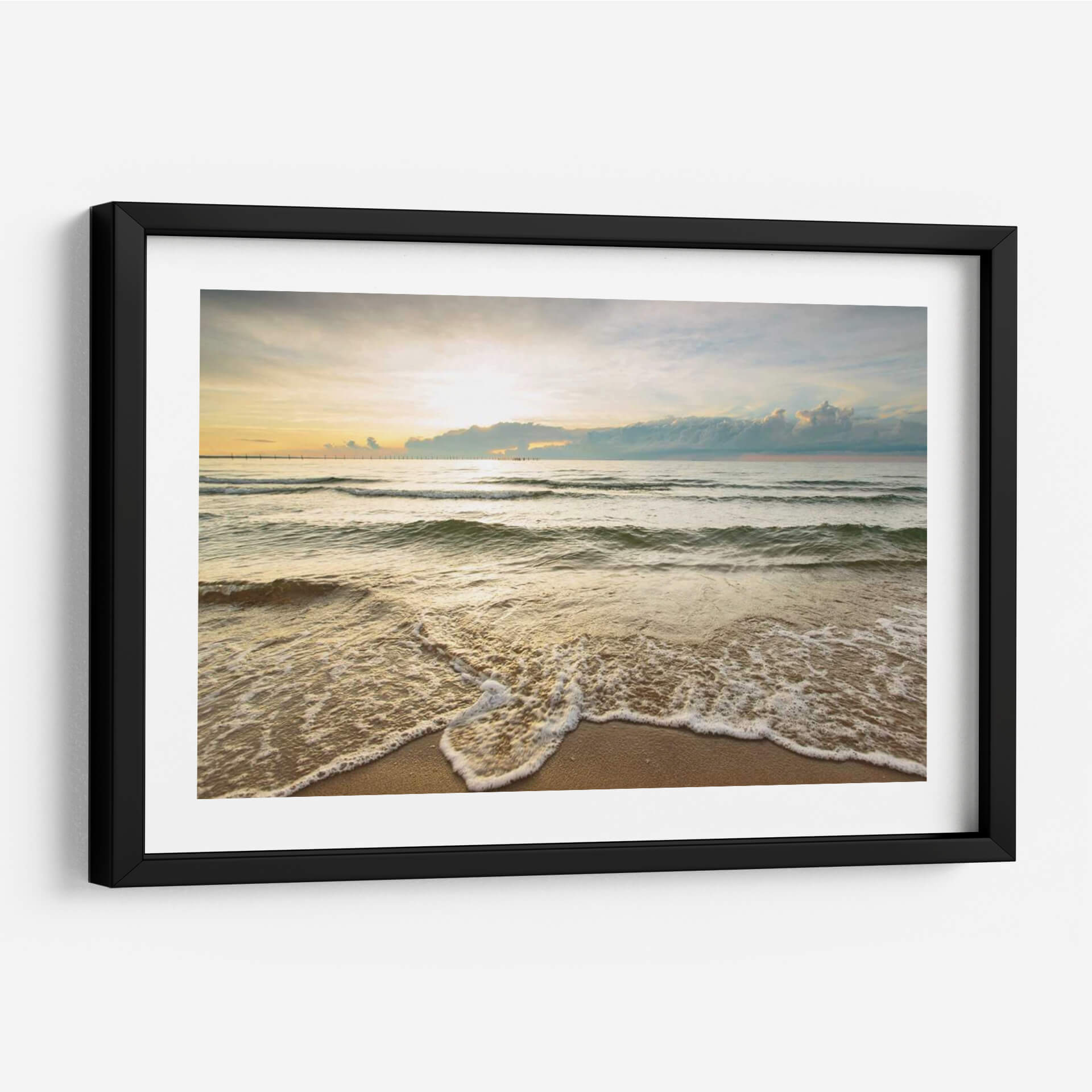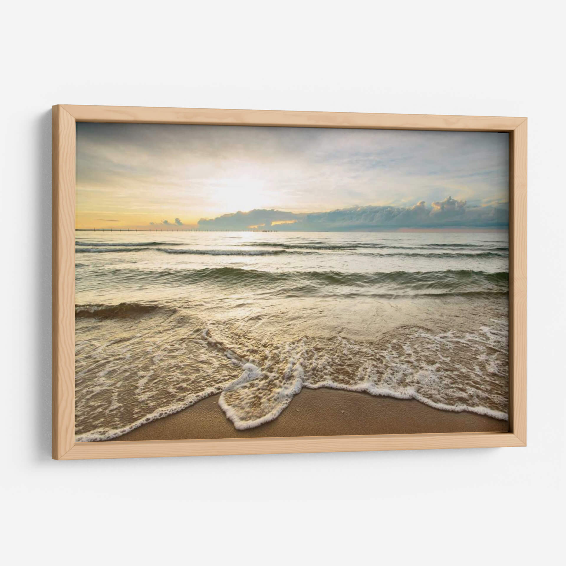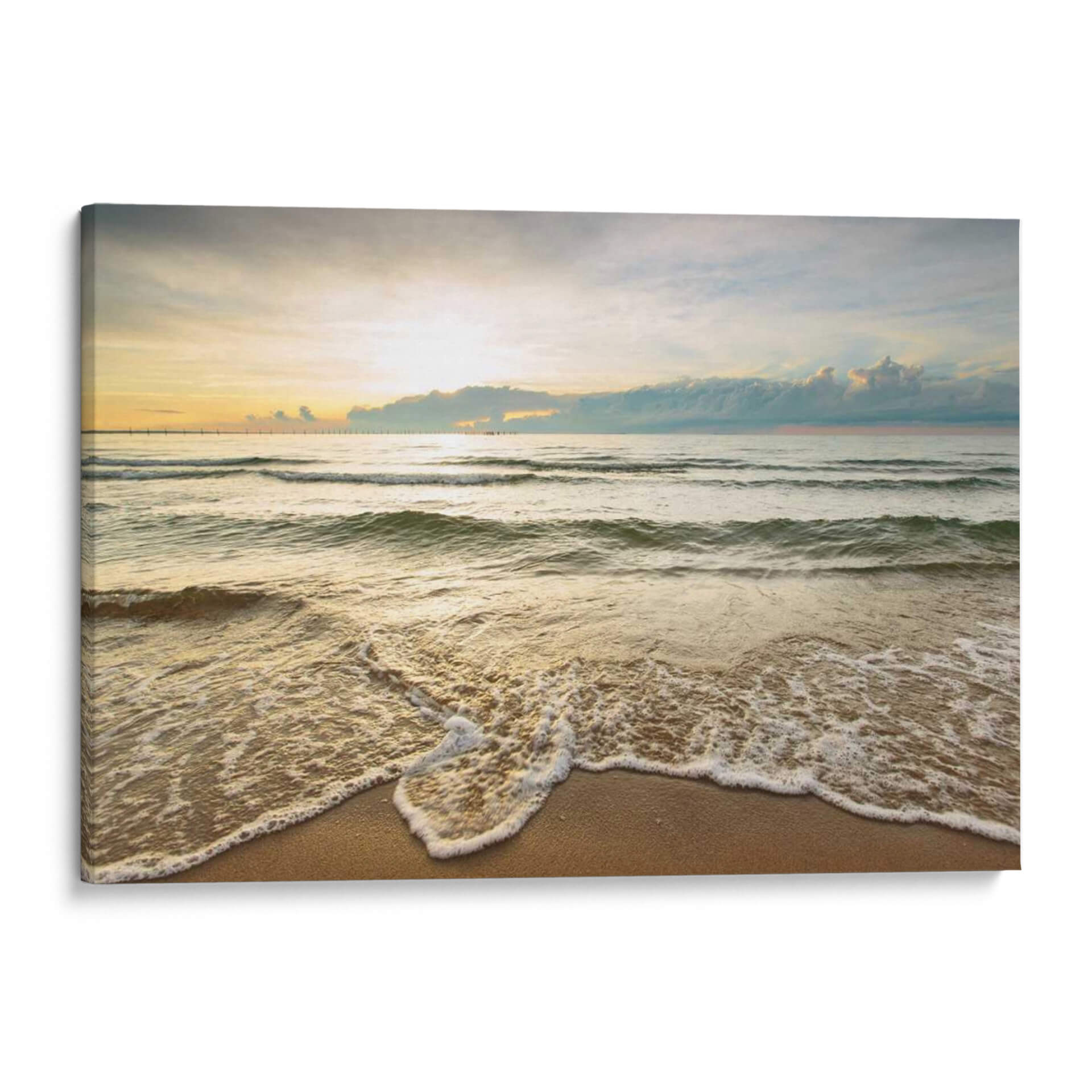 Sumérgete en la serenidad costera con "Primer Landing-Sea II", una obra de arte que captura la mágica transición entre el mar y la tierra. La pieza presenta olas suaves que lamen la arena dorada bajo un cielo teñido por los cálidos tonos del amanecer o atardecer. La paleta de colores, dominada por azules y dorados suaves, evoca una atmósfera de calma y tranquilidad, invitando a la contemplación. La composición, que centra la atención en la espuma de las olas rompiendo en la orilla, crea una sensación de movimiento y fluidez, a la vez que transmite una profunda sensación de paz y renovación. Este cuadro decorativo es ideal para añadir un toque de naturaleza y relajación a cualquier espacio, ya sea en un dormitorio, un salón moderno o incluso un baño. Su estilo fotográfico y su temática marina lo convierten en una elección perfecta para quienes buscan una conexión con el océano y sus paisajes inspiradores. "Primer Landing-Sea II" es más que una simple decoración; es una invitación a respirar la brisa marina y sentir la arena entre los dedos cada vez que mires tu pared. Transforma tu hogar en un refugio de paz con esta exquisita representación del mar.