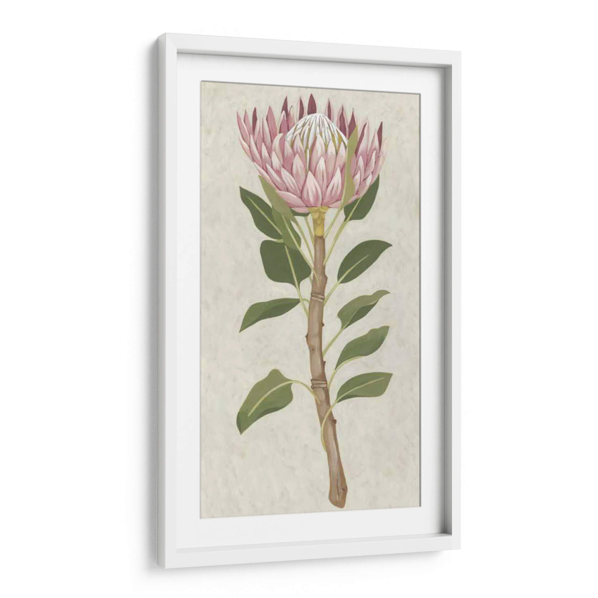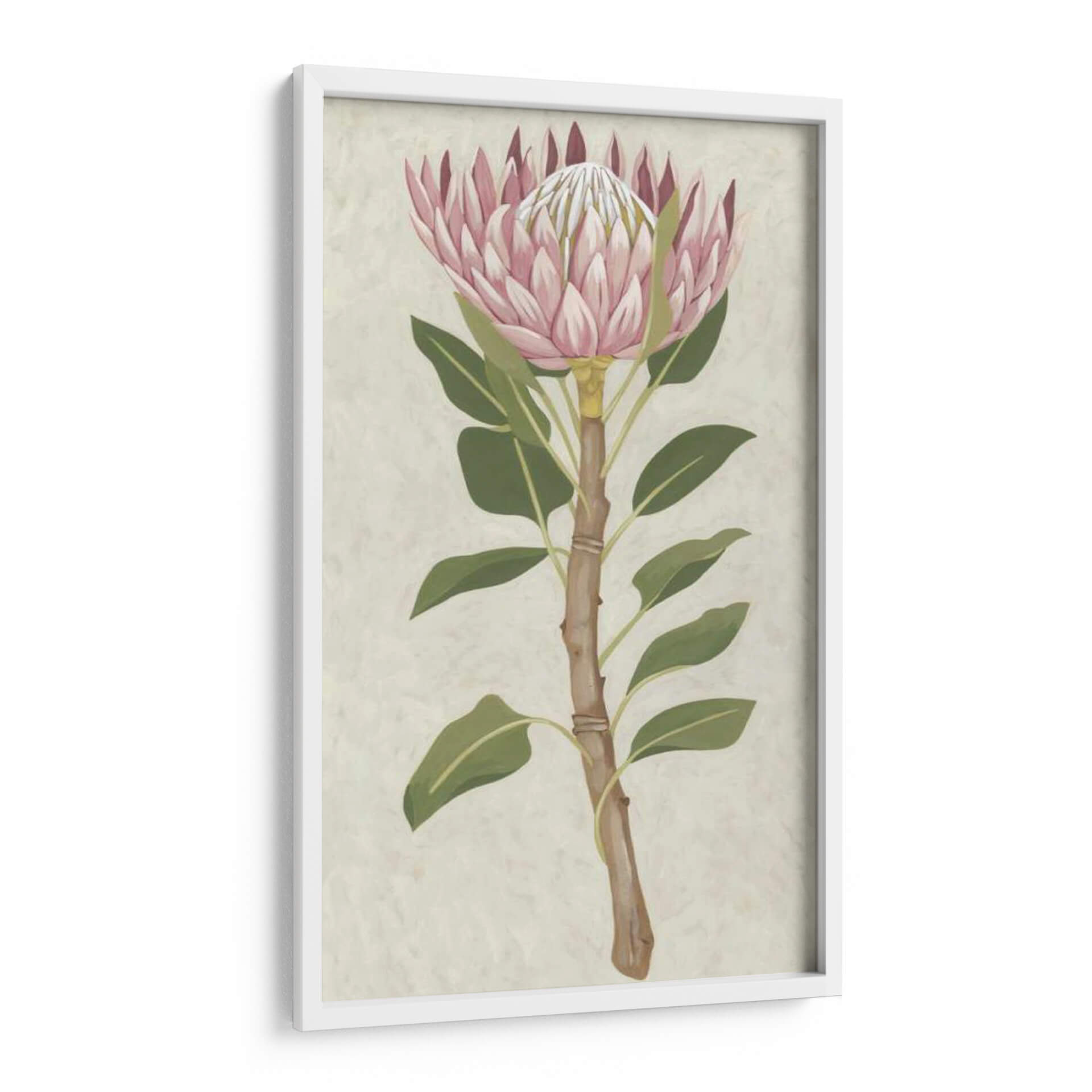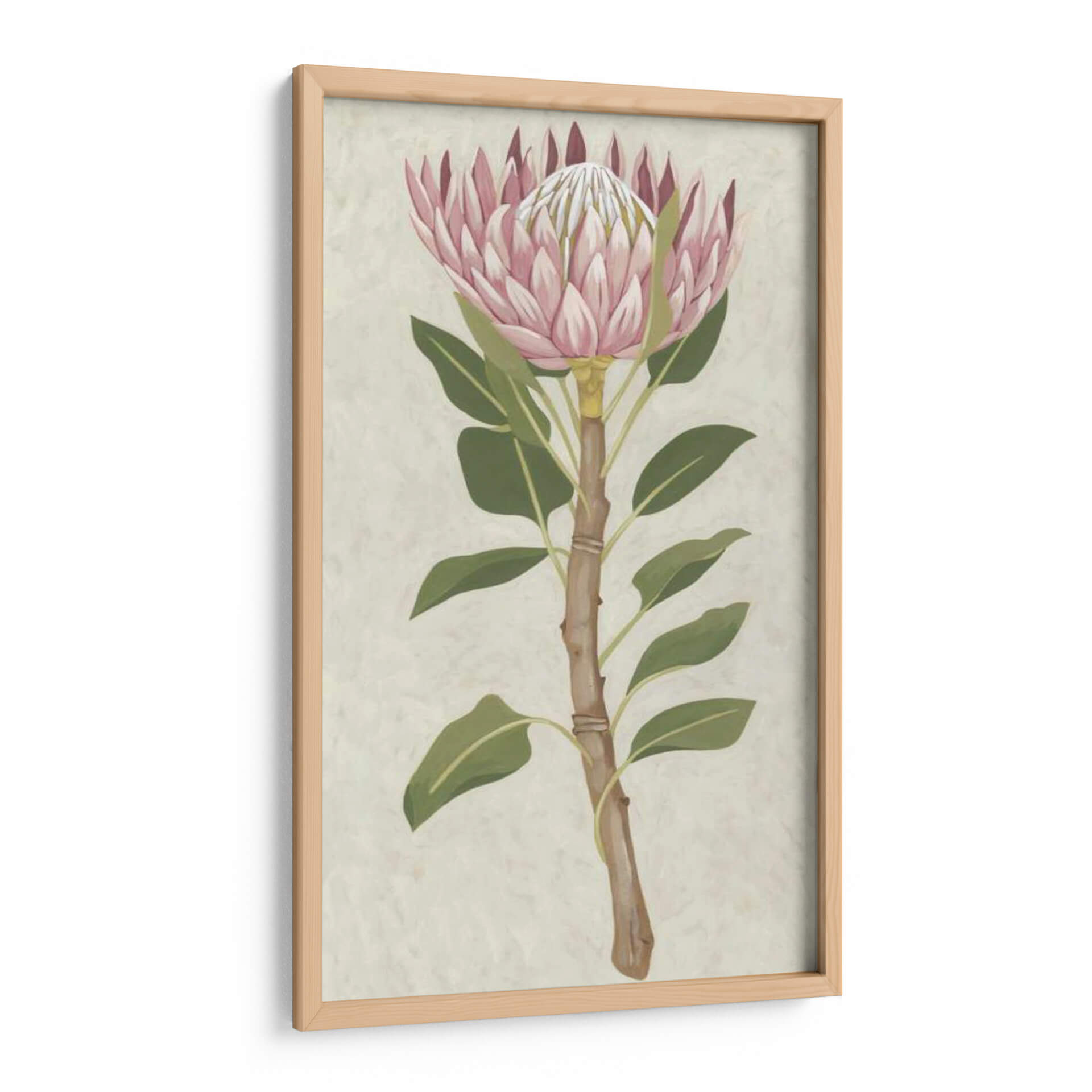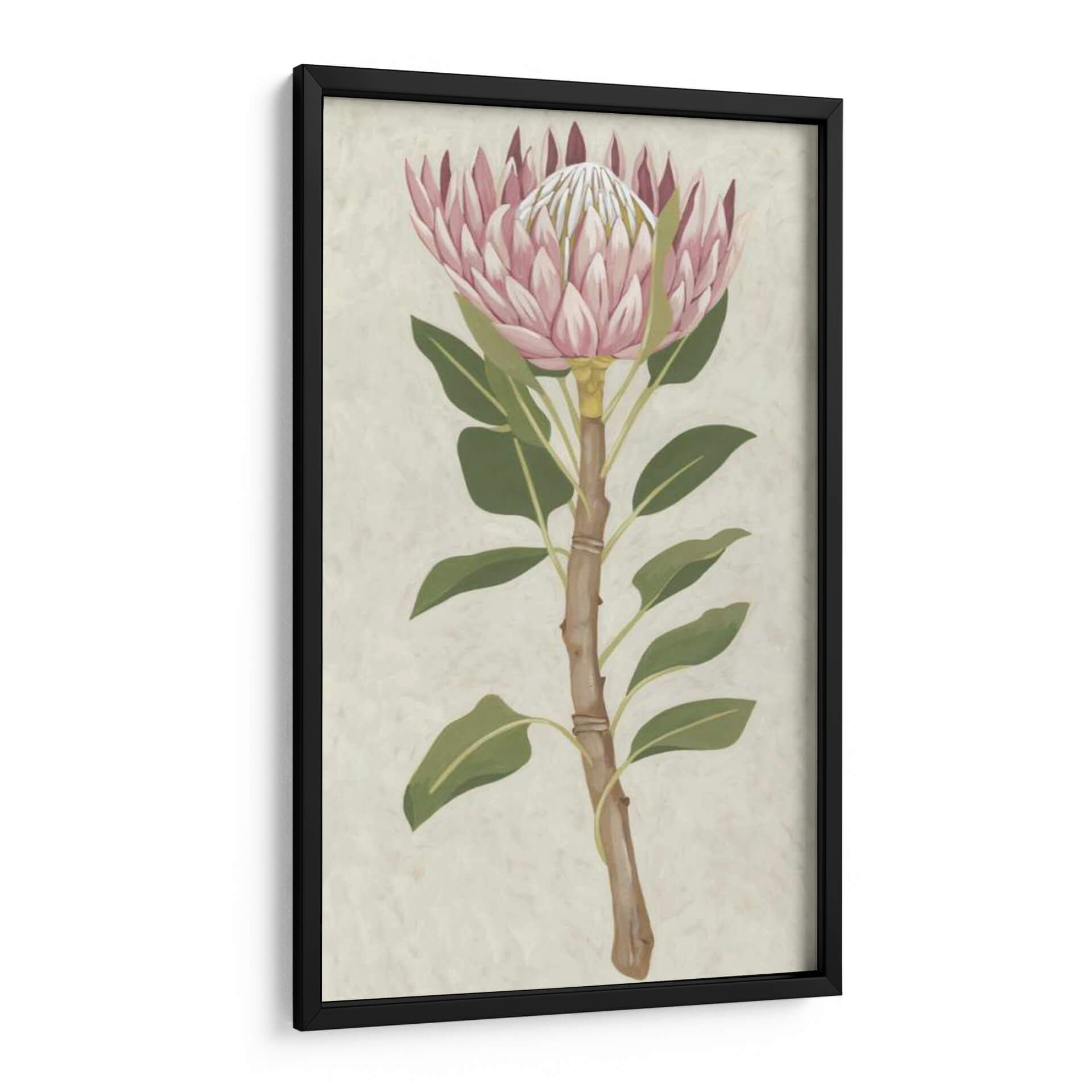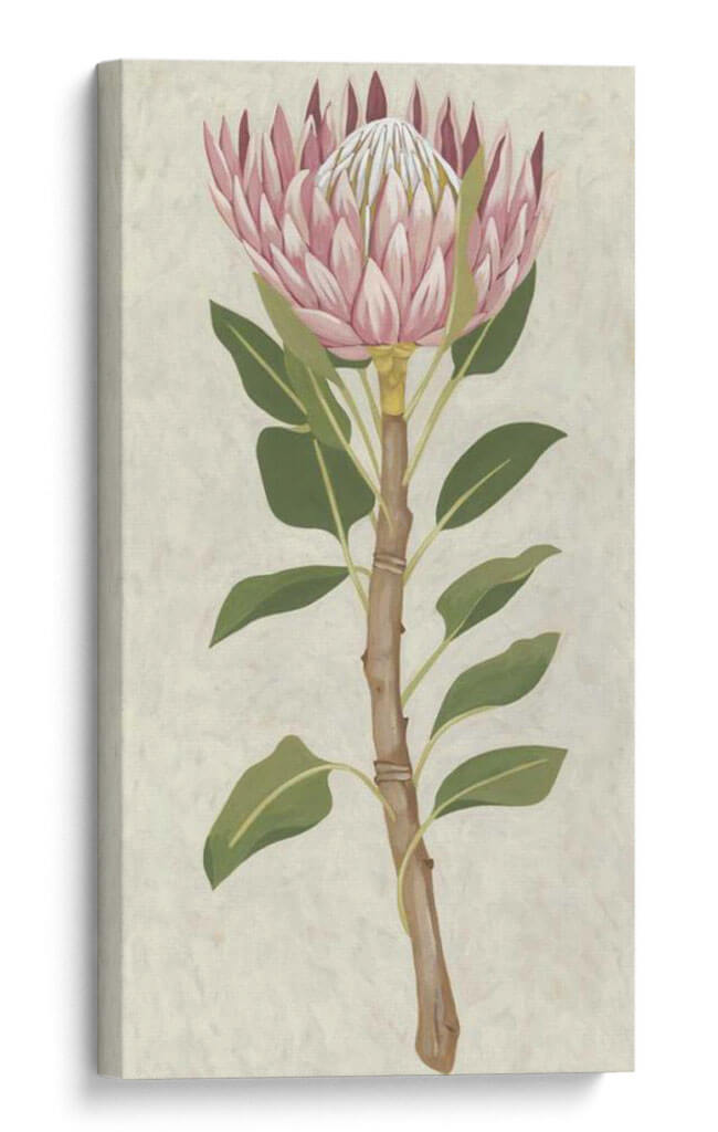 Embellece tu espacio con "Protea II", una obra de arte cautivadora que celebra la majestuosidad de la naturaleza. Este cuadro decorativo presenta una detallada representación de una flor de protea, capturando la delicadeza de sus pétalos en tonos rosados y blancos, contrastando elegantemente con el verde vibrante de sus hojas y el tronco terroso. La composición vertical y el fondo neutro y texturizado de la obra dirigen la atención hacia la protagonista floral, creando un punto focal sereno y sofisticado. Ideal para quienes buscan añadir un toque de elegancia botánica y tranquilidad a su hogar u oficina, esta pieza evoca una sensación de calma y conexión con el mundo natural. Su estilo, que combina elementos realistas con una pincelada suave, la hace versátil para integrarse en diversas decoraciones, desde la clásica hasta la contemporánea. "Protea II" no es solo un cuadro, es una ventana a la belleza intrínseca de la flora, un recordatorio visual de la delicadeza y la fuerza que reside en las formas orgánicas. Transforma tu pared en un lienzo de serenidad y estilo con esta impresionante adición botánica.