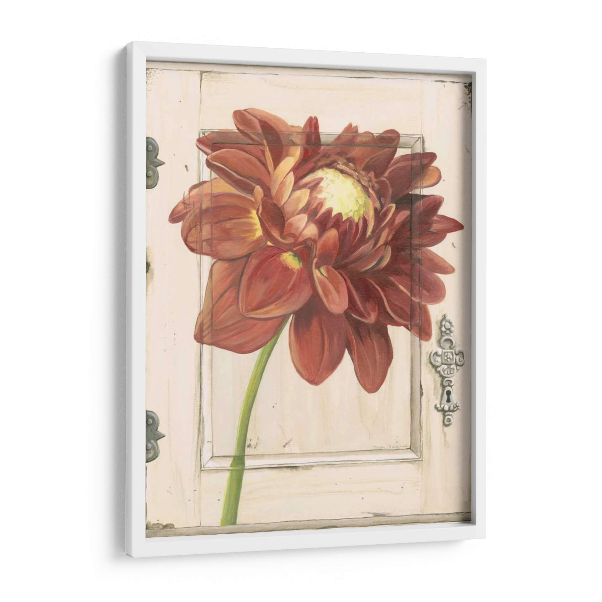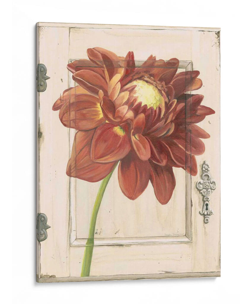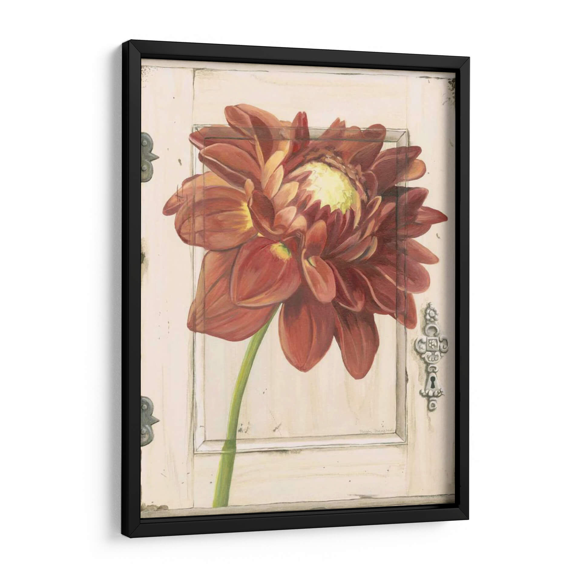 Adéntrate en la belleza atemporal de "Puerta De La Dalia", una obra de arte que captura la esencia de una exuberante dalia en plena floración. Megan Meagher nos presenta una composición delicada donde los tonos rojizos y anaranjados del vibrante pétalo central contrastan sutilmente con el centro amarillento y el tallo verde esmeralda. La flor emerge sobre un fondo texturizado que imita una puerta antigua, con detalles de herrajes que evocan un aire de misterio y nostalgia. Este cuadro decorativo es una invitación a la contemplación, perfecto para añadir un toque de color sofisticado y calidez natural a cualquier espacio. Su estilo realista con toques de pintura clásica lo hace ideal para salones, dormitorios o estudios, aportando una sensación de serenidad y elegancia. "Puerta De La Dalia" no es solo una pieza decorativa, sino una ventana a la belleza efímera de la naturaleza, cuidadosamente elaborada para inspirar y embellecer tu hogar u oficina con su encanto único y su profunda conexión con la flora.