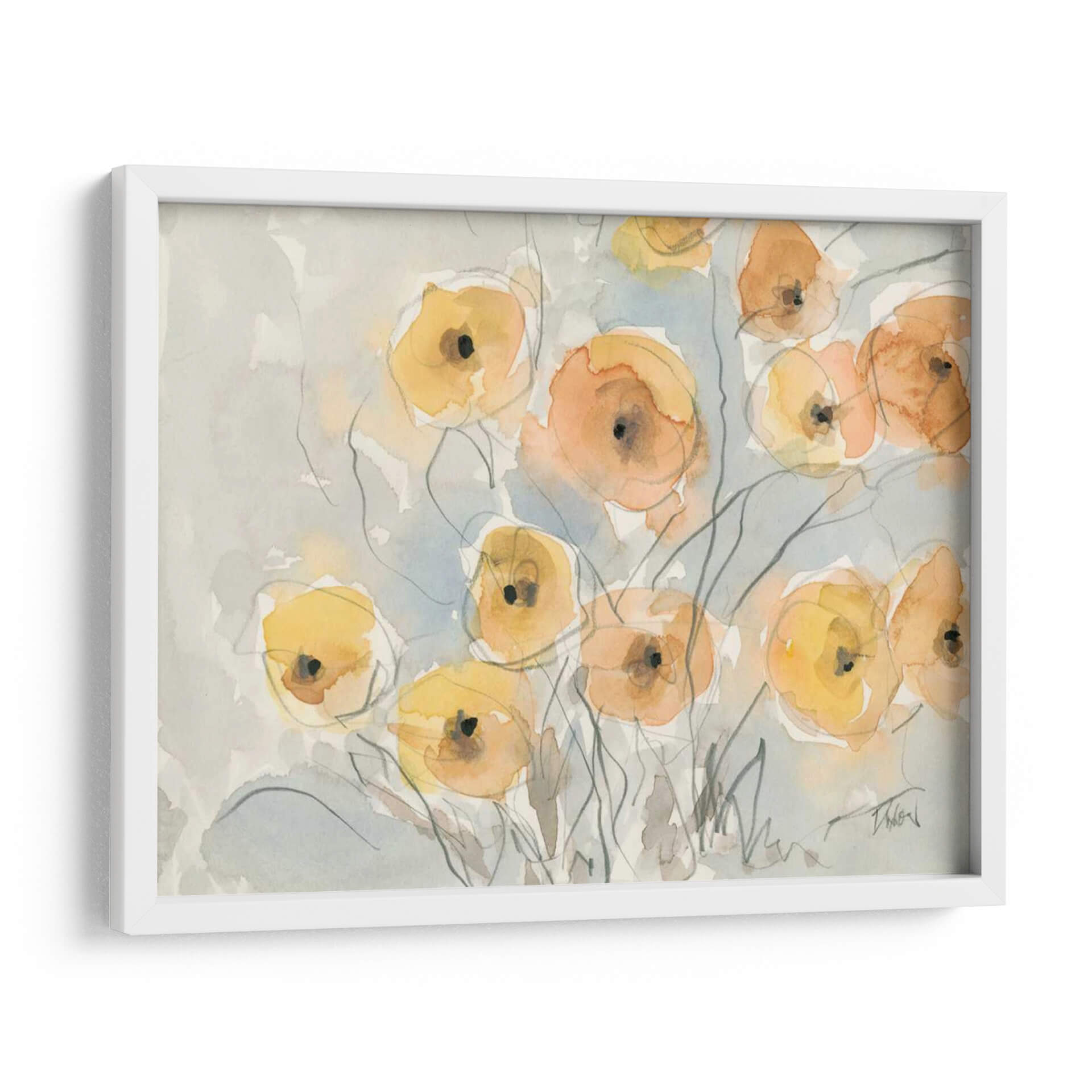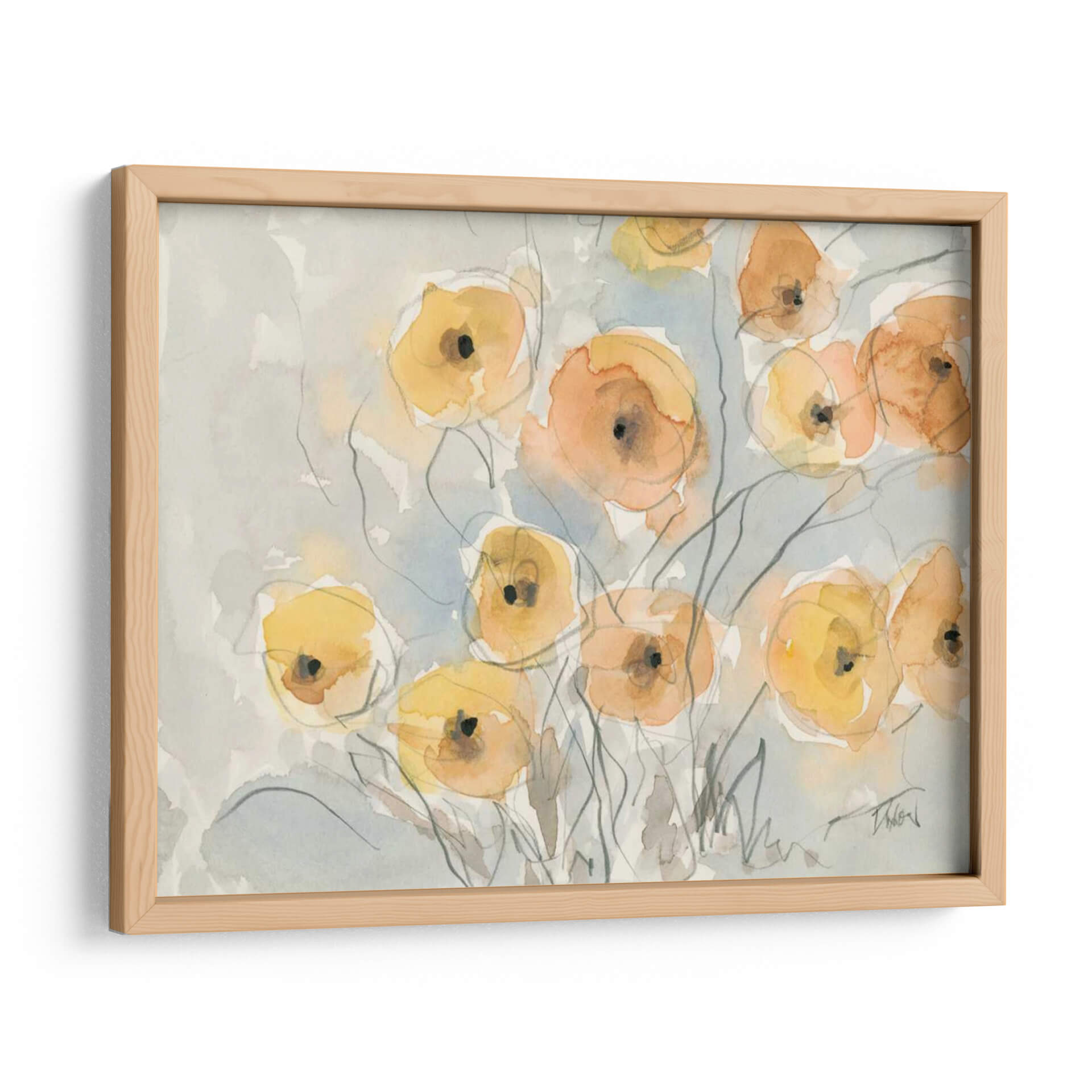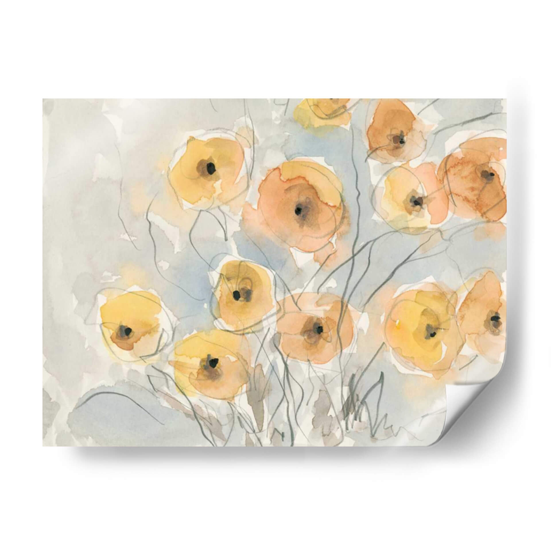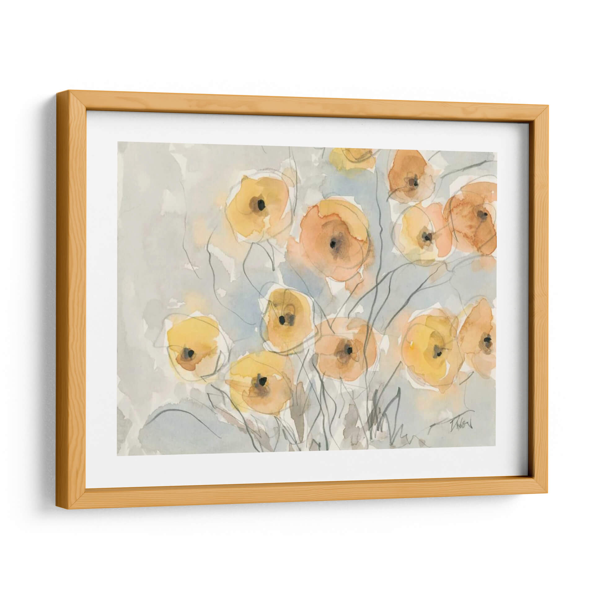 Captura la esencia de la naturaleza con este cautivador cuadro decorativo que presenta un delicado arreglo de amapolas. La obra, titulada 'Puesta De Sol Poppies I' del artista Samuel Dixon, evoca una sensación de calidez y serenidad con su paleta de colores vibrantes pero suaves. Las flores, representadas en tonos ocres y naranjas, parecen florecer sobre un fondo de acuarela en tonos grises y azules pálidos, creando una atmósfera etérea y soñadora. El estilo pictórico, que combina trazos sueltos de acuarela con sutiles delineados a lápiz, aporta una sensación de movimiento y ligereza a la composición. Cada amapola, con su centro oscuro y pétalos translúcidos, invita a la contemplación, sugiriendo la fugacidad de la belleza natural. Este cuadro decorativo es una elección perfecta para añadir un toque de color y sofisticación a cualquier espacio, desde una sala de estar moderna hasta un dormitorio tranquilo o una oficina. Su estilo contemporáneo y temática floral lo convierten en una pieza versátil que realza la decoración, aportando un aire de frescura y optimismo. Ideal para quienes buscan arte que transmita paz y alegría.