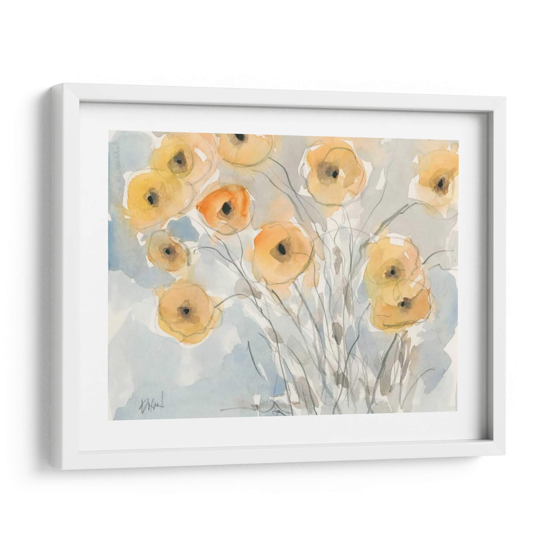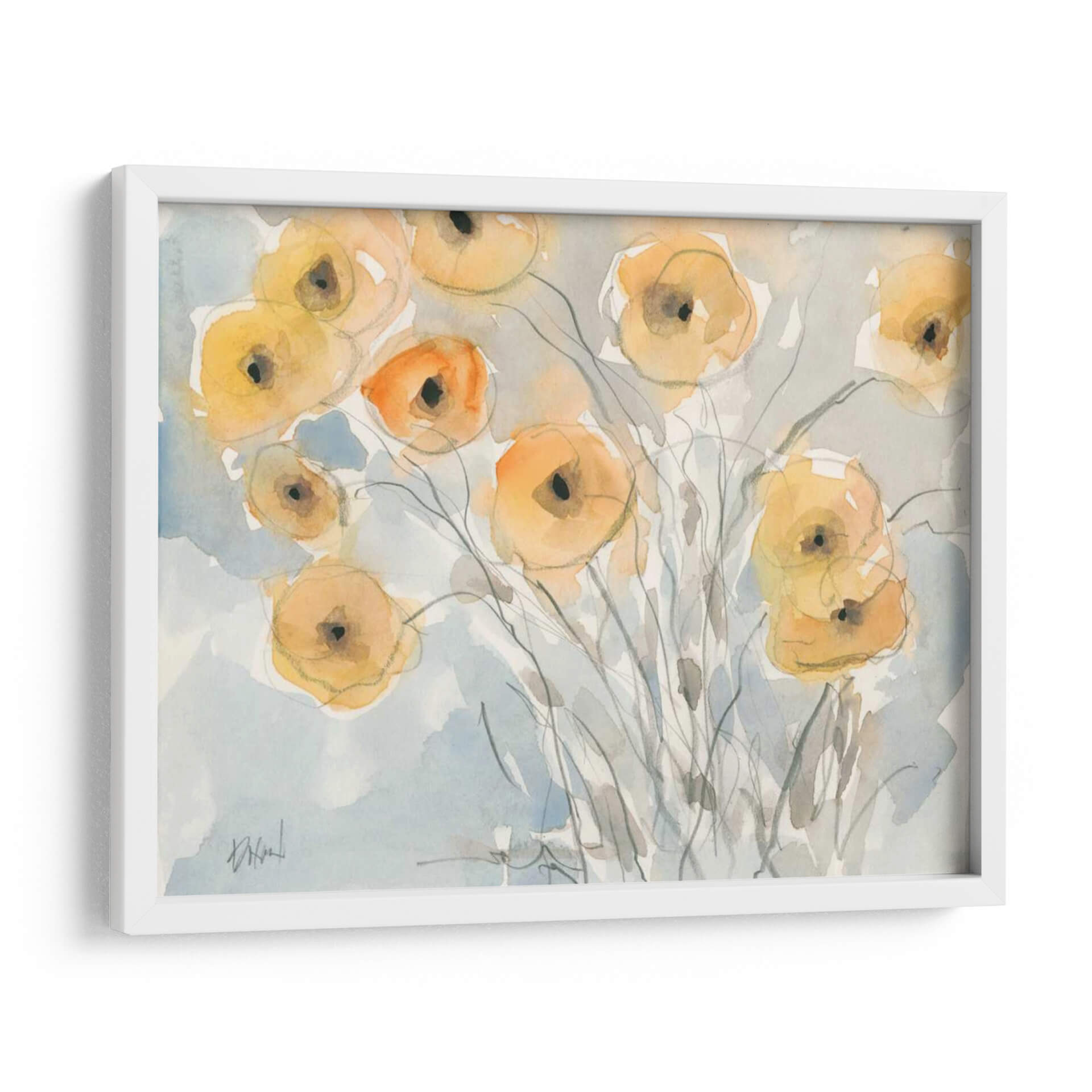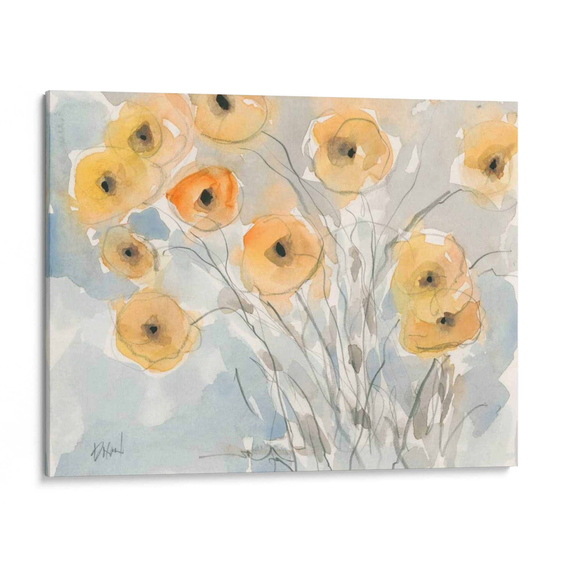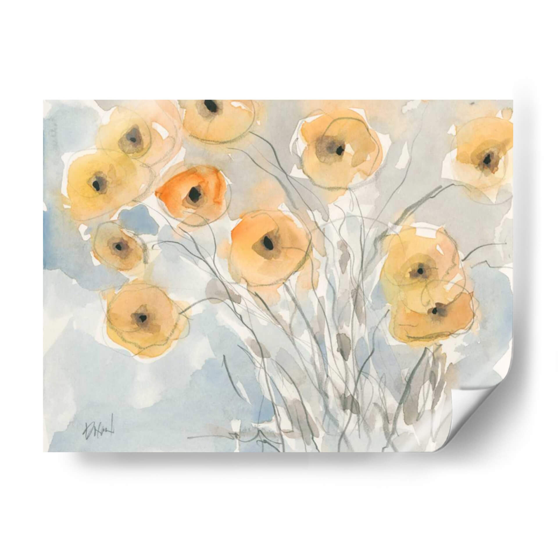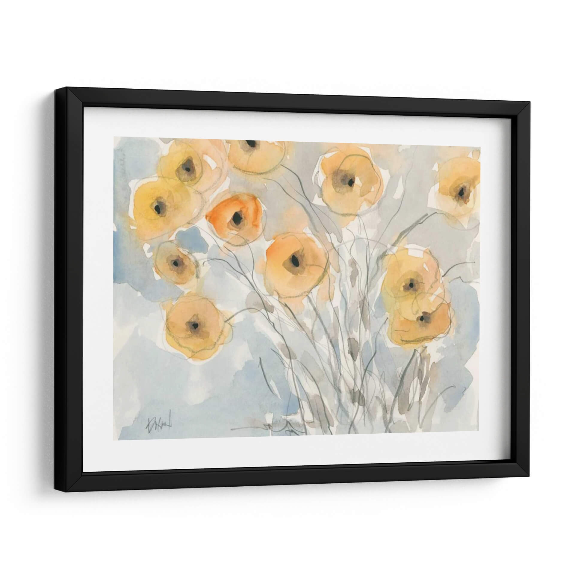 Embellece tu espacio con la delicadeza de "Puesta De Sol Poppies II", una obra de arte en acuarela que captura la esencia de la naturaleza con una paleta de colores cálidos y vibrantes. Este cuadro decorativo presenta un ramillete de amapolas en tonos amarillos y naranjas, cuyas formas etéreas se difuminan sobre un fondo de acuarela en suaves tonos celestes y grises. La técnica de Samuel Dixon evoca una sensación de ligereza y movimiento, con trazos sueltos que dan vida a los pétalos y tallos, creando una atmósfera de serenidad y optimismo. Es una pieza ideal para añadir un toque de color y frescura a cualquier habitación, desde la sala de estar hasta un dormitorio o una oficina, transformando tu entorno en un oasis de tranquilidad y belleza inspirada en la naturaleza. El estilo evocador y la composición sutil hacen de este cuadro una adición perfecta para quienes buscan arte contemporáneo que transmita calma y alegría.