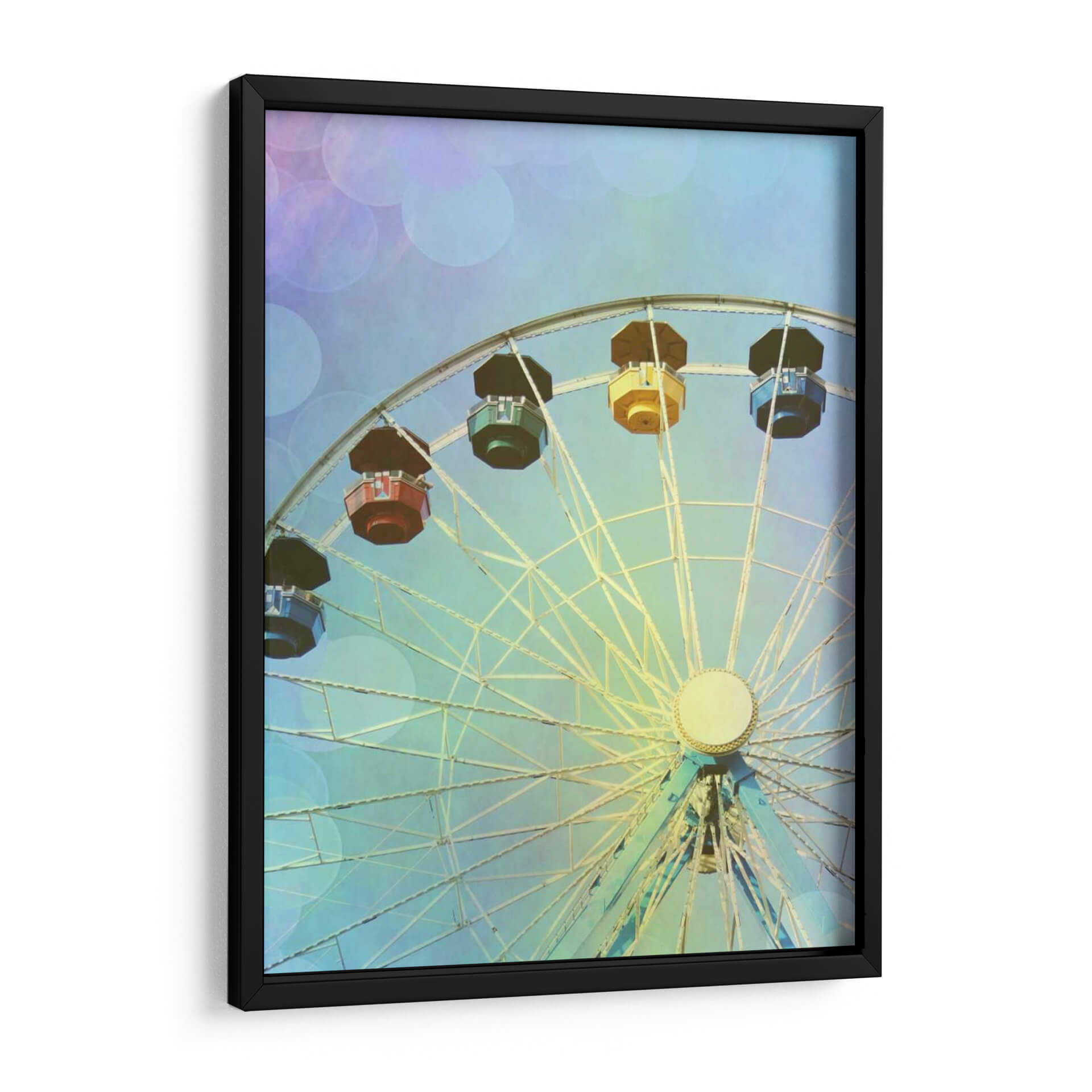 Sumérgete en la nostalgia y la alegría con "Rainbow Ferris Wheel III", una obra de arte digital que captura la esencia mágica de una noria bajo un cielo etéreo. Los colores pastel se fusionan delicadamente, creando una atmósfera onírica y serena con tonos lavanda, azul cielo y toques de verde y amarillo en las cabinas. La composición, centrada en la icónica estructura de la noria, evoca una sensación de movimiento y expectación, invitando a recordar momentos de diversión y asombro. Esta pieza es ideal para añadir un toque de fantasía y color a cualquier espacio, desde una sala de estar moderna hasta un dormitorio infantil o una oficina que busque inspirar creatividad y ligereza. El estilo artístico, con un toque vintage y texturas sutiles, la convierte en un cuadro decorativo versátil que atraerá miradas y generará conversación. Transforma tu hogar en un lienzo de emociones y recuerdos con esta encantadora representación de un clásico paseo.