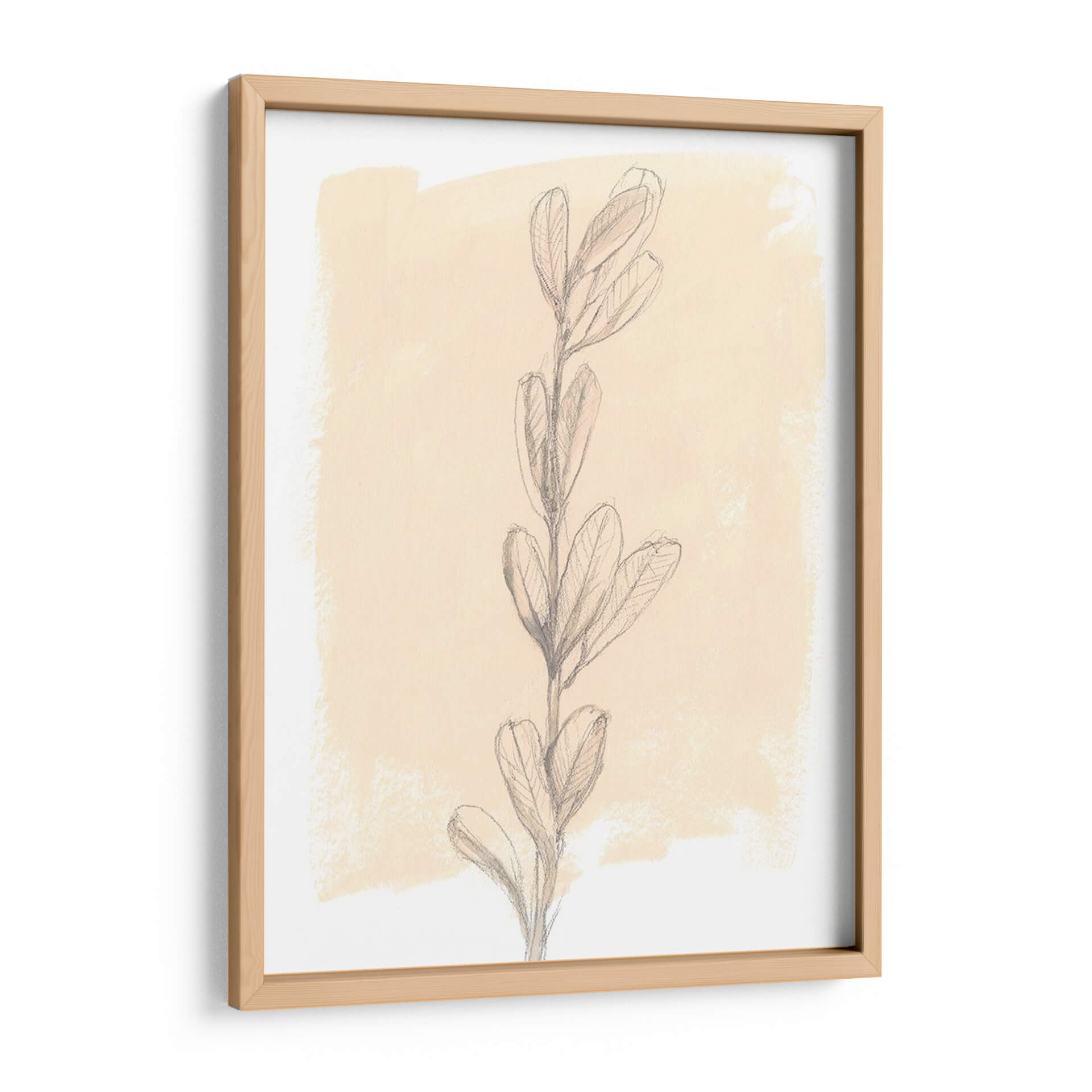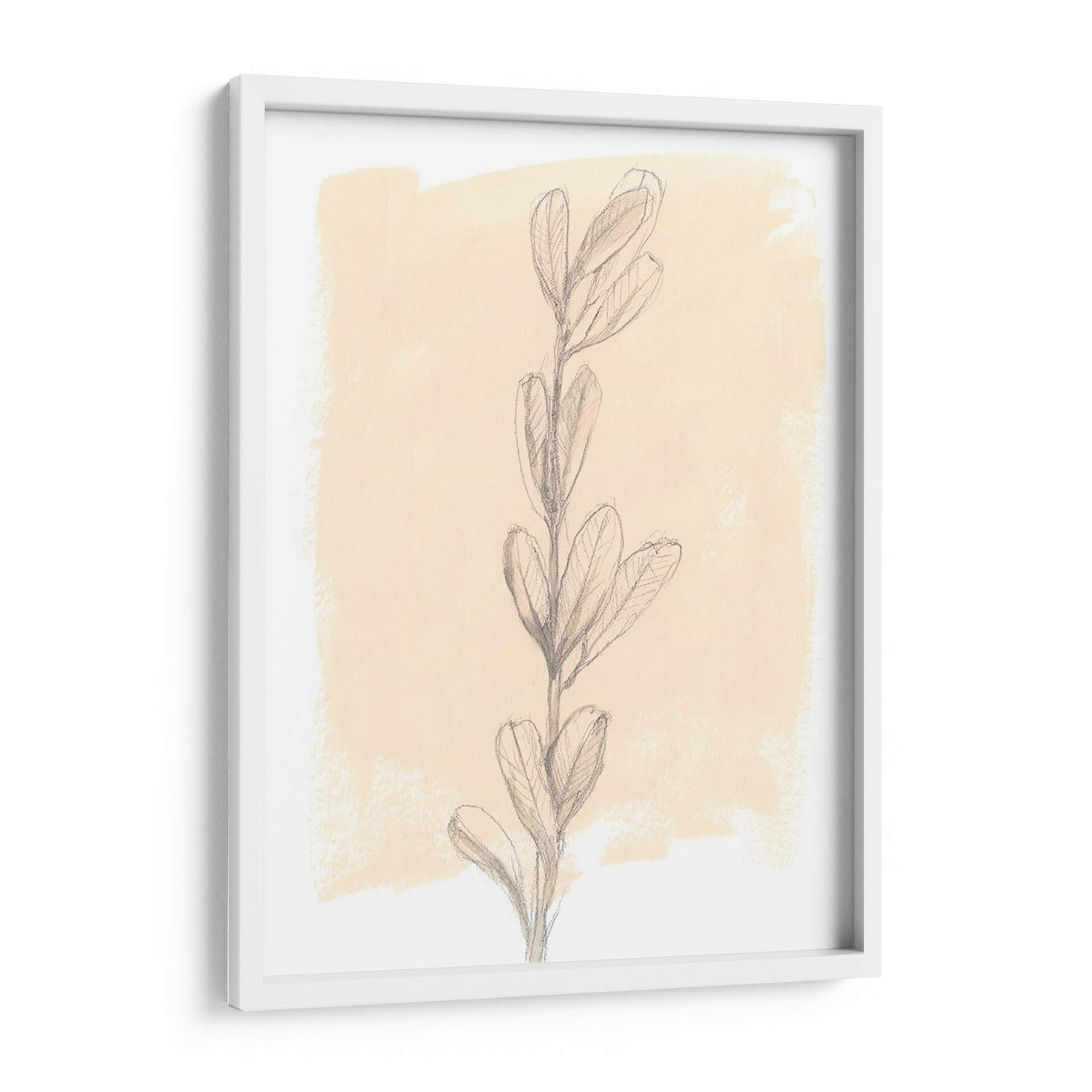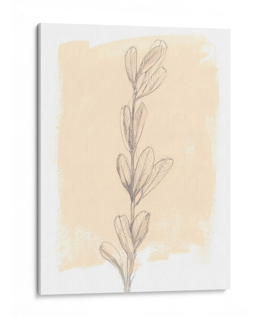 Sumérgete en la serenidad de "Rama En Blush Ii", una cautivadora obra de arte de Jennifer Goldberger que captura la delicada belleza de la naturaleza con un toque contemporáneo. Esta pieza presenta un estudio detallado de una rama ascendente, dibujada con trazos de lápiz precisos y expresivos que resaltan la forma y la textura de sus hojas. El fondo, una mancha de color suave en tonos de blush y crema, crea una atmósfera etérea y tranquila, permitiendo que el sujeto principal brille con sutil elegancia. La composición minimalista y la paleta de colores cálidos y neutros hacen de este cuadro decorativo una adición versátil y sofisticada para cualquier espacio. Ideal para crear un ambiente de calma y reflexión en dormitorios, salones o estudios, "Rama En Blush Ii" es una invitación a la contemplación, aportando una dosis de arte orgánico y refinado a tu decoración. Su estilo, que combina lo figurativo con lo abstracto, añade profundidad y un interés visual sutil, convirtiéndolo en el punto focal perfecto para un rincón de lectura o un espacio de trabajo inspirador. Añade un toque de naturaleza atemporal a tu hogar con esta pieza única.