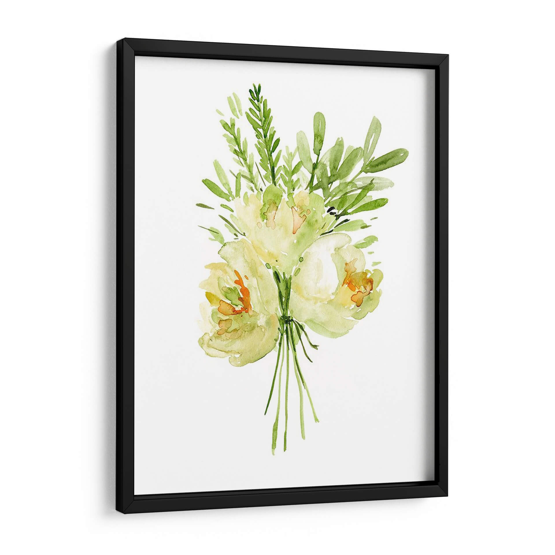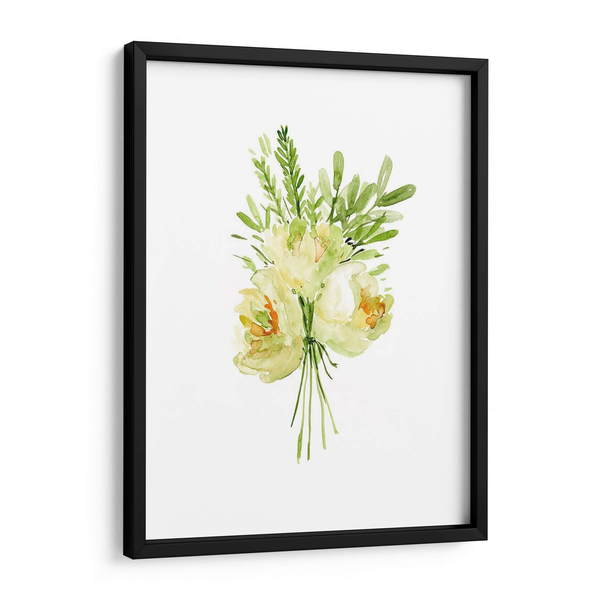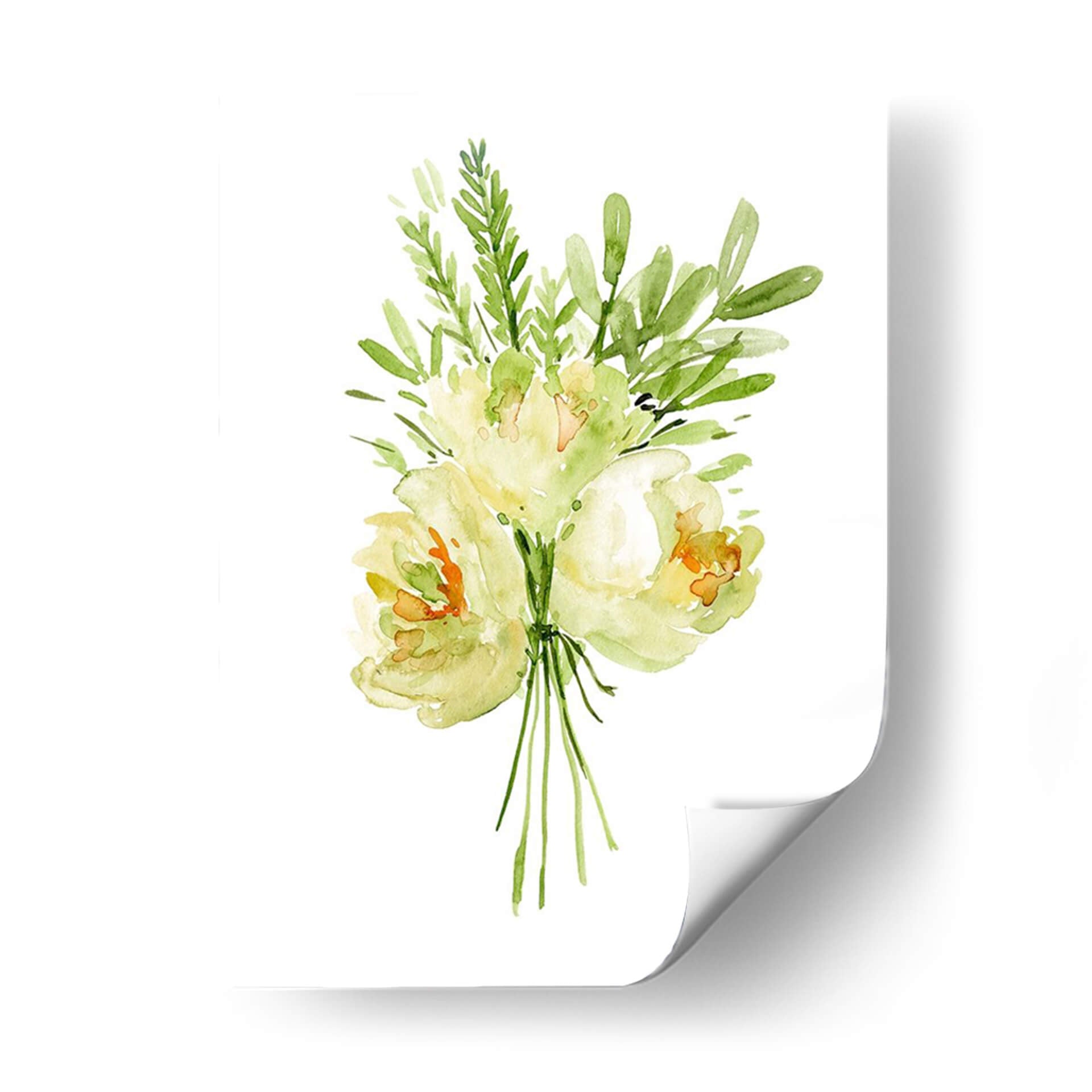 Embellece tu hogar con el delicado encanto de "Ramo Con Peonía II", una obra de arte en acuarela que captura la esencia etérea de las flores. La artista Melissa Wang nos presenta un ramo de peonías y follaje verde, ejecutado con una técnica suelta y fluida que evoca la frescura y la belleza efímera de la naturaleza. La paleta de colores, dominada por suaves tonos amarillos, verdes y toques de naranja, crea una atmósfera de serenidad y tranquilidad, perfecta para añadir un toque de calma a cualquier espacio. La composición centralizada y minimalista de la obra permite que cada pincelada respire, invitando a la contemplación. Este cuadro decorativo es ideal para salones, dormitorios o incluso oficinas, aportando una nota de elegancia natural y sofisticación sutil. Imagina la luz filtrándose a través de los pétalos translúcidos, la delicadeza de cada hoja, y cómo esta pieza puede transformar tu entorno en un oasis de paz y belleza. "Ramo Con Peonía II" no es solo una imagen, es una invitación a conectar con la serenidad del mundo floral, una pieza de arte contemporáneo que aportará vida y color a tus paredes.