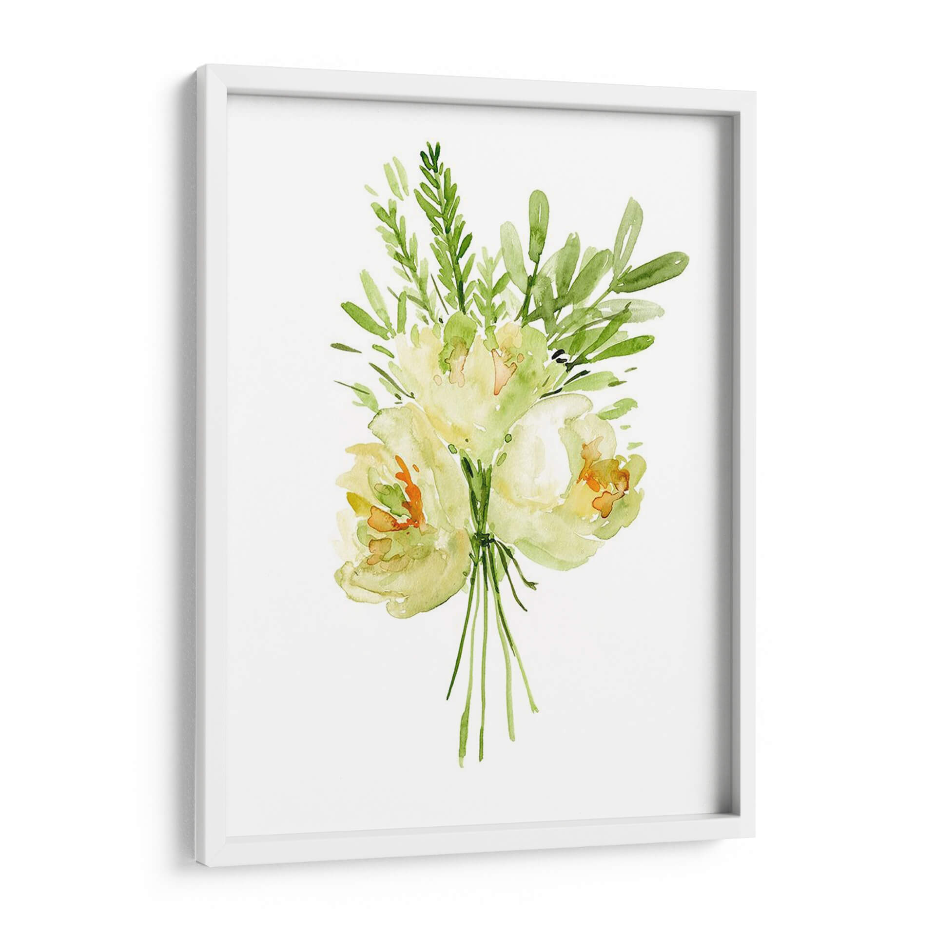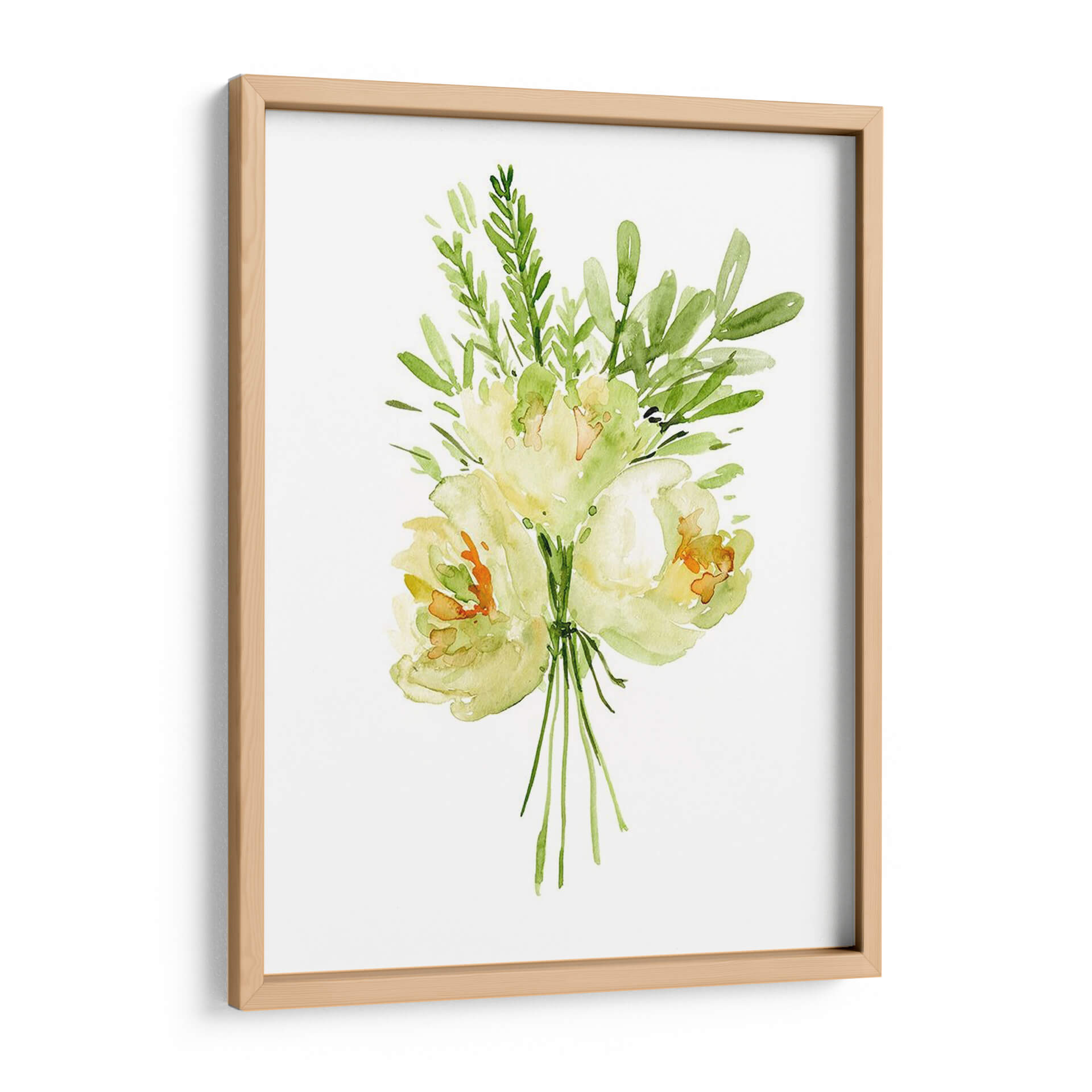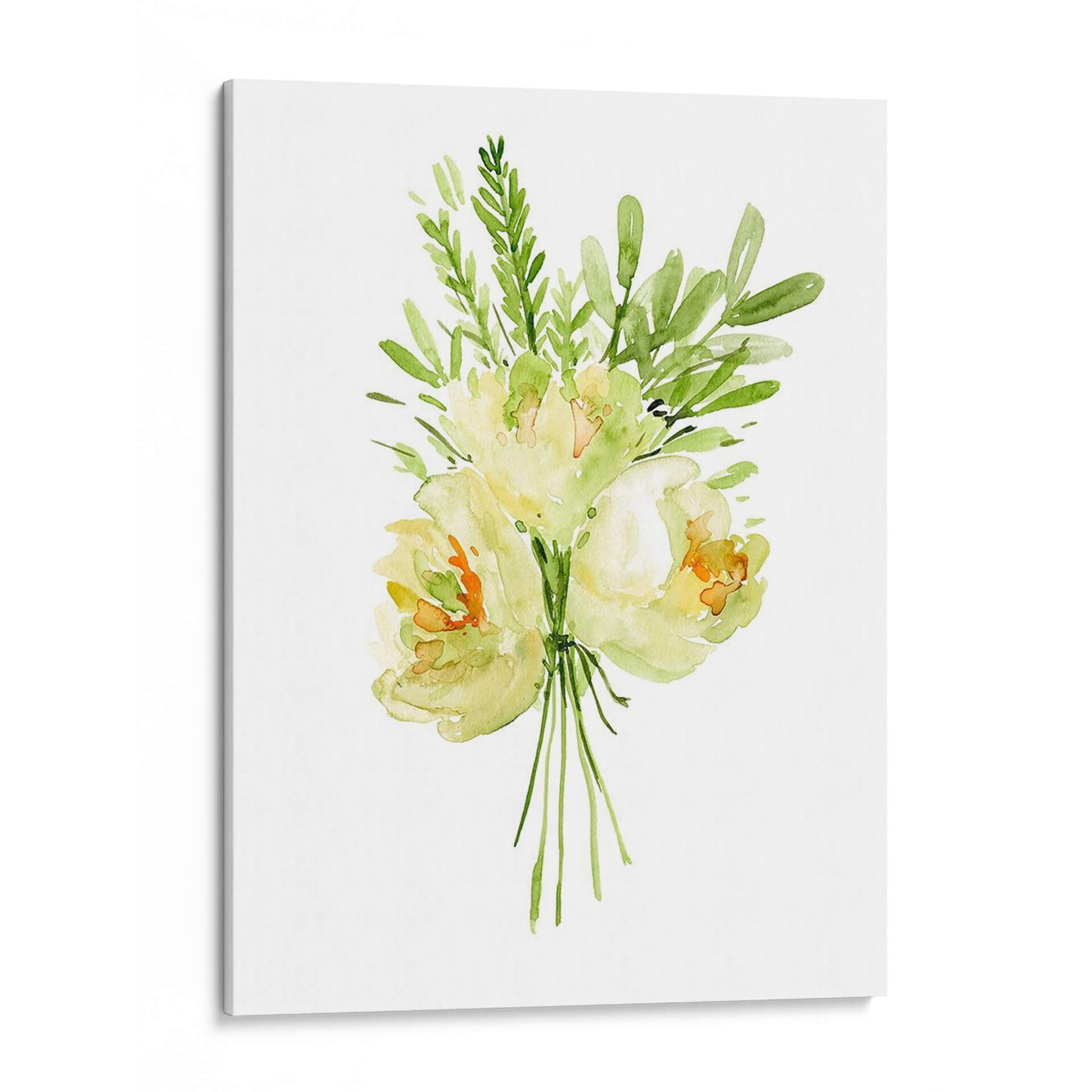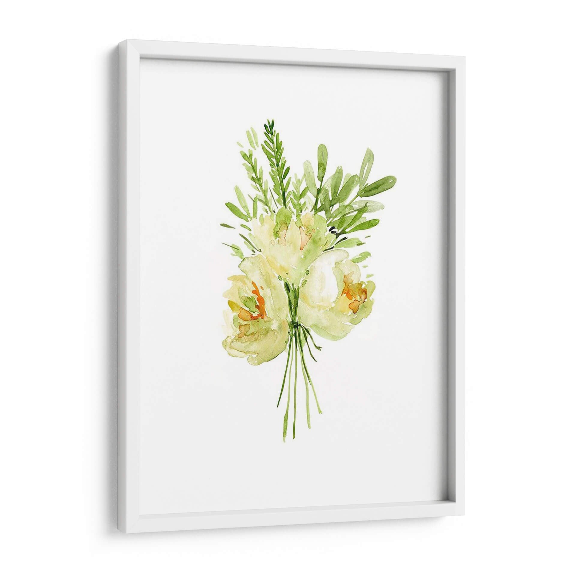 Embellece tu hogar con el delicado encanto de "Ramo Con Peonía II", una obra de arte en acuarela que captura la esencia etérea de las flores. La artista Melissa Wang nos presenta un ramo de peonías y follaje verde, ejecutado con una técnica suelta y fluida que evoca la frescura y la belleza efímera de la naturaleza. La paleta de colores, dominada por suaves tonos amarillos, verdes y toques de naranja, crea una atmósfera de serenidad y tranquilidad, perfecta para añadir un toque de calma a cualquier espacio. La composición centralizada y minimalista de la obra permite que cada pincelada respire, invitando a la contemplación. Este cuadro decorativo es ideal para salones, dormitorios o incluso oficinas, aportando una nota de elegancia natural y sofisticación sutil. Imagina la luz filtrándose a través de los pétalos translúcidos, la delicadeza de cada hoja, y cómo esta pieza puede transformar tu entorno en un oasis de paz y belleza. "Ramo Con Peonía II" no es solo una imagen, es una invitación a conectar con la serenidad del mundo floral, una pieza de arte contemporáneo que aportará vida y color a tus paredes.