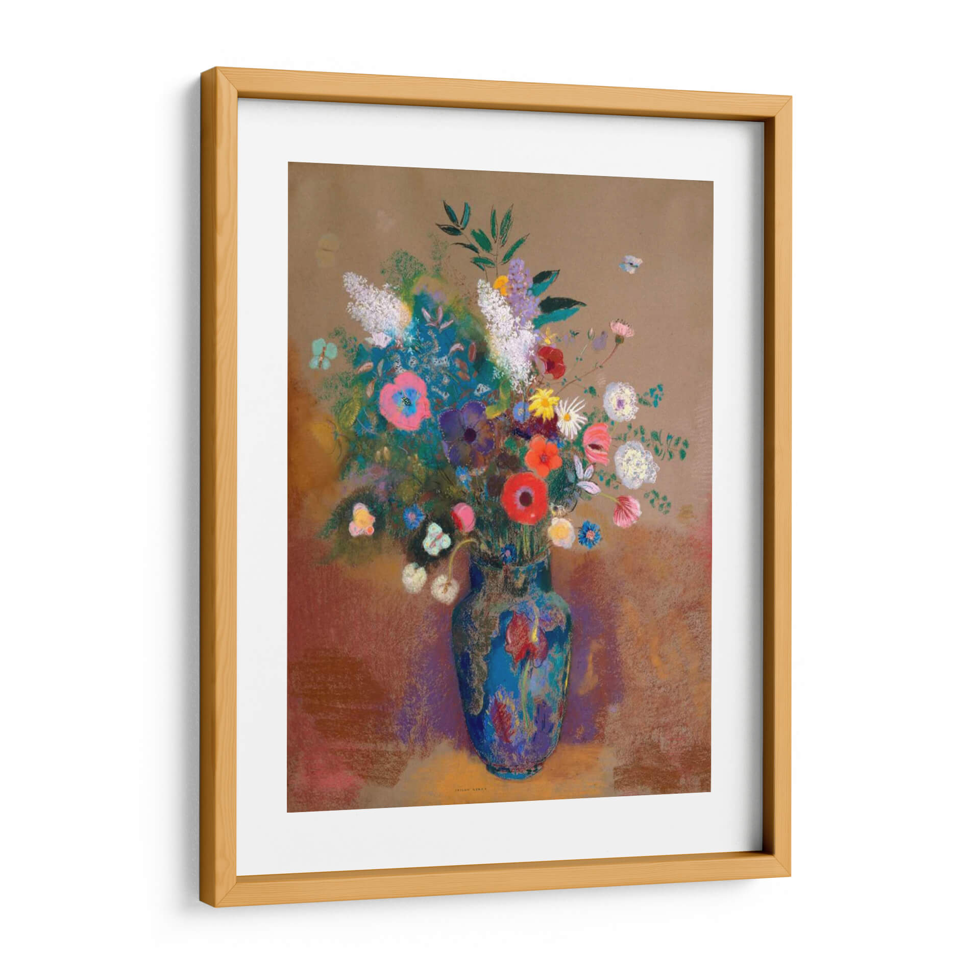 Transforma tu espacio con la vibrante y etérea obra "Ramo de Flores" del aclamado artista Odilon Redon. Este exquisito cuadro decorativo captura la esencia de un vibrante arreglo floral, presentado en un jarrón azul profundo que actúa como ancla visual. La paleta de colores es un festín para los sentidos, con explosiones de rosa intenso, rojo amapola, azul eléctrico y toques de amarillo y blanco que bailan sobre un fondo de tonalidades tierra cálidas. Las pinceladas sueltas y la técnica evocan un estilo impresionista con un toque onírico, invitando a la contemplación y añadiendo una atmósfera de alegría y vitalidad a cualquier habitación. Las delicadas mariposas que revolotean alrededor del ramo añaden un toque de fantasía y ligereza, creando una escena casi mágica. "Ramo de Flores" es ideal para quienes buscan infundir energía y color en su hogar u oficina, sirviendo como un punto focal cautivador en salas de estar, comedores o estudios. Esta pieza no solo embellece, sino que también inspira y eleva el espíritu, convirtiendo cualquier pared en una ventana a un jardín de ensueño. Descubre la belleza atemporal del arte floral con este impresionante cuadro decorativo, una adición perfecta para coleccionistas y amantes del arte que aprecian la maestría y la expresión emocional.